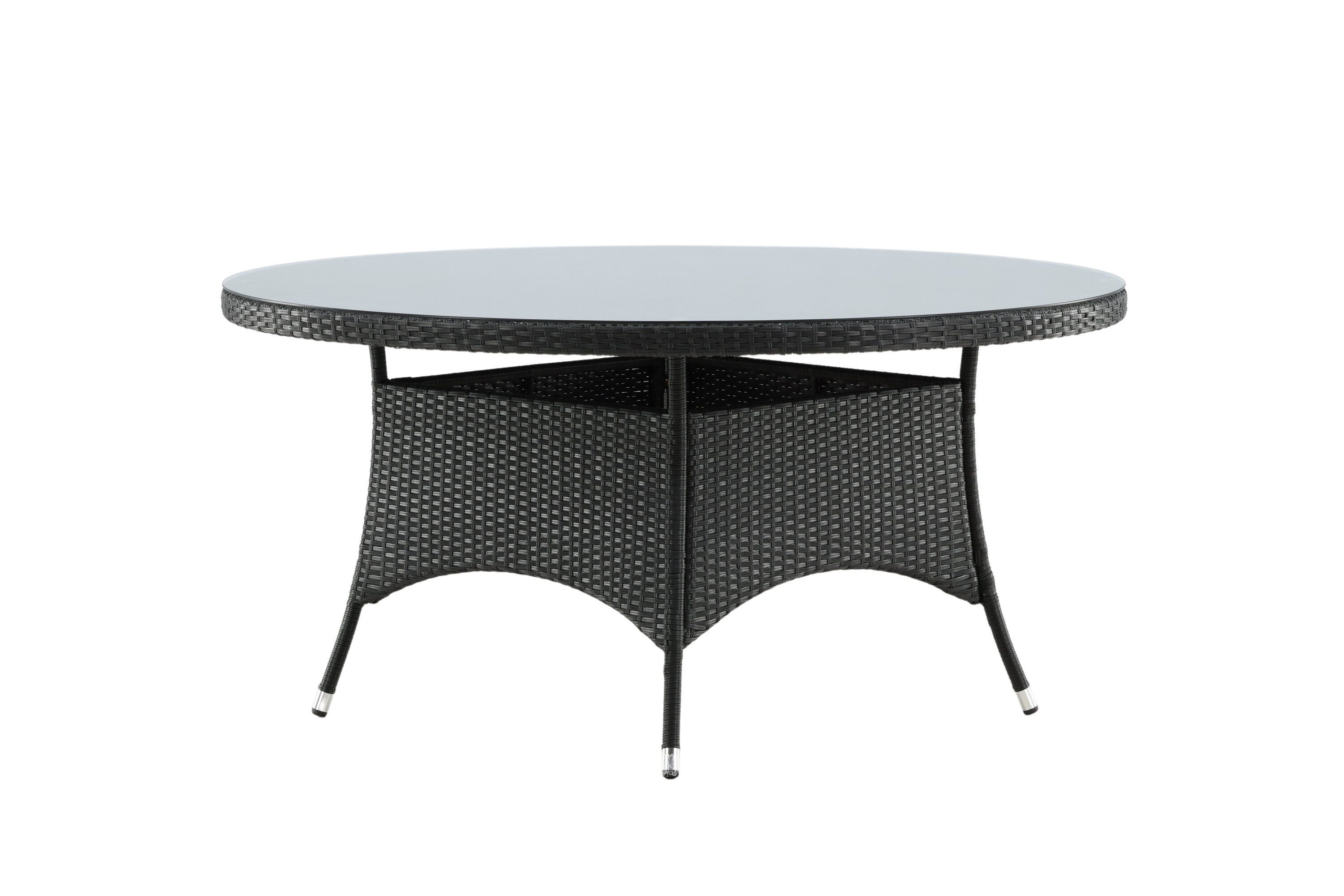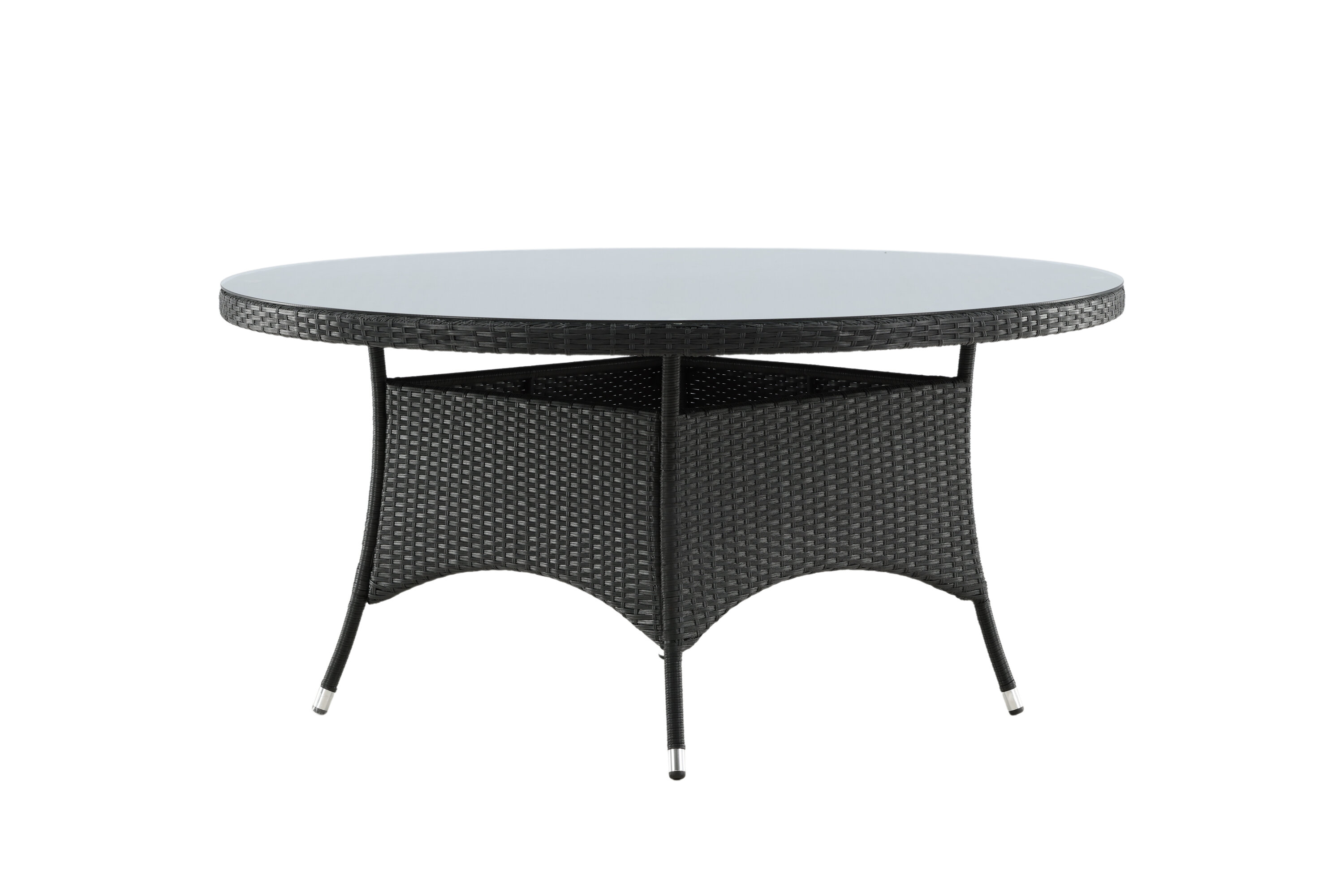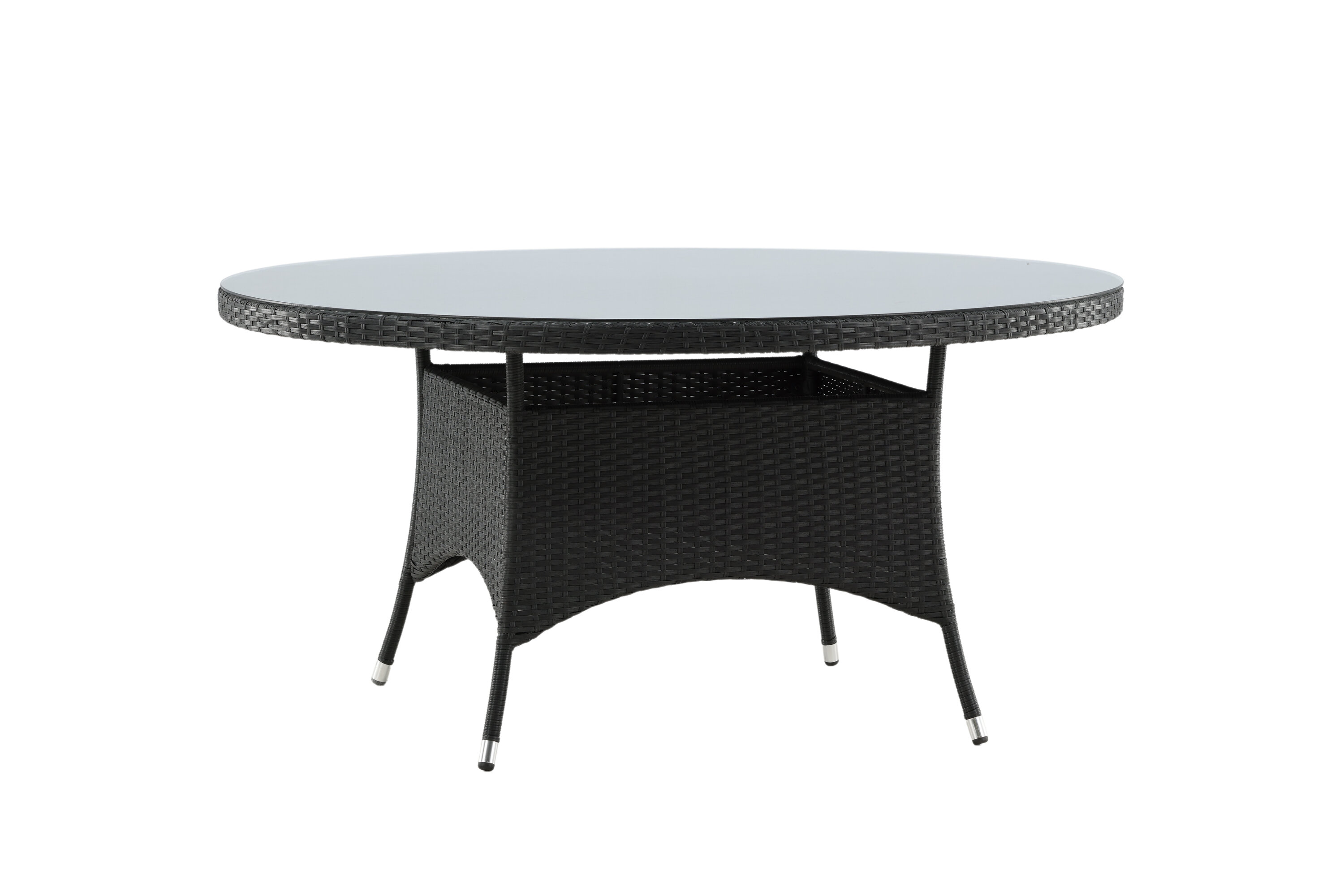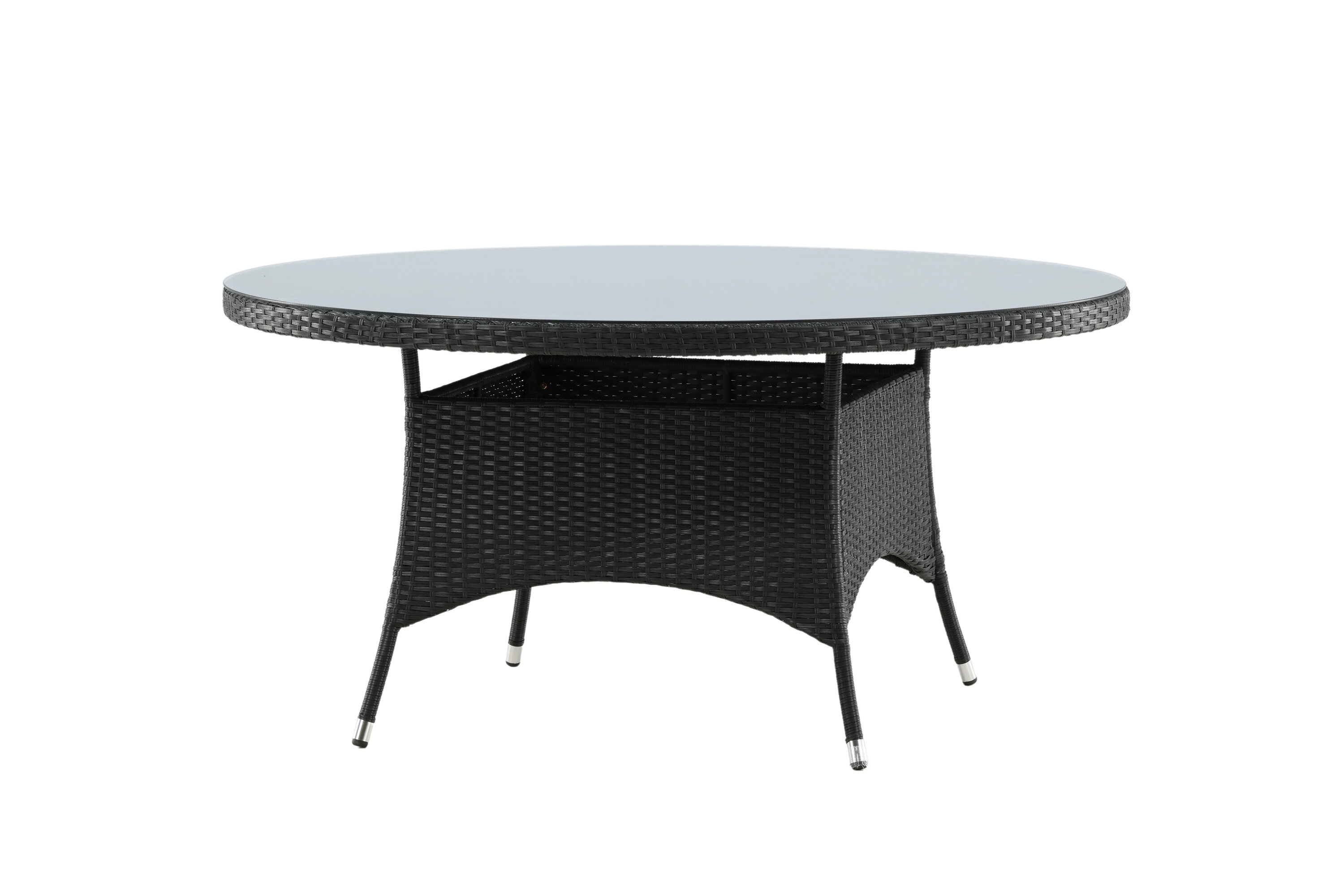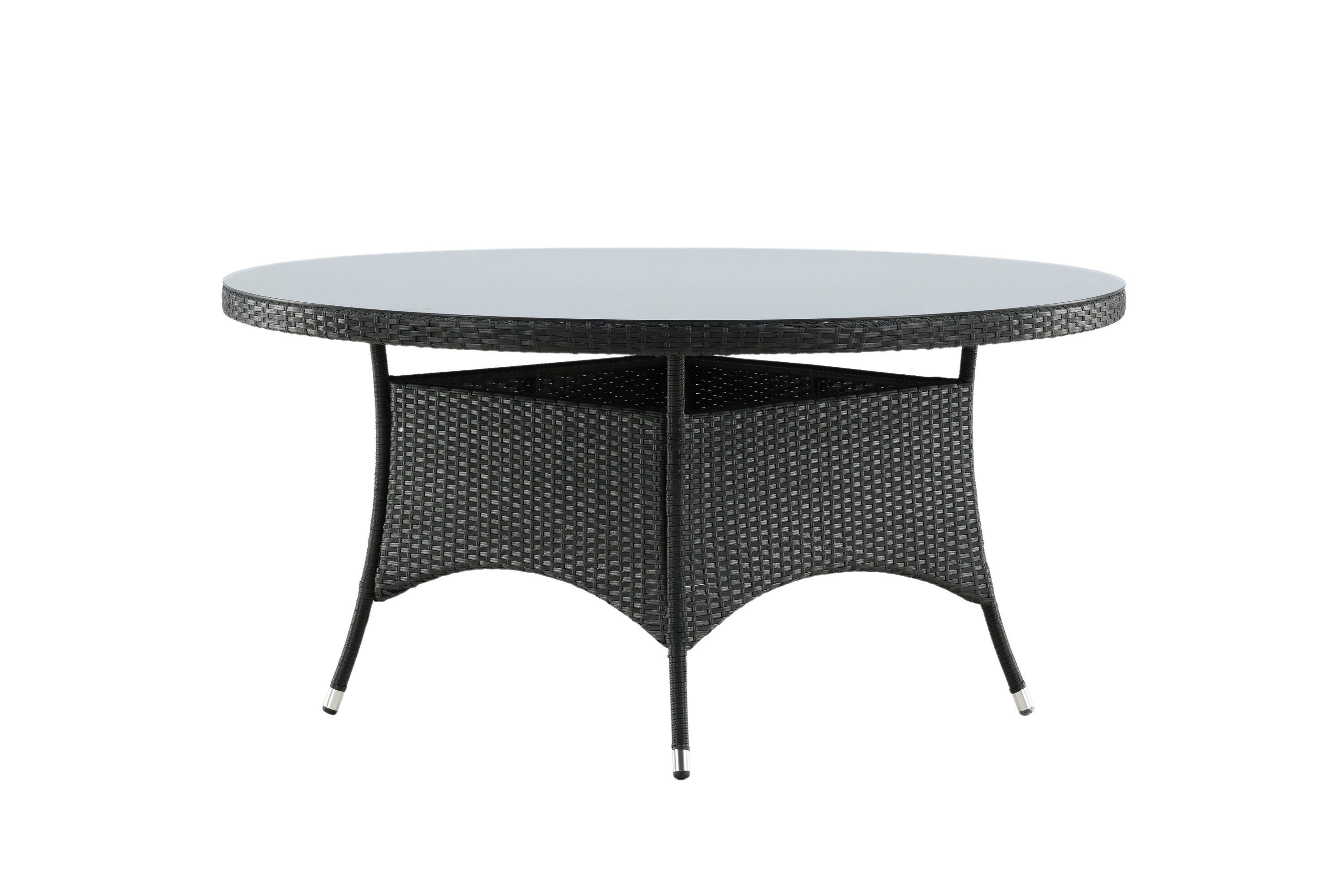 Volta ist ein runder Esstisch in robustem Design, der einen langlebigen und charmanten Eindruck hinterlässt! Die Tischplatte ist aus stilvollem Glas und das Fahrgestell aus strapazierfähigem, schwarzem Kunstrattan. Möblieren Sie im Außenbereich oder auf der Terrasse und lassen Sie das Abendessen im Freien zum Highlight des Tages werden - hier landet niemand am Rande!