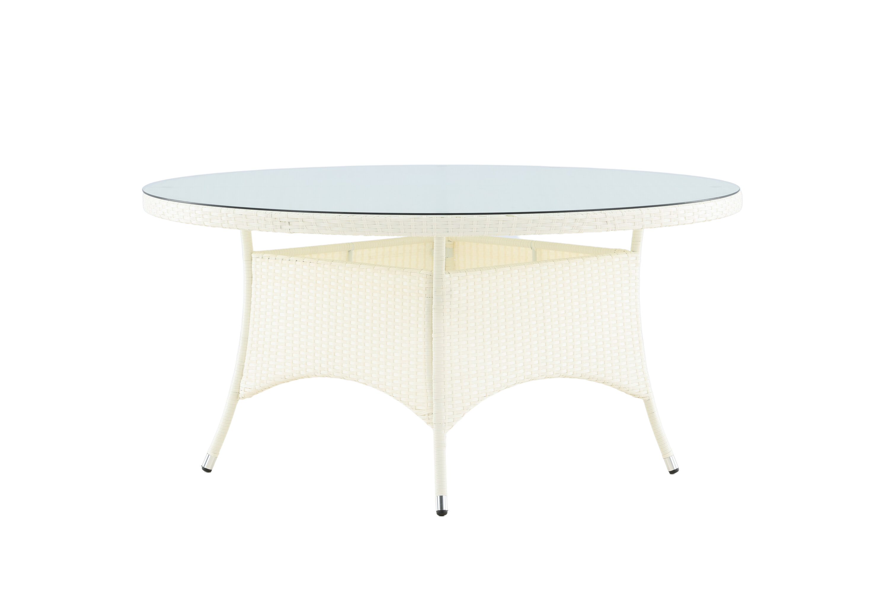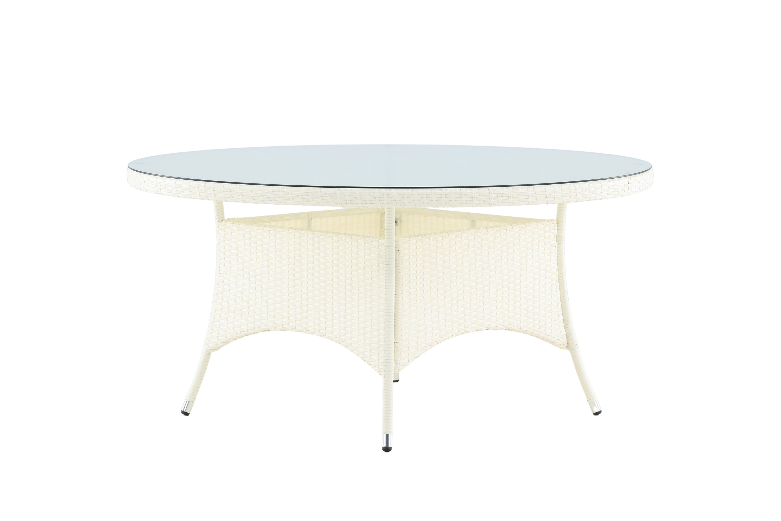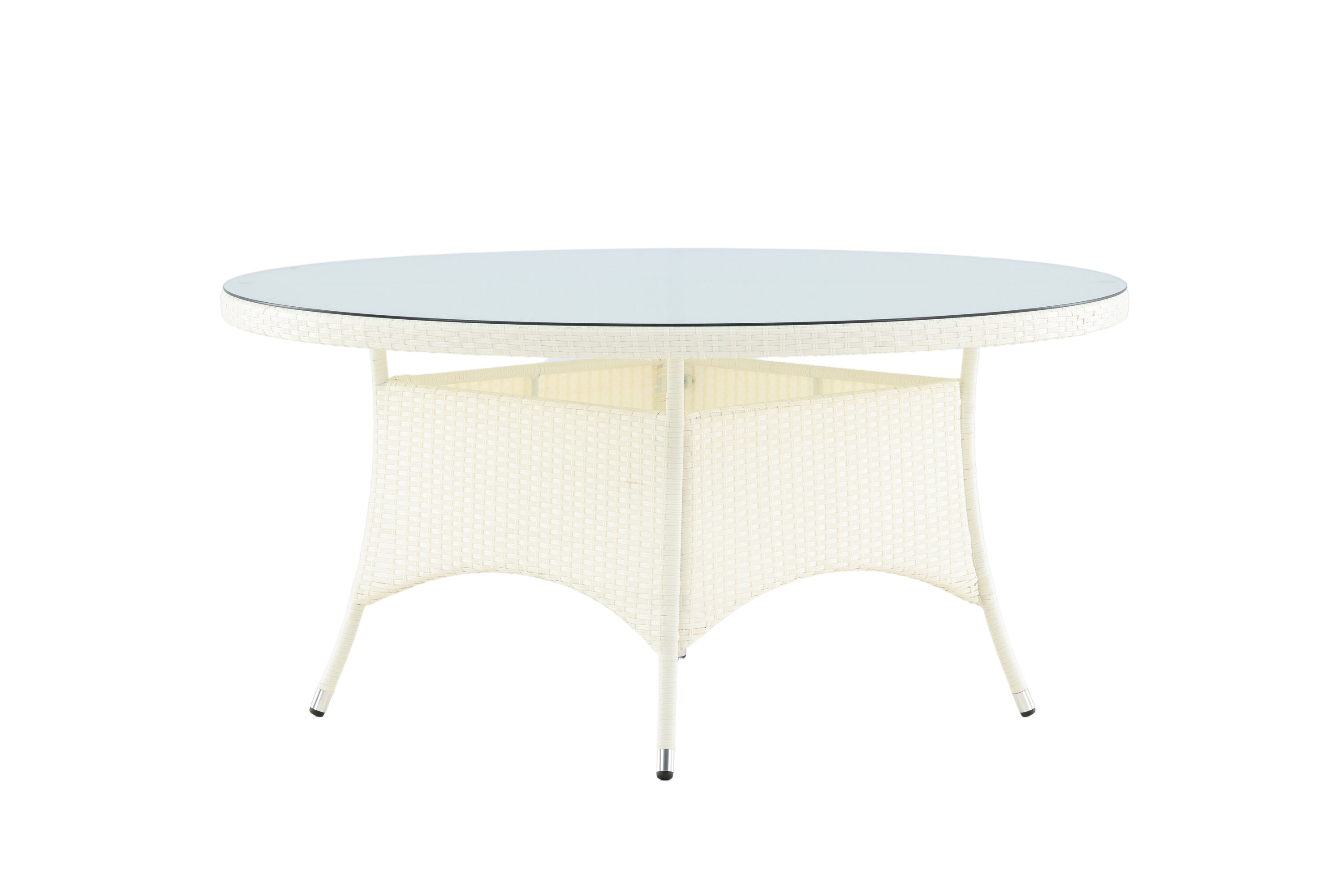 Volta ist ein runder Esstisch in robustem Design, der einen langlebigen und charmanten Eindruck hinterlässt! Die Tischplatte ist aus stilvollem Glas und das Fahrgestell aus strapazierfähigem, weißem Kunstrattan. Möblieren Sie im Außenbereich oder auf der Terrasse und lassen Sie das Abendessen im Freien zum Highlight des Tages werden - hier landet niemand am Rande!
