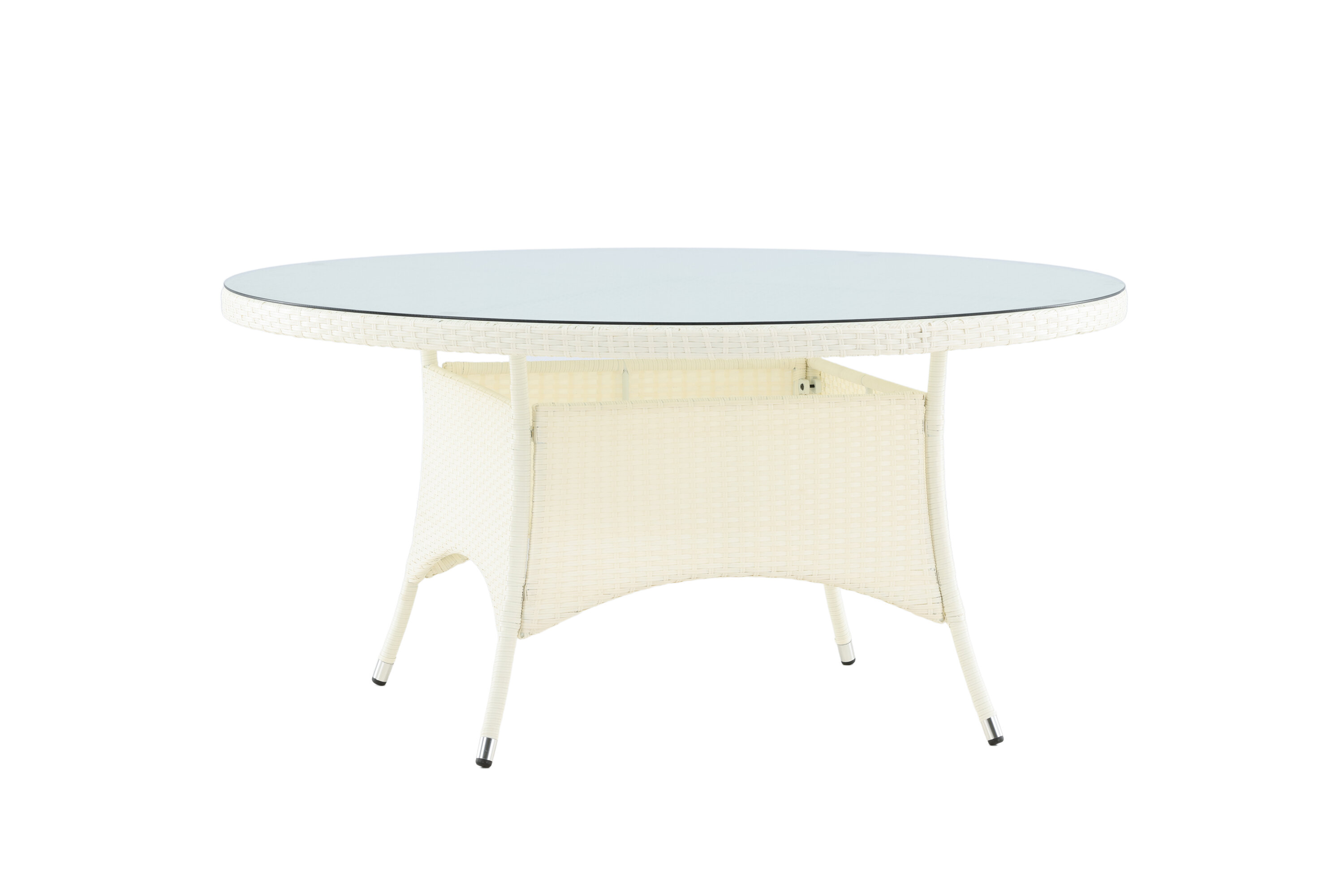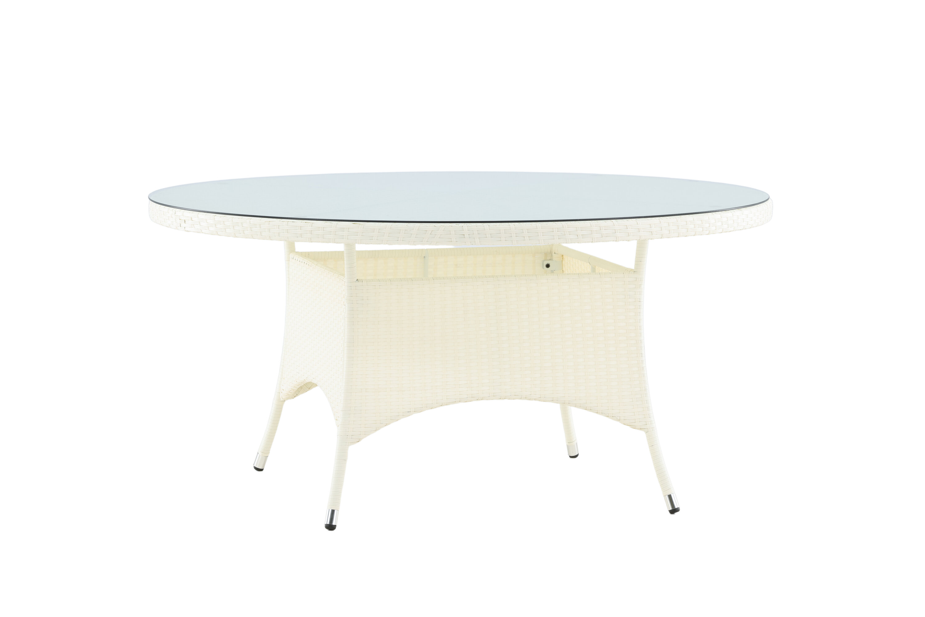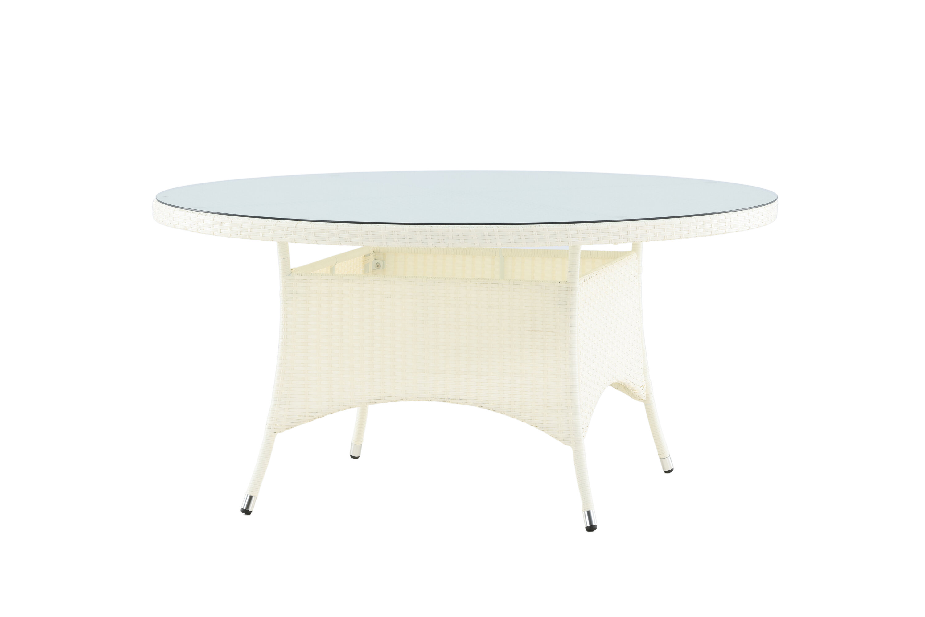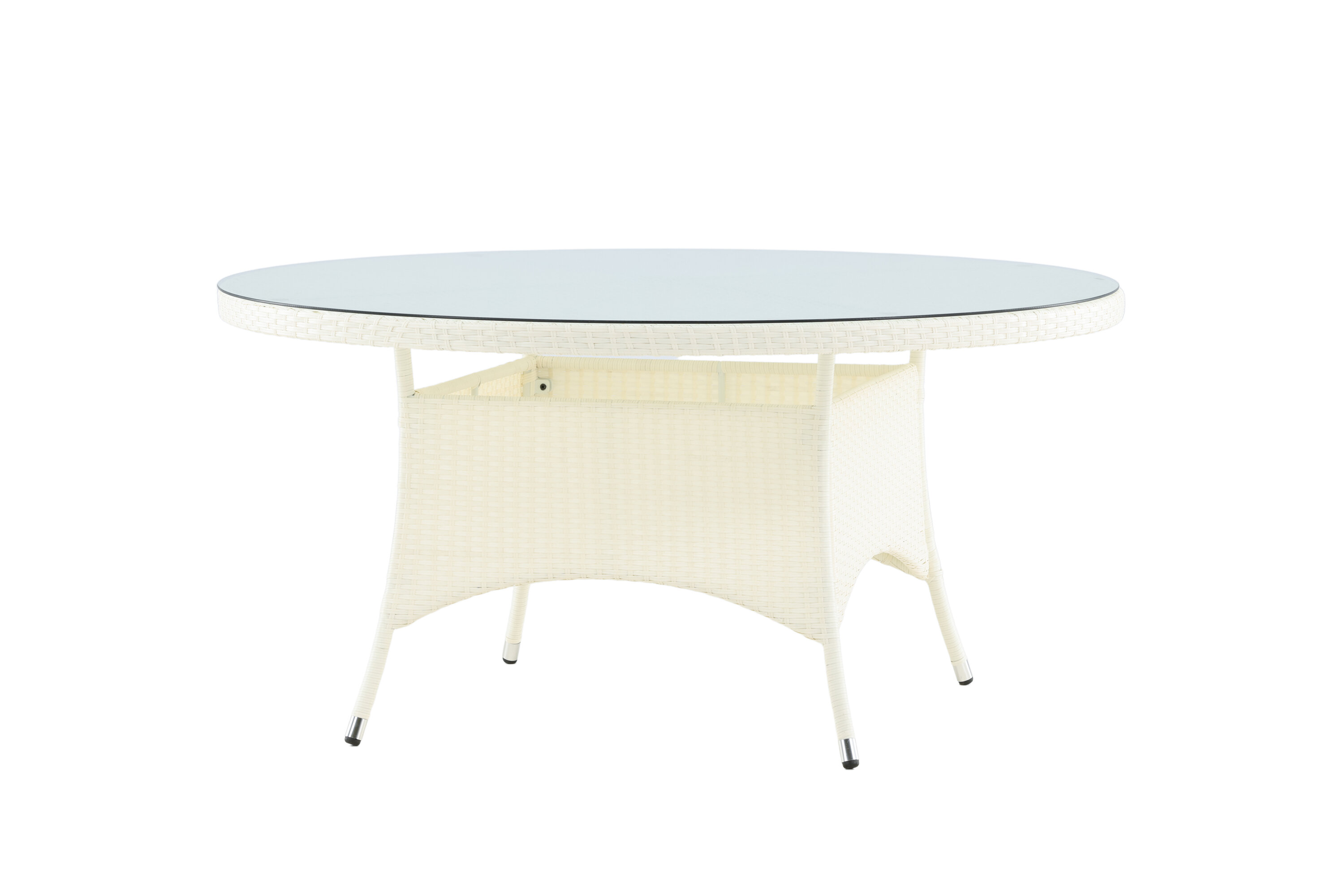 Volta ist ein runder Esstisch in robustem Design, der einen langlebigen und charmanten Eindruck hinterlässt! Die Tischplatte ist aus stilvollem Glas und das Fahrgestell aus strapazierfähigem, weißem Kunstrattan. Möblieren Sie im Außenbereich oder auf der Terrasse und lassen Sie das Abendessen im Freien zum Highlight des Tages werden - hier landet niemand am Rande!