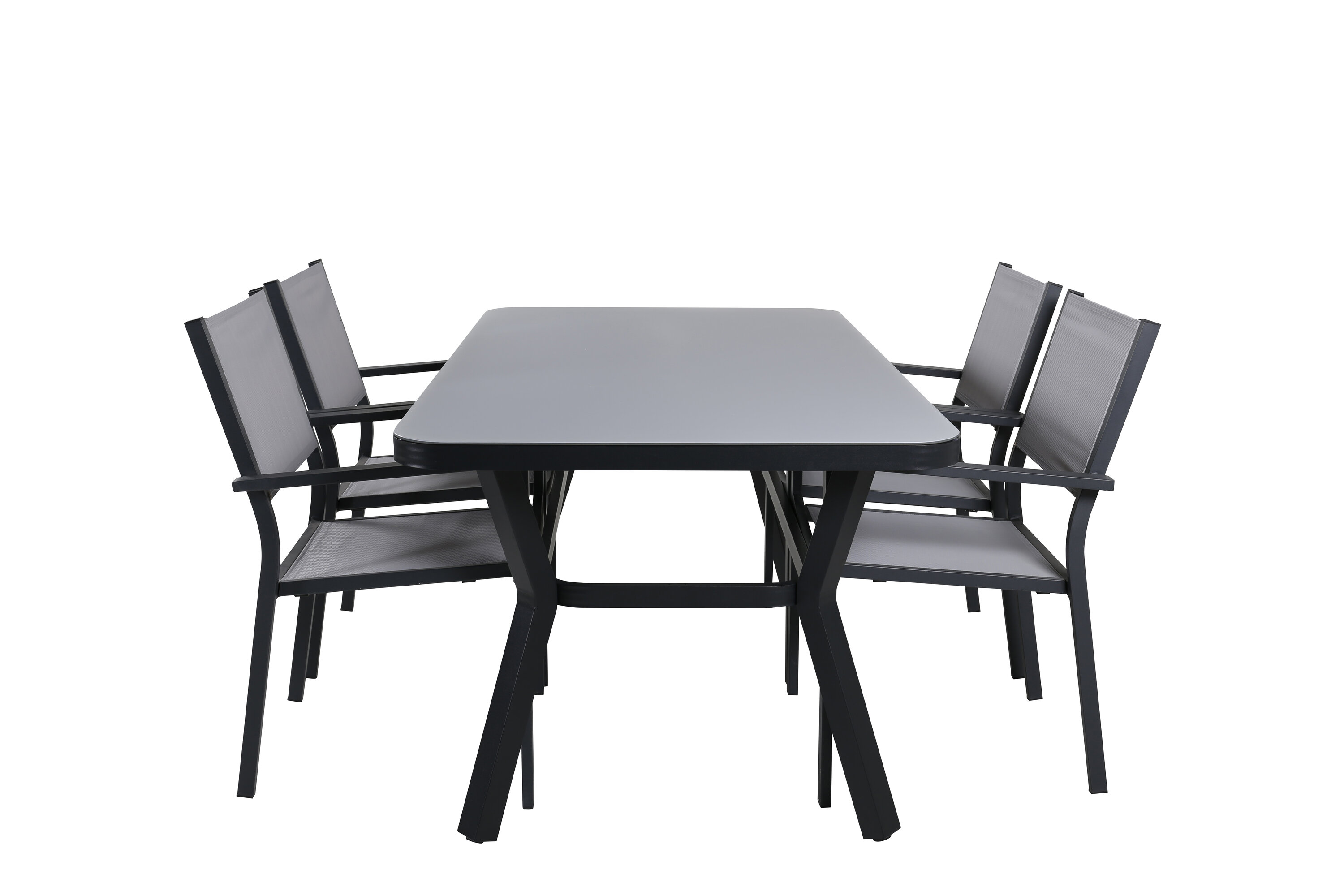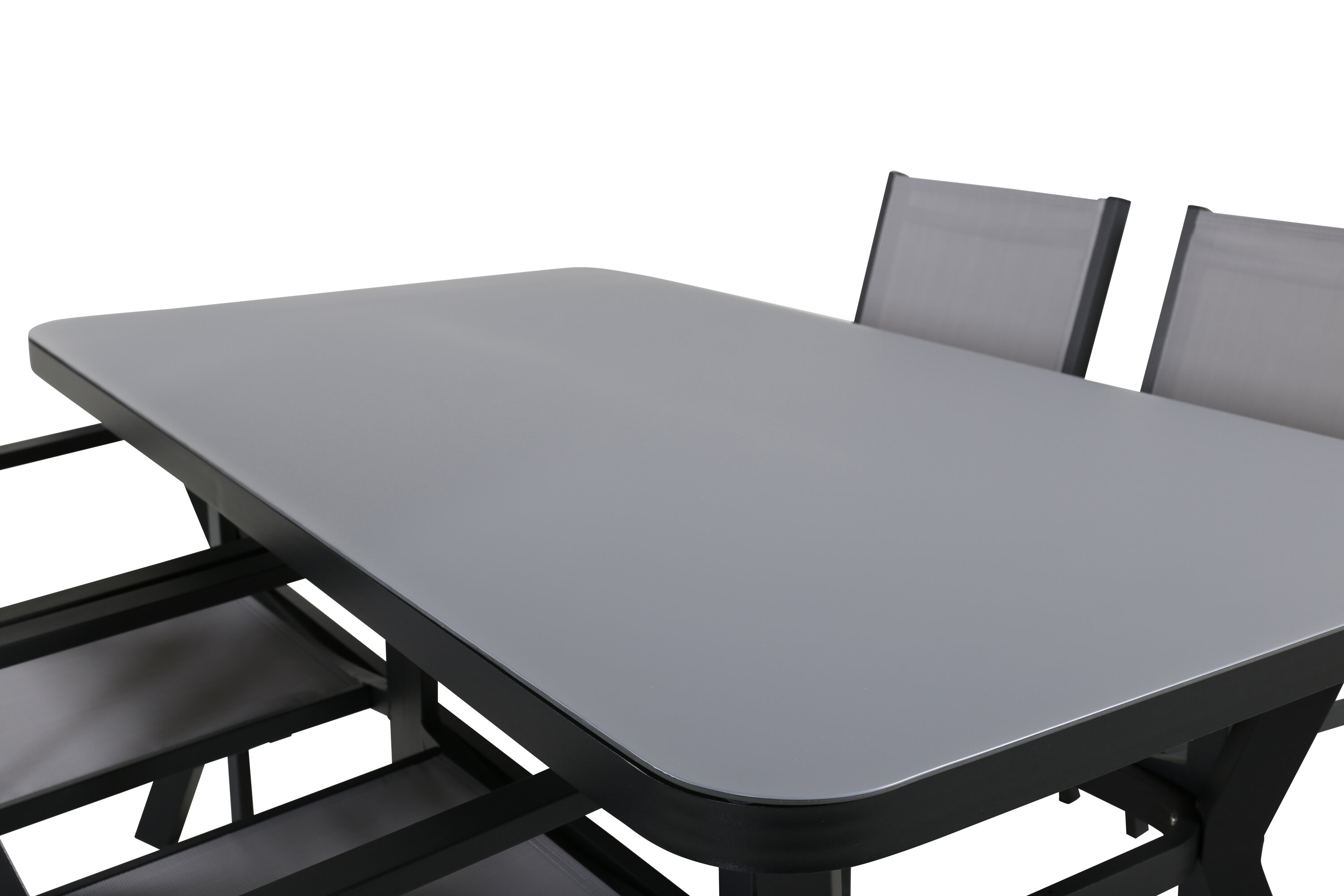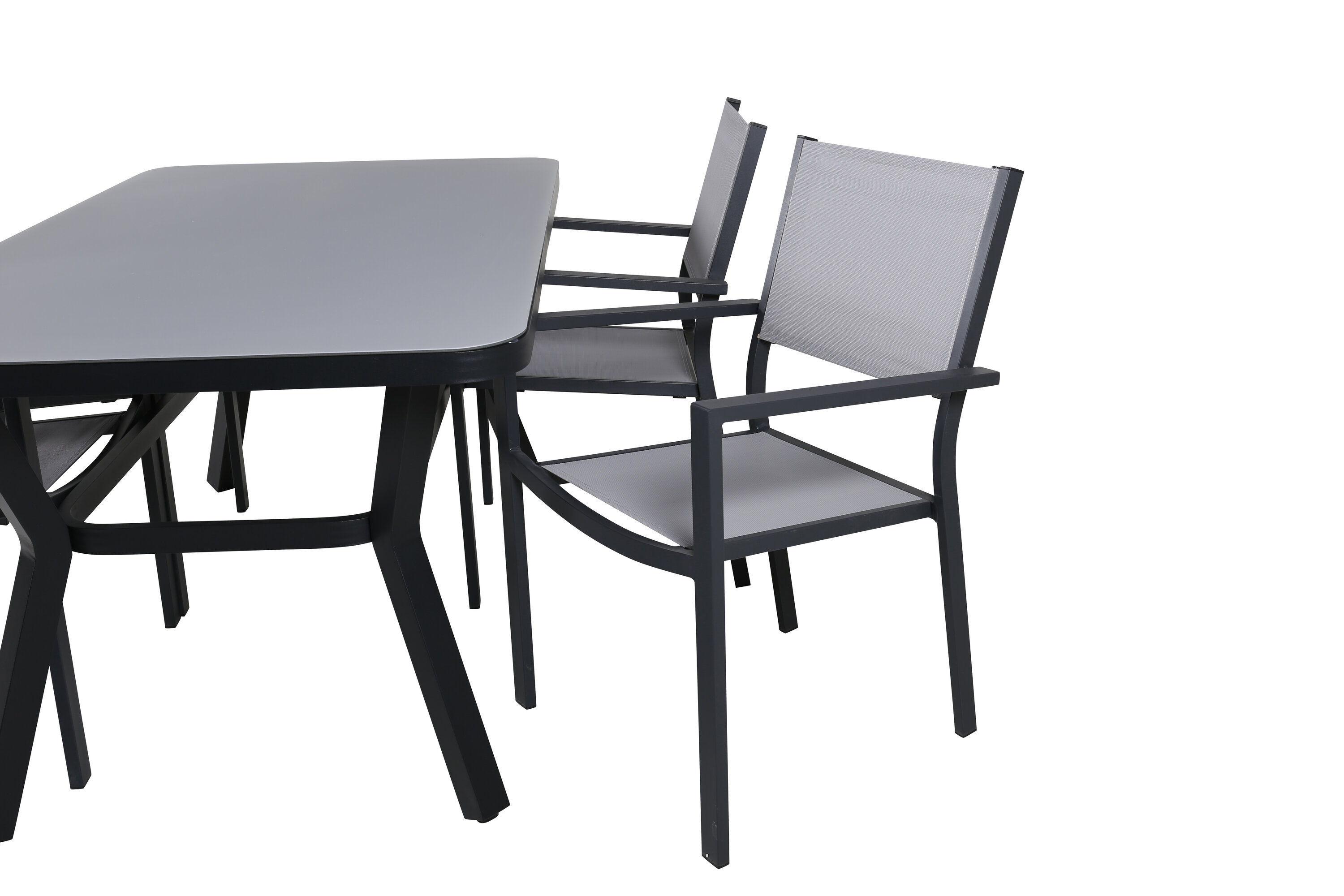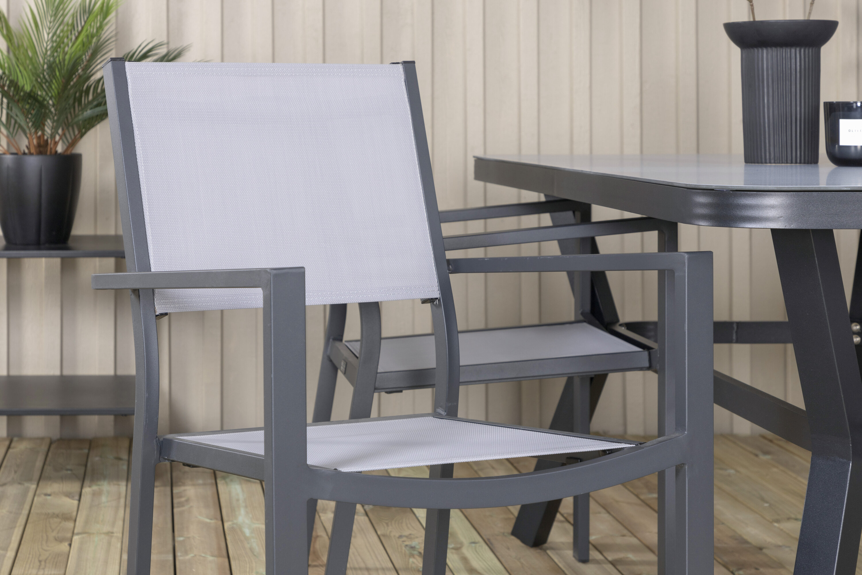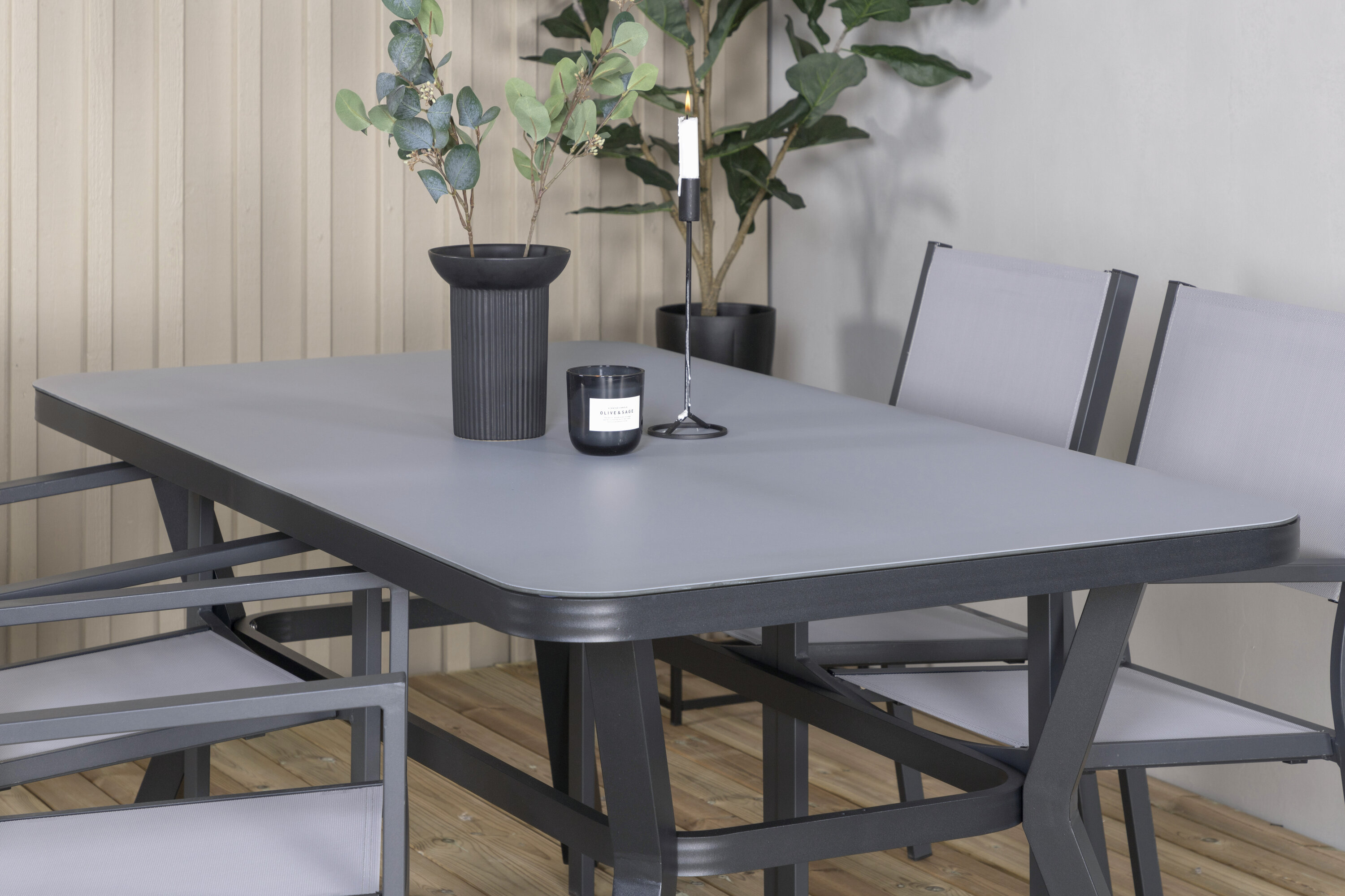Klassische Lebensmittelgruppe, die auf die meisten Terrassen passt! Der Esstisch Virya zusammen mit den Stühlen der Copacabana-Serie ist wie gemacht für diejenigen, die ein gemütliches und modernes Ambiente auf dem Balkon schaffen möchten.