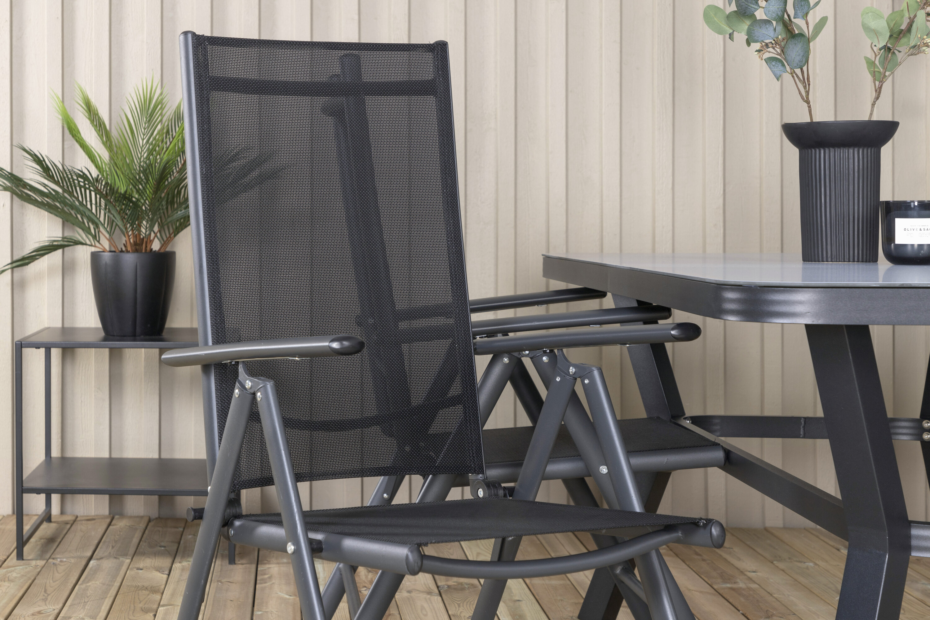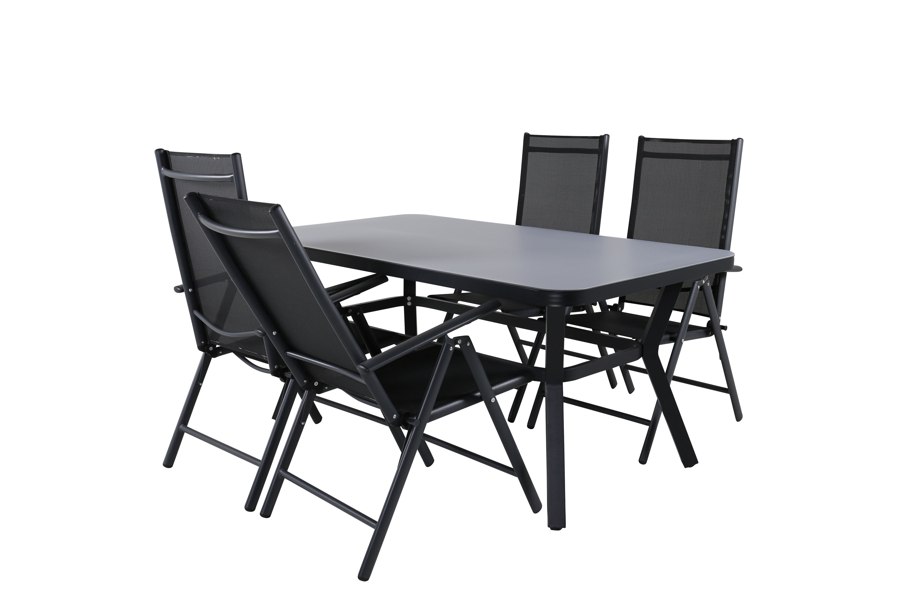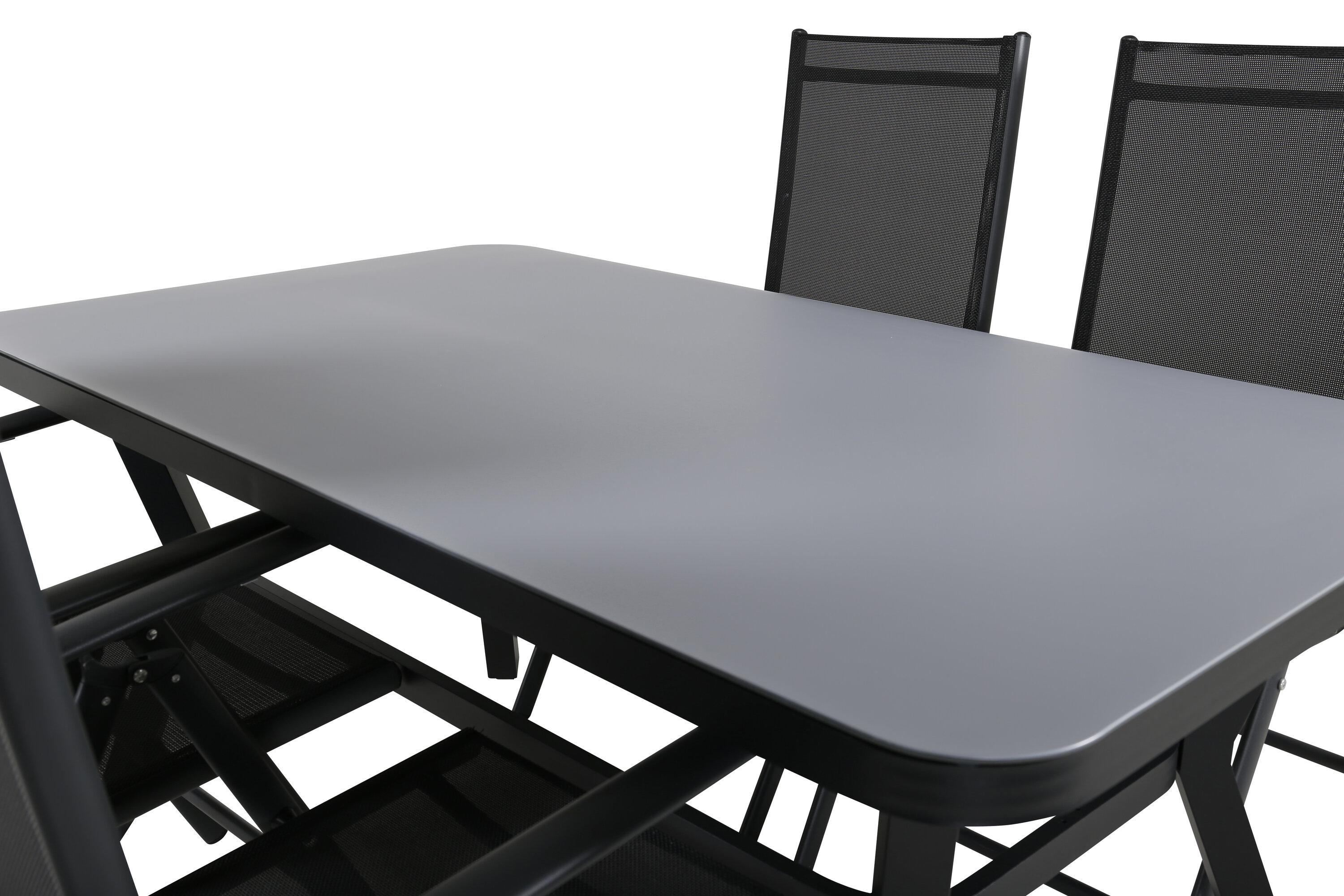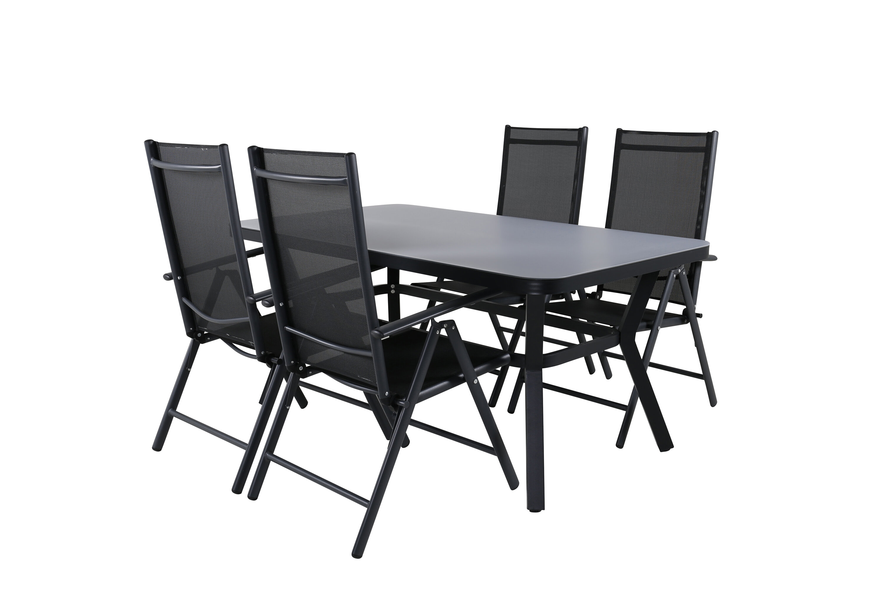 Eine Lebensmittelgruppe in modernem und stilvollem Design. Esstisch Virya und Esszimmerstühle Break sind die perfekte Kombination für das Gartenherz!