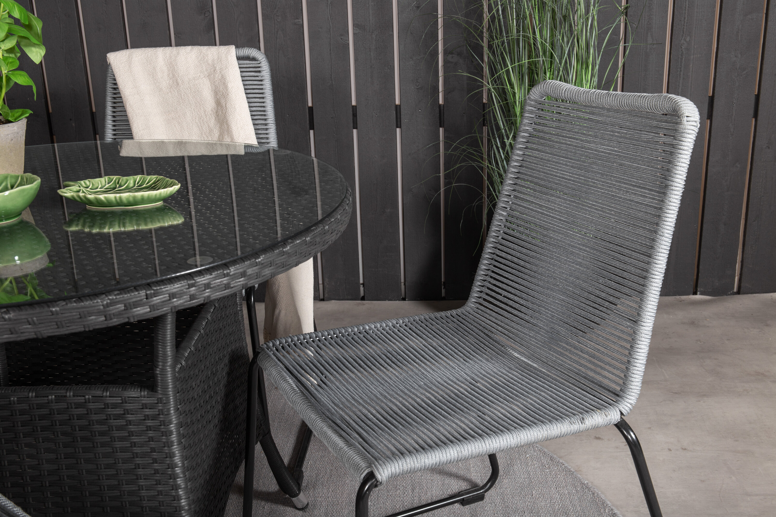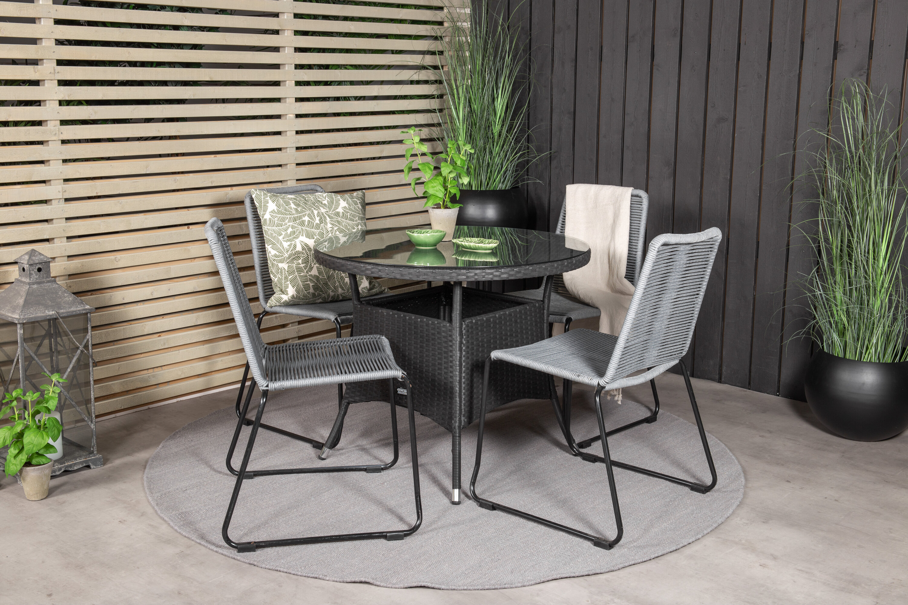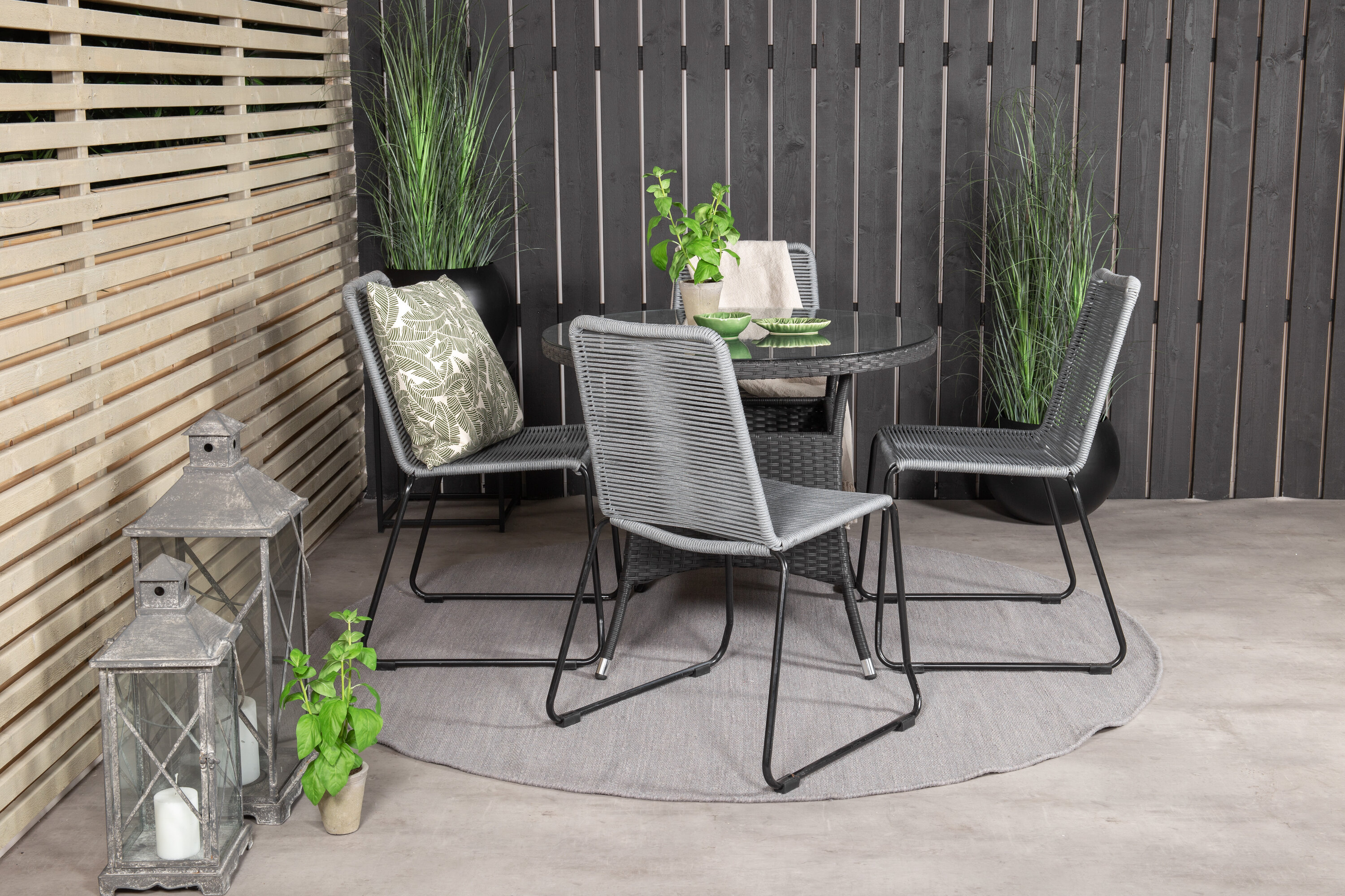 Kleine und hübsche Lebensmittelgruppe, die perfekt ins Balcogen passt. Esstisch Volta zusammen mit Esstischen Lindos. Die Stühle sind aus Seilen gefertigt, was Ihnen langlebige und sitzende Stühle bietet. Hier bleibst du gerne lange!