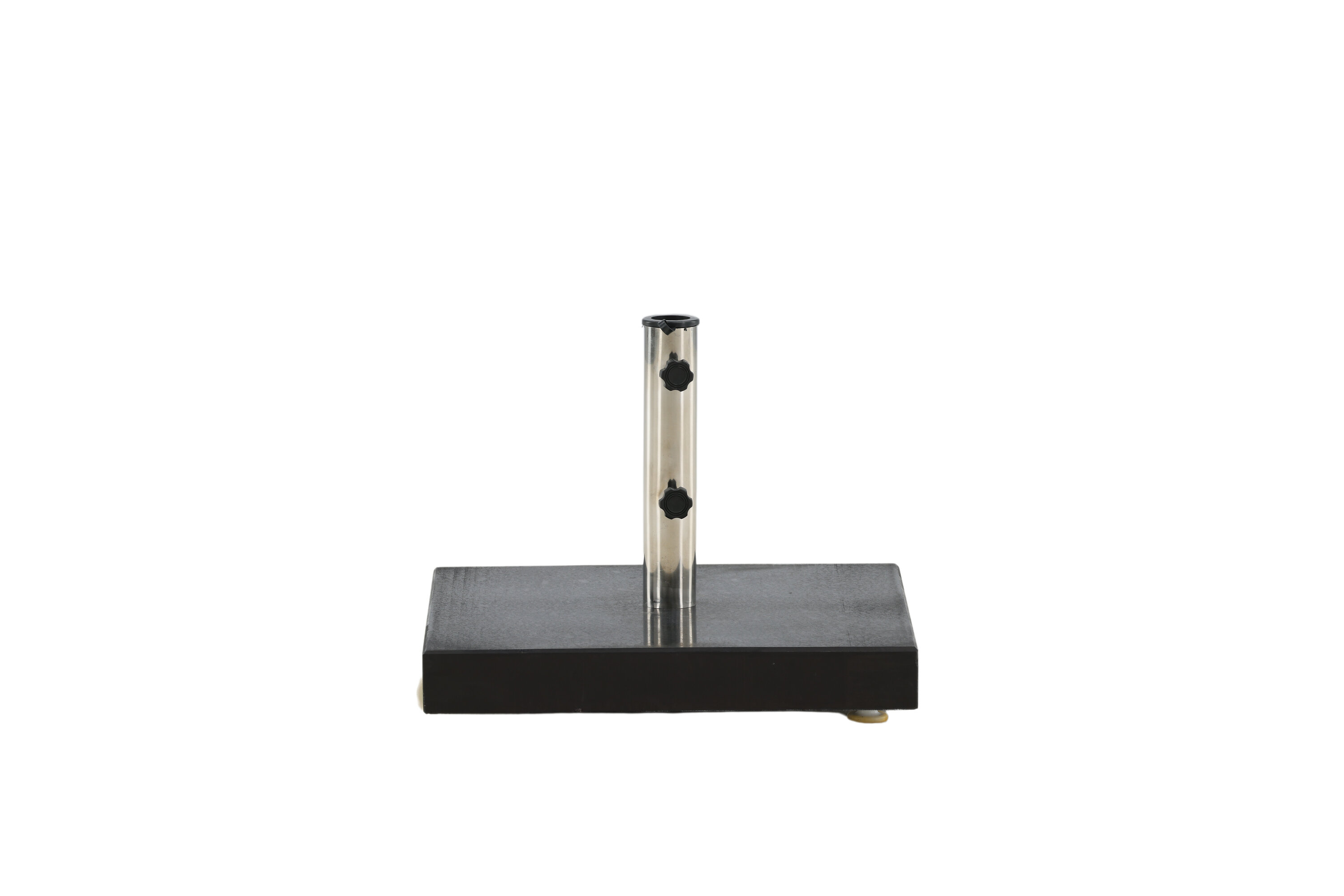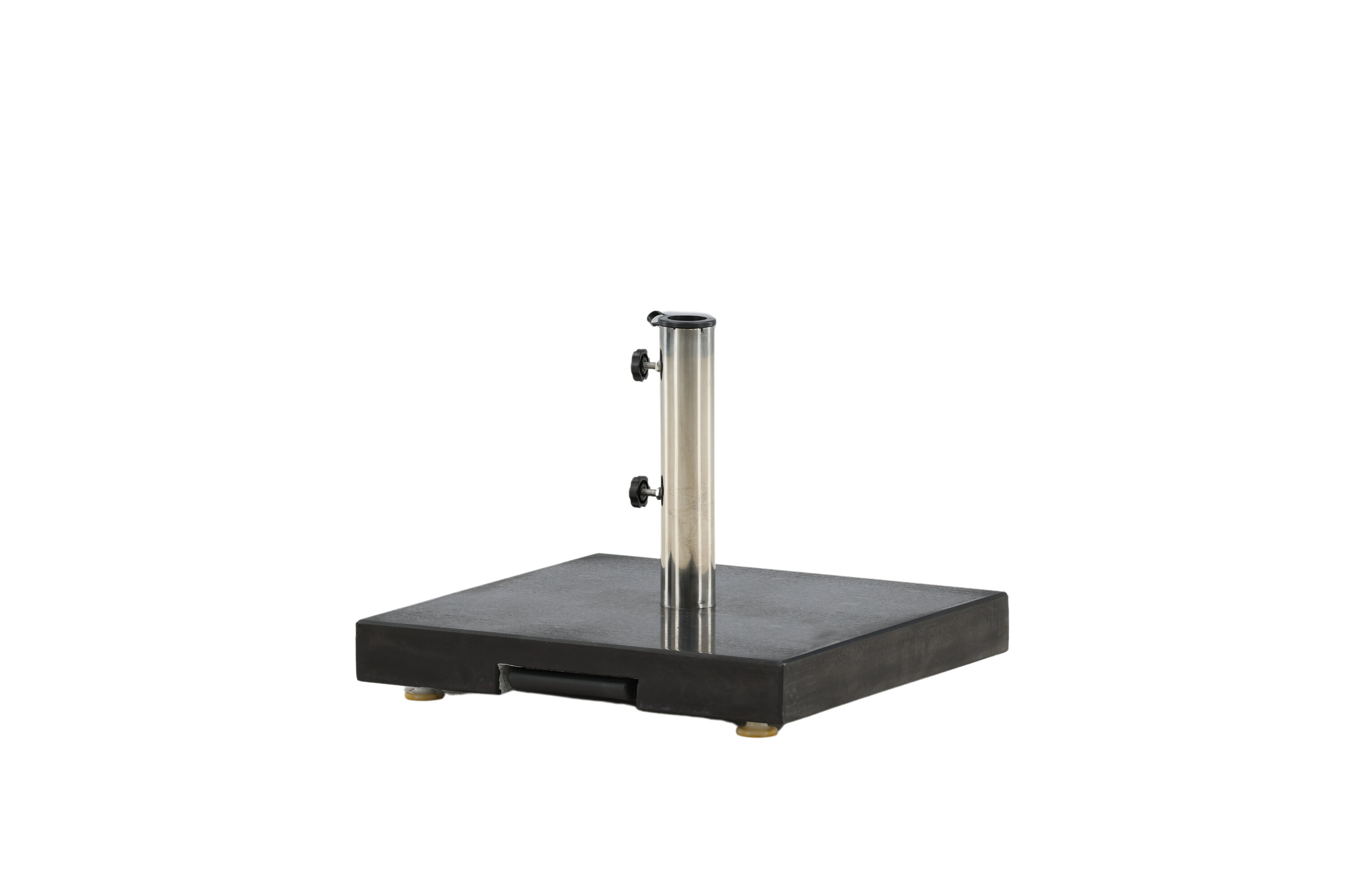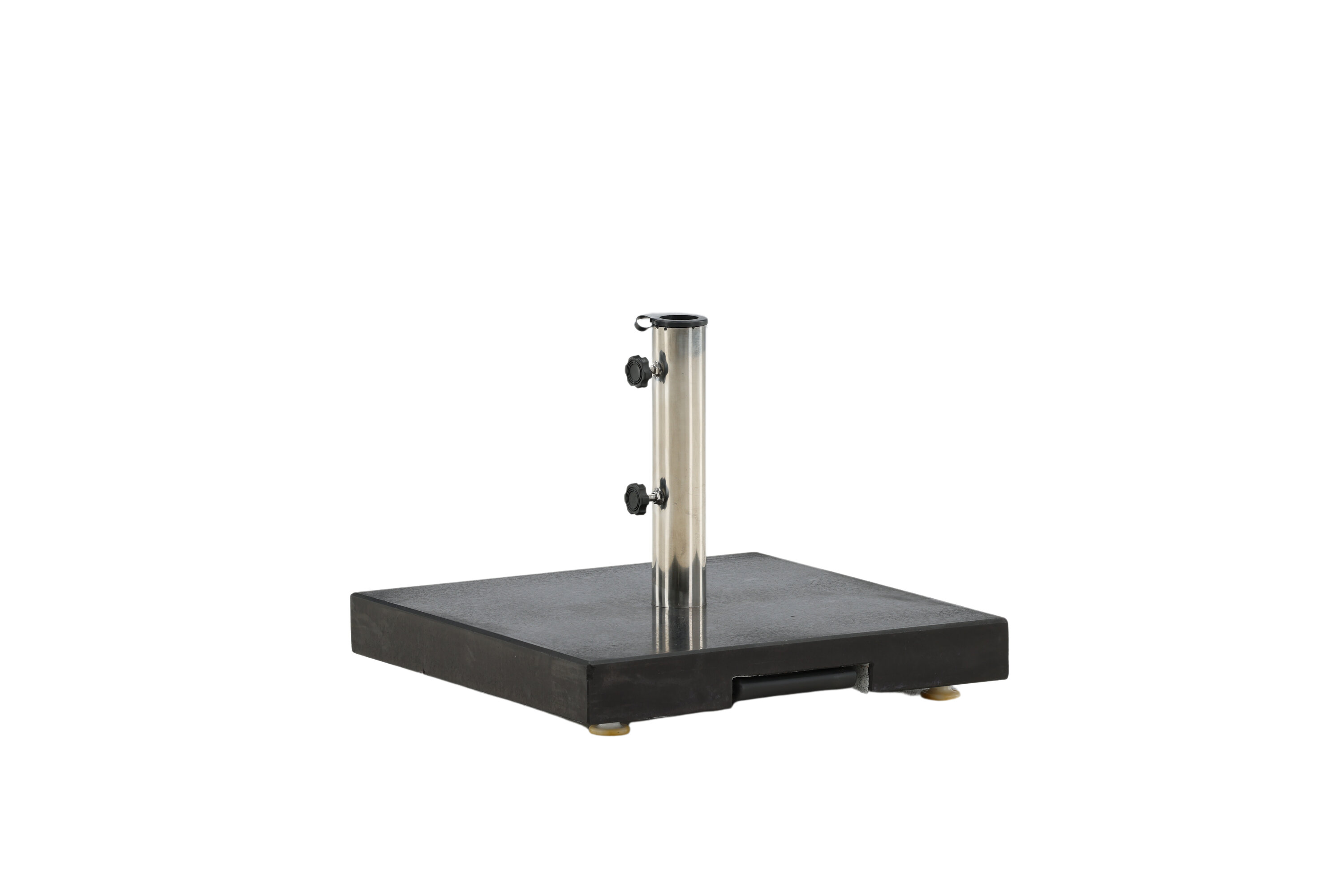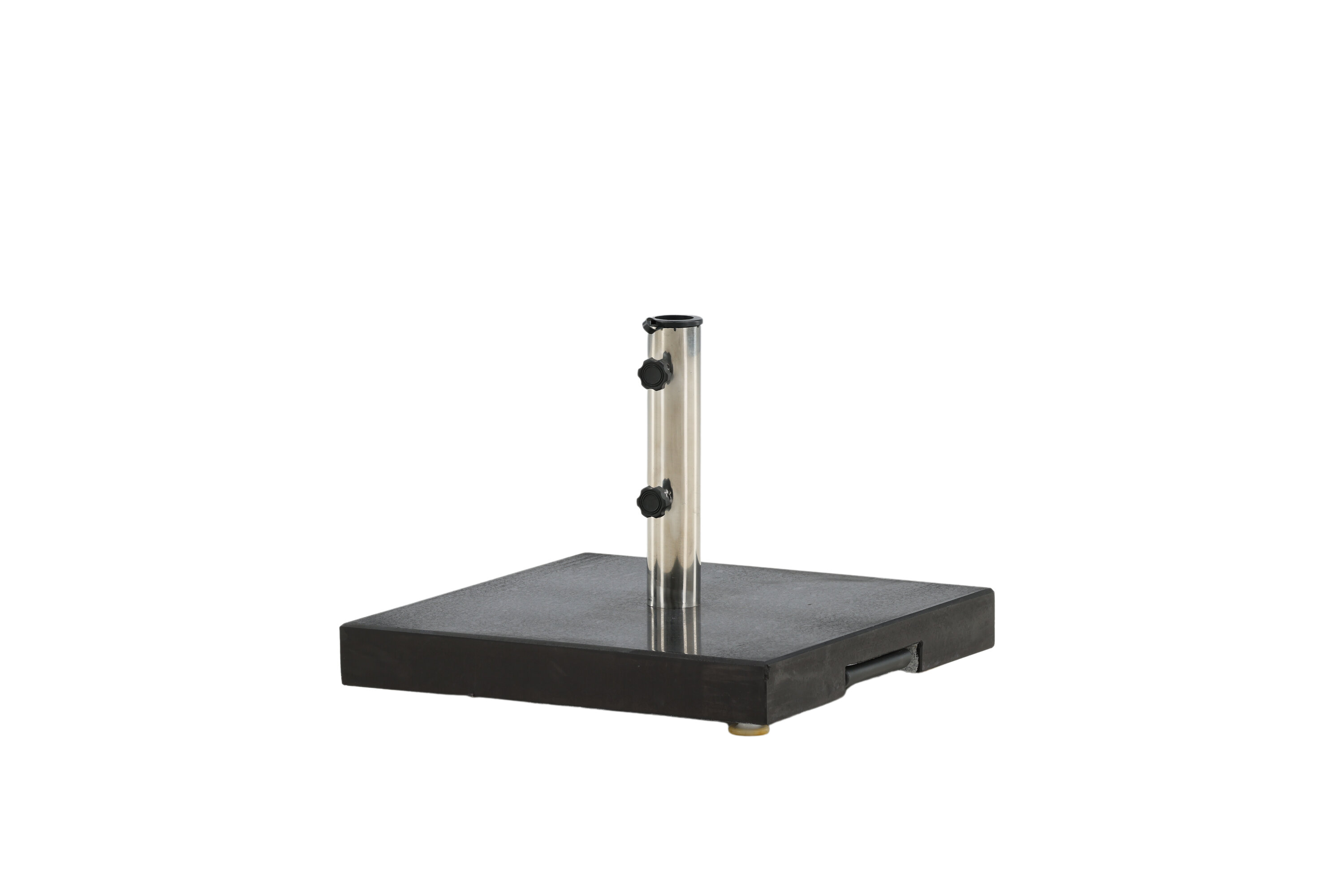 Schlichter und stilvoller Sonnenschirmstein in Schwarz. Robuste Konstruktion mit zwei Rädern und Griffen. Gewicht 40kg.