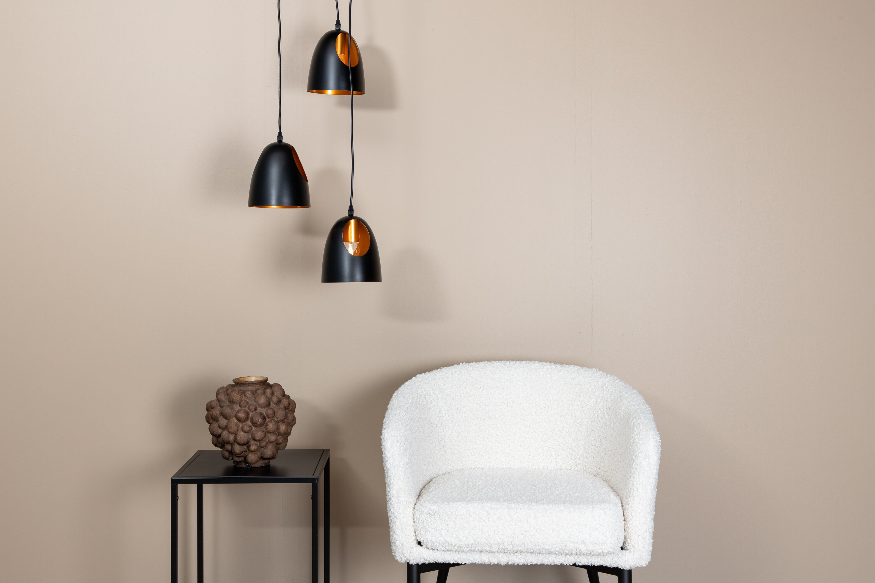 Mit der Elda Deckenleuchte erhalten Sie einen einzigartigen Blickfang, der beeindruckt! Mit drei Lichtquellen mit schalenförmigen Lampenschirmen und einem kupferfarbenen Inneren sorgt diese Lampe für ein warmes Gefühl im Raum. Platzieren Sie die Lampe über dem Esstisch, im Wohnzimmer oder als Fensterlampe und Sie erhalten nicht nur Beleuchtung, sondern auch ein robustes Innendetail beim Kauf.