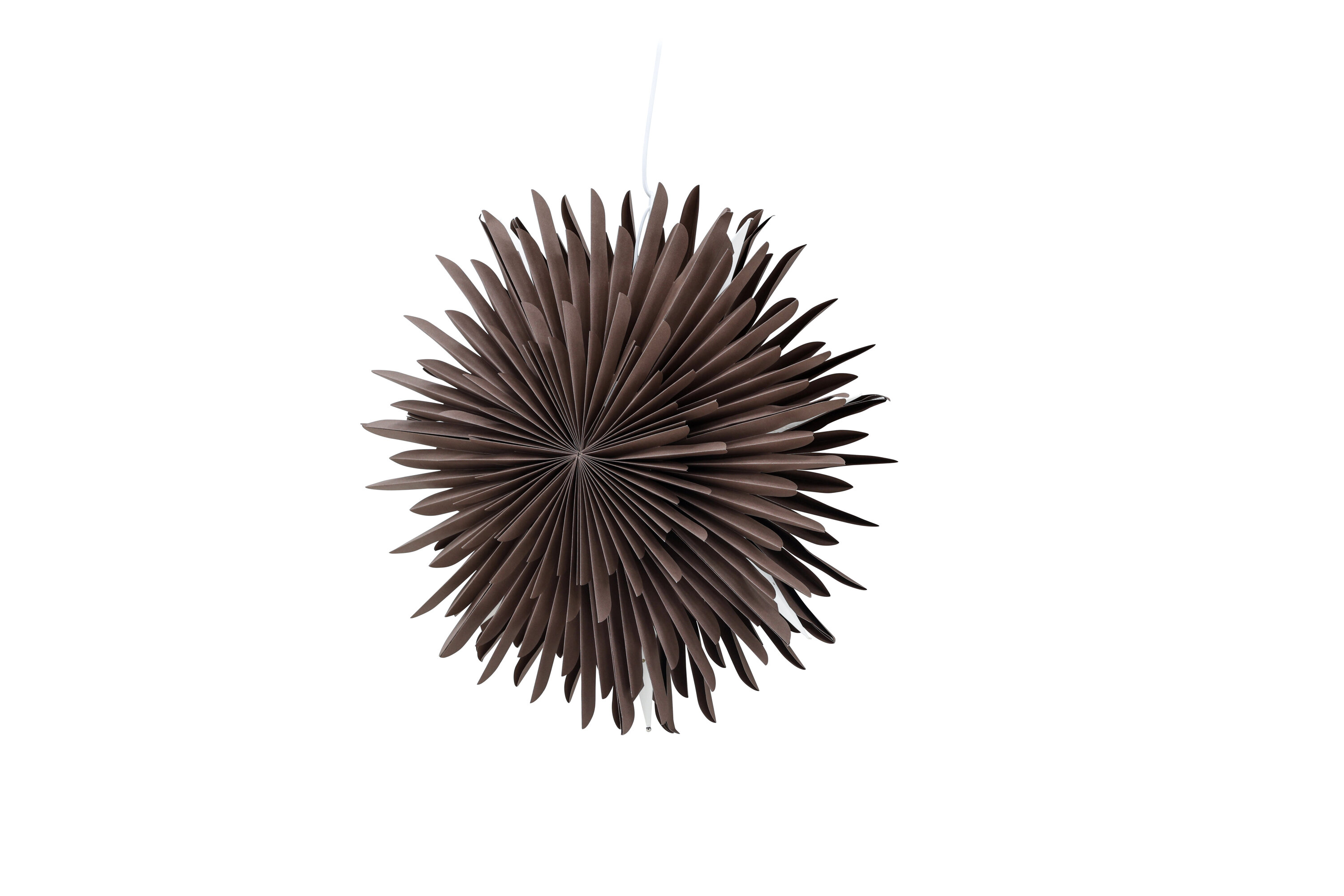 Das weiße Kabel, das die Lampe an Ort und Stelle hält, sorgt für eine diskrete und stilvolle Anordnung, sodass Ihre Beleuchtung im Mittelpunkt des Raums steht. Ob dunkle Winter- und Herbsttage oder weihnachtliche Stimmung - dieser Papierstern schafft eine wunderbar gemütliche und ruhige Atmosphäre.