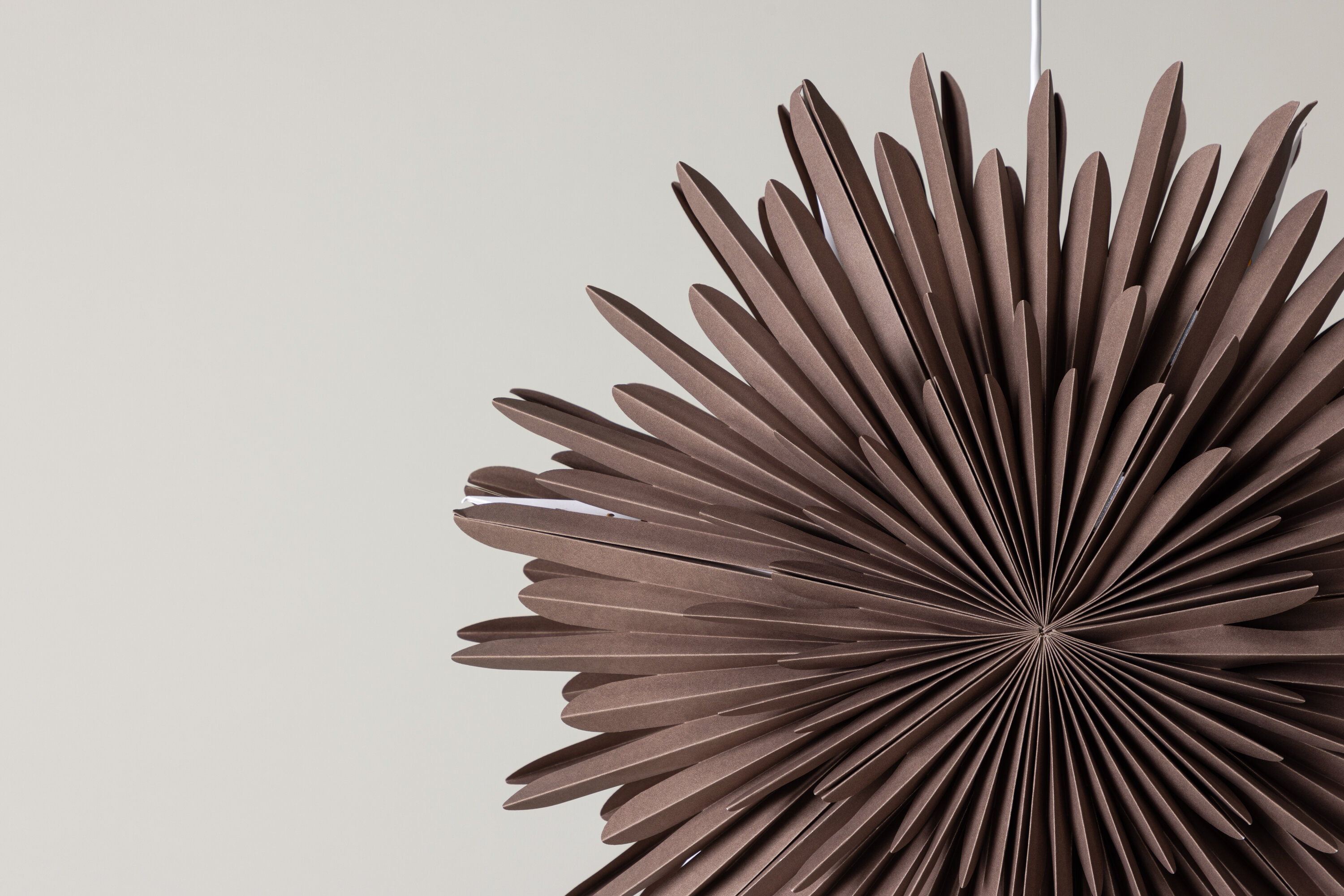 Dekorieren Sie Ihr Zuhause an kalten Wintertagen mit Hilfe unseres greigefarbenen Papiersterns aus der Serie Sälen mit warmem Licht! Diese Deckenlampe hat die Form eines blühenden Sterns und verbreitet ein magisches Leuchten und gemütliche Gefühle, wenn sie am meisten gebraucht werden. Die Farbe neigt zu Dunkelbraun, hat aber auch Grau- und Beigetöne.