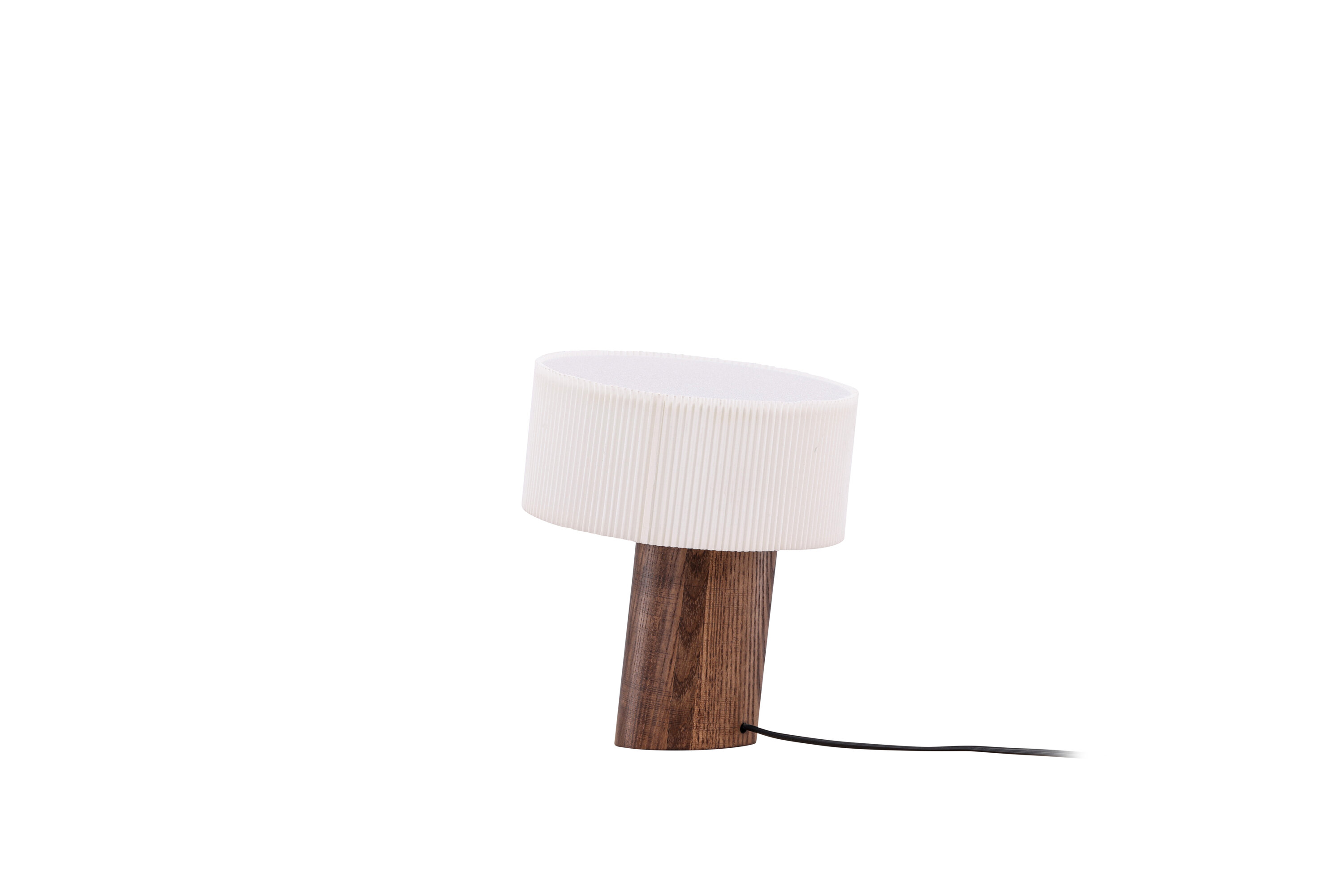 Mit ihrem walnussfarbenen zylindrischen Sockel und einem Lampenschirm aus plissiertem weißem Papier ist diese Lampe ein Meisterwerk modernen Designs. Der schräge Lampensockel ist nicht nur ein stilvolles optisches Detail, sondern auch ein deutliches Zeichen für eine moderne Lampe mit einzigartigem Design. Jedes Detail wurde sorgfältig entworfen, um Ihren Raum in eine modebewusste Oase von Trend und Harmonie zu verwandeln.