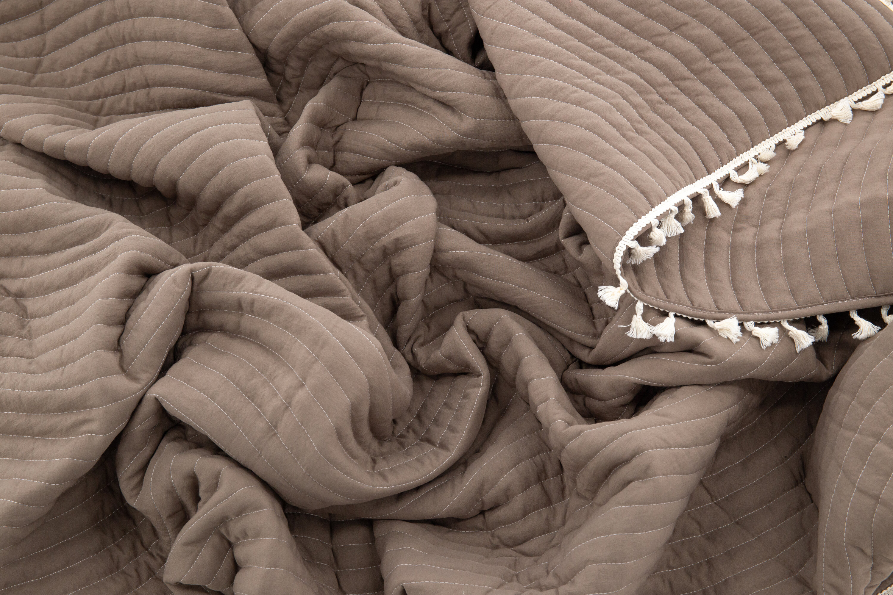 Die Lias Tagesdecke aus weicher Mikrofaser gibt ein warmes Gefühl im Schlafzimmer und die braune Farbe gibt einen gemütlichen und gemütlichen Eindruck. Lias ist eine gesteppte Tagesdecke und hat einen dekorativen gestickten Rand mit Wimpern, der Ihrem Bett einen schönen Effekt verleiht. Wir empfehlen, Flecken bei Flecken zu entfernen und das Textil häufig zu verwittern, um Farbe und Form zu erhalten. Die Tagesdecke ist 260x260cm groß und wir empfehlen, sie in der Maschine bei 40 Grad zu waschen.