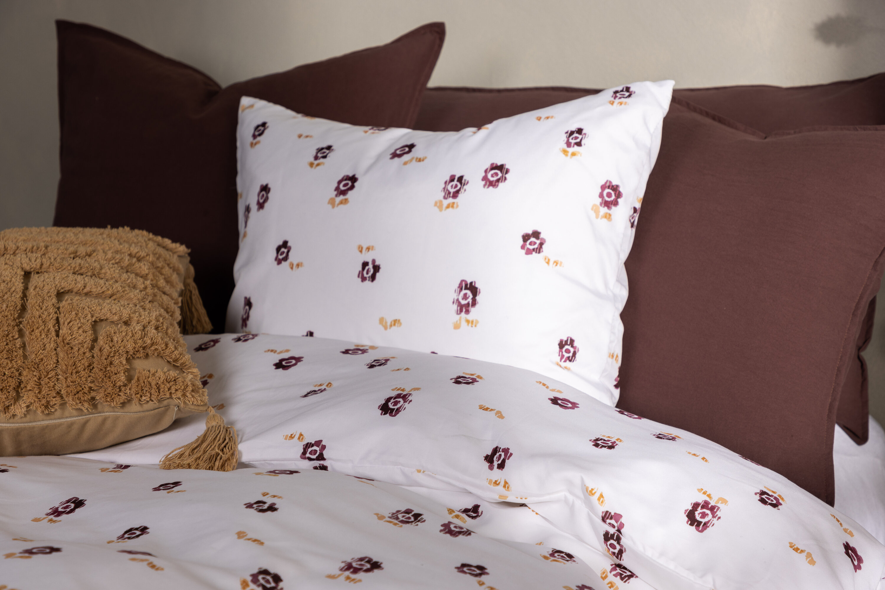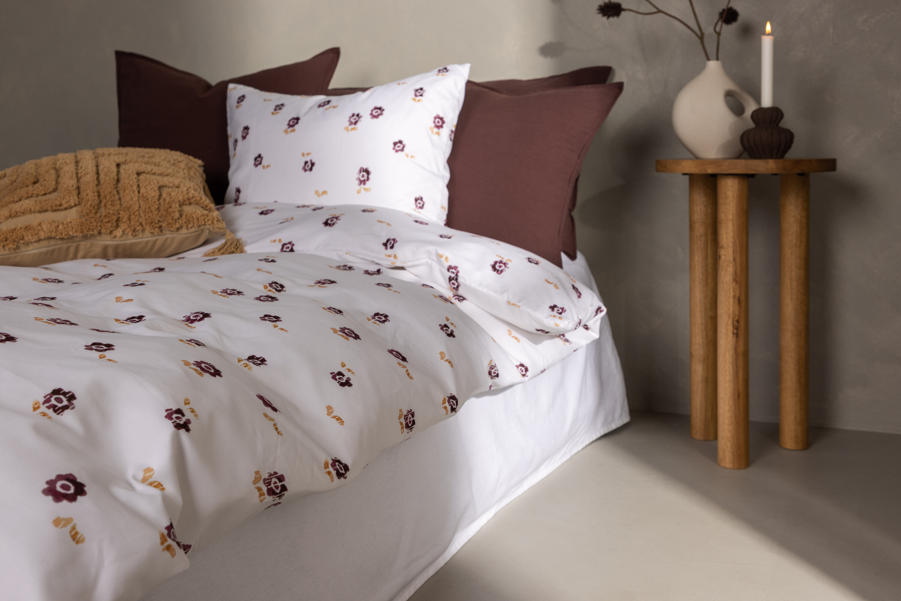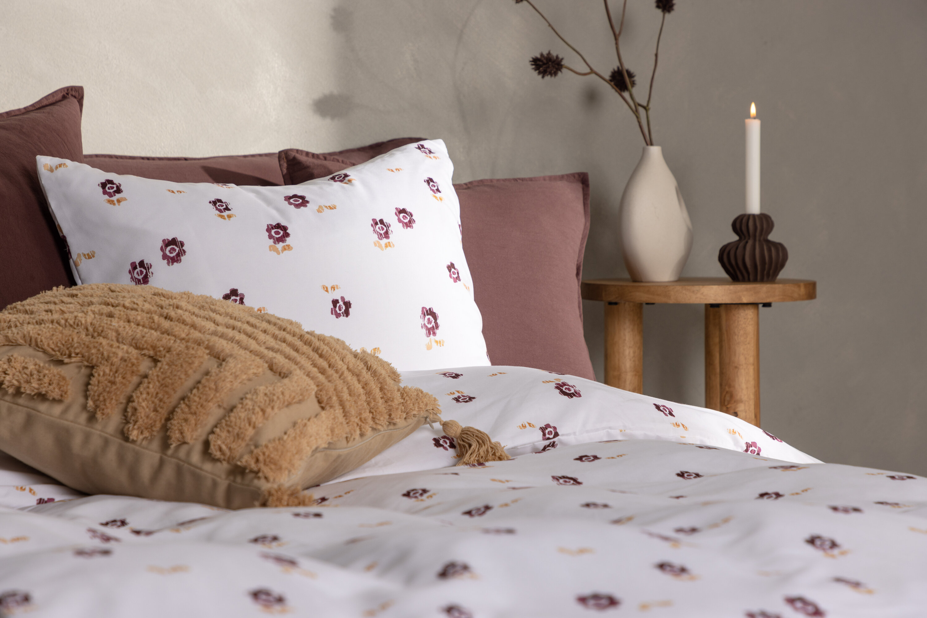 Charmantes und modernes Bett mit einem schönen Bett-Set aus der EVA-Serie! Diese Polyesterbettwäsche ist in Ordnung und ist genauso kuschelig zum Schlafen wie zum Schlafen. Die Bettwäsche hat eine weiße Grundfarbe und schmeichelhafte kleine Blumenmotive in lila und gelber Farbe, die einen niedlichen und einladenden Eindruck hinterlassen. Sehen Sie sich unsere Bilder als Inspiration an und Sie können mit Hilfe dieser schönen Bettwäsche auch wie ein Profi schlafen!