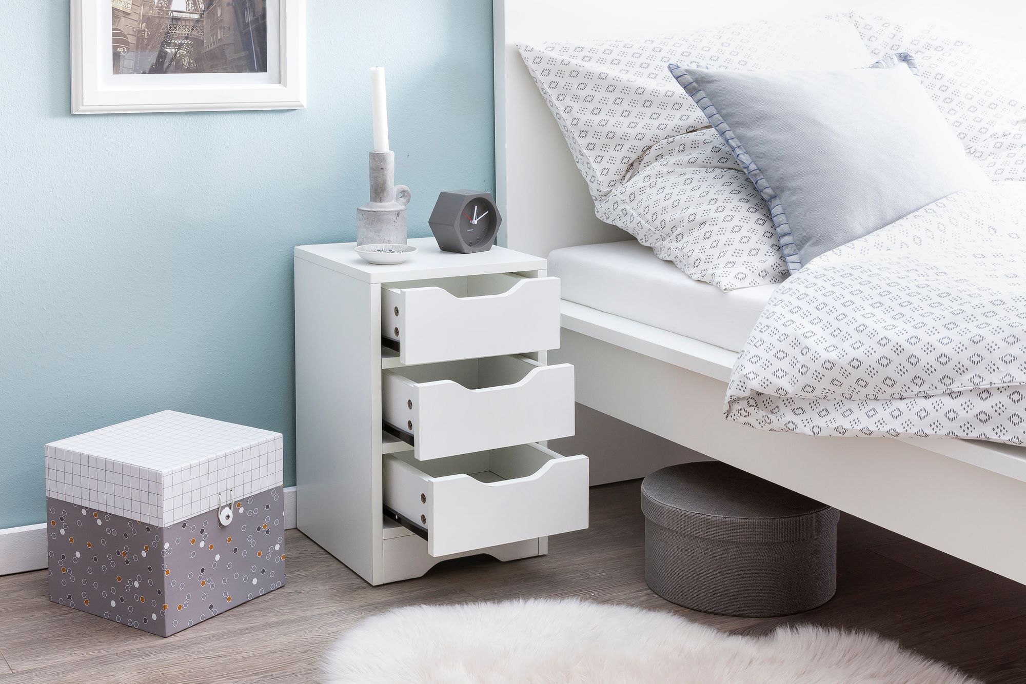 Produktinformationen "Nachtkonsole Weiß Matt 31x49x31 cm | 3 Schubladen | Moderner und funktionaler Nachttisch"