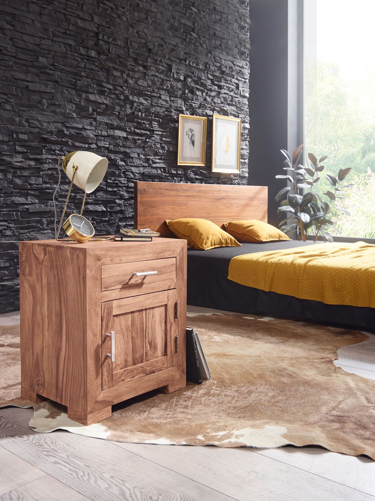 Produktinformationen "Nachttisch MUMBAI Massivholz Akazie Holzfarben 60 cm | Schublade | Tür"