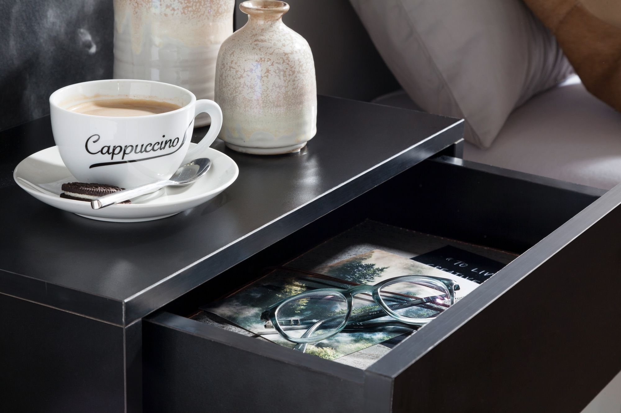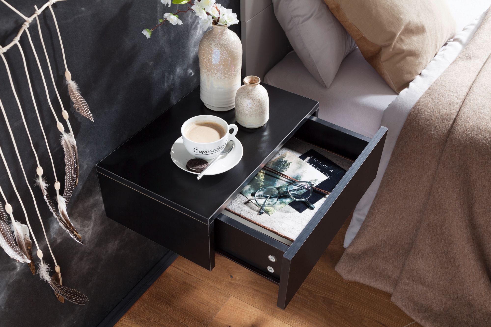 Wohnling nachtkonsole zadar wand nachttisch schwarz wandboard holz boxspringbett