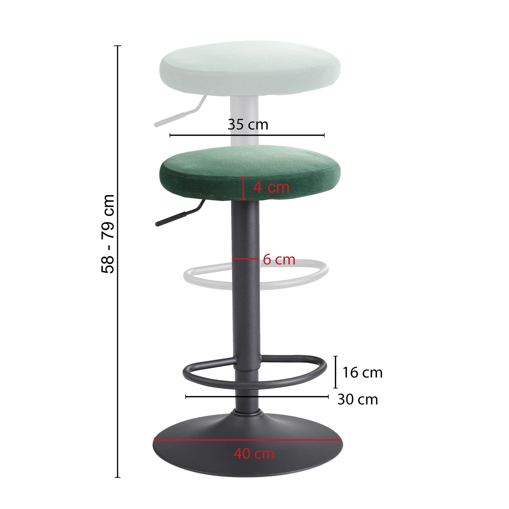 Produktinformationen "Barhocker Samt Grün | Ohne Lehne | 58-79 cm | Polyester Stoff & Metall"