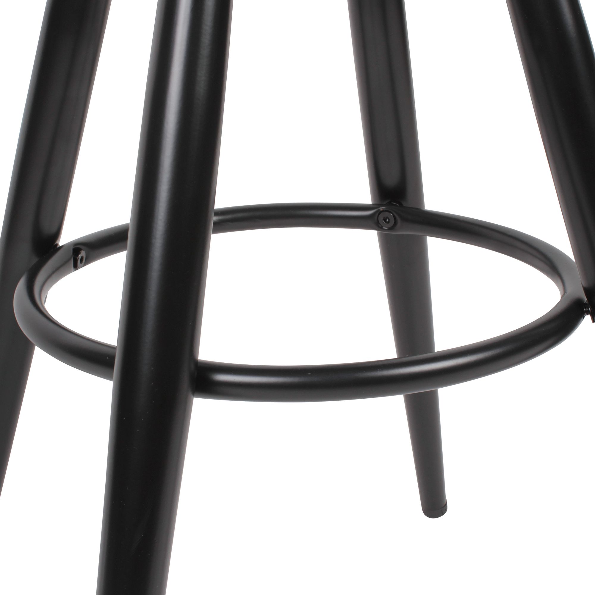 Die nach außen geneigten Beine gewährleisten einen sicheren Stand, der eingebaute Fußring dient als praktische Ablage. Die Sitzfläche ist speziell geformt und drehbar für hohen Sitzkomfort.