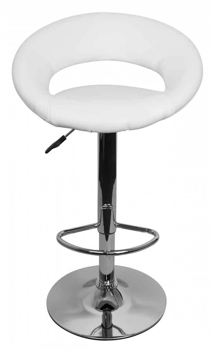 Produktinformationen "Höhenverstellbarer Barhocker | Weißes Kunstleder | Ohne Rückenlehne, verchromtes Gestell 80-102 cm"