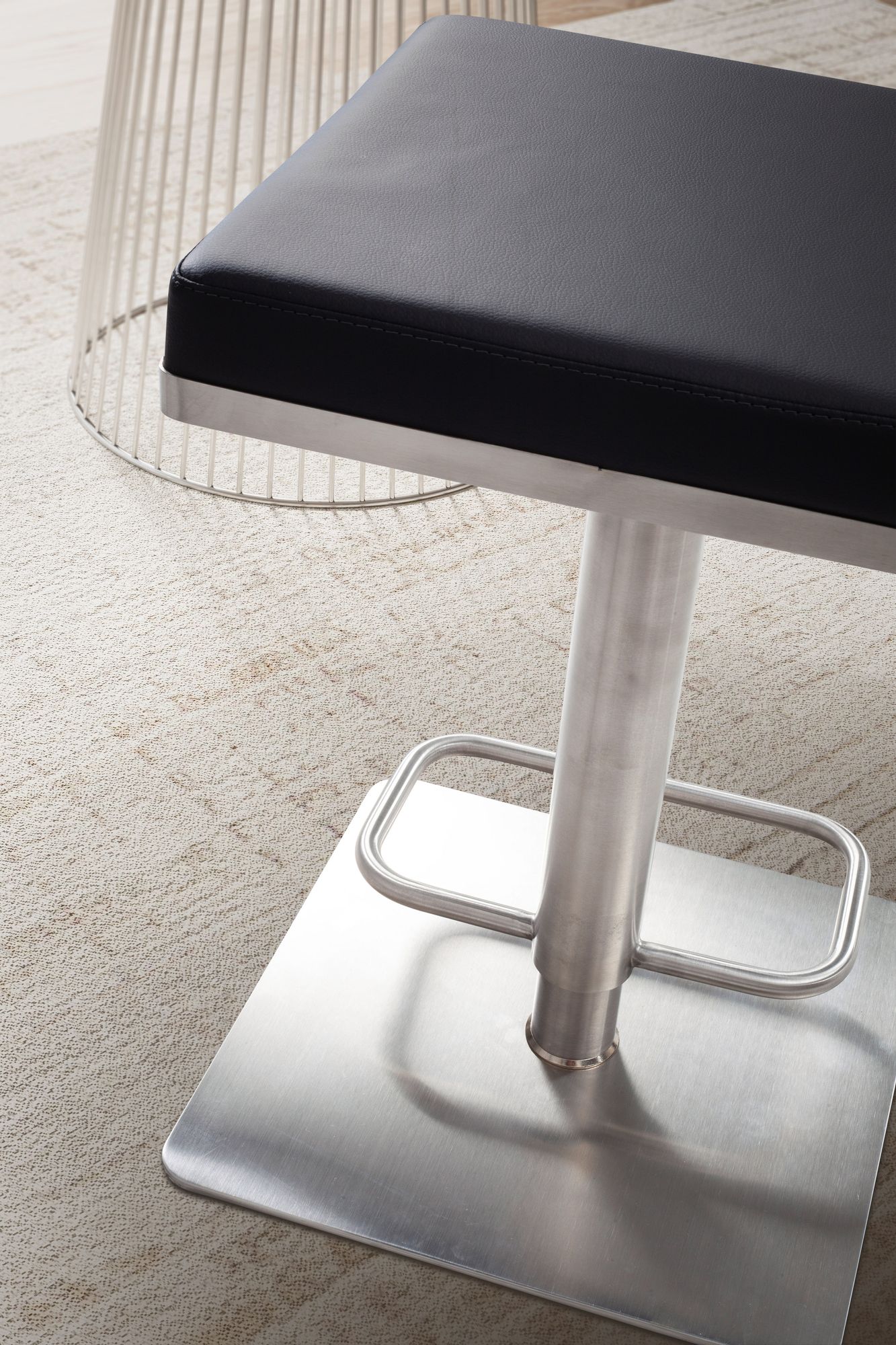- Materialien: Sitzbezug 100% Polyurethan Kunstleder, Gestell aus gebürstetem Edelstahl.