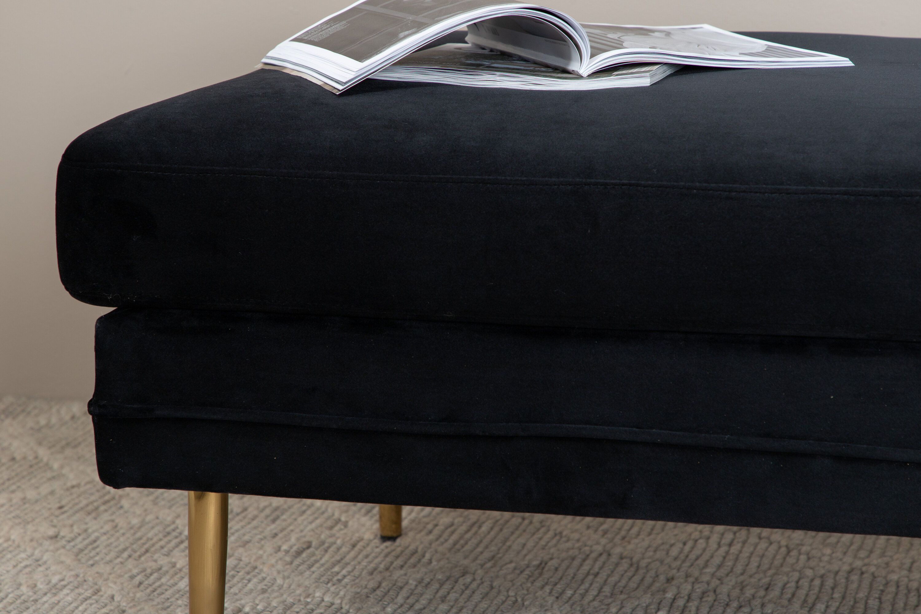 Luxuriös, elegant und zeitlos - Boom Sittpuff schafft einen Blickfang, der beeindruckt! Hier wird geradliniges nordisches Design mit weichen Formen kombiniert. Das durchdachte Ganze des Sitzpuffs bedeutet, dass er sowohl alleine als auch als Stilikone passt, wie auch zusammen mit unserem Sessel in der gleichen Serie. Hergestellt aus frecher schwarzer Farbe aus samtigem Stoff und einem Rahmen aus Holz und Metall. Die stilvollen schmalen Beine sind aus messingpoliertem Metall und werden zu einem schönen Detail. Erweitern Sie die Innenarchitektur in Ihrem Zuhause! Puffs Maße: 90 cm, Breite: 70 cm, Höhe: 49 cm.