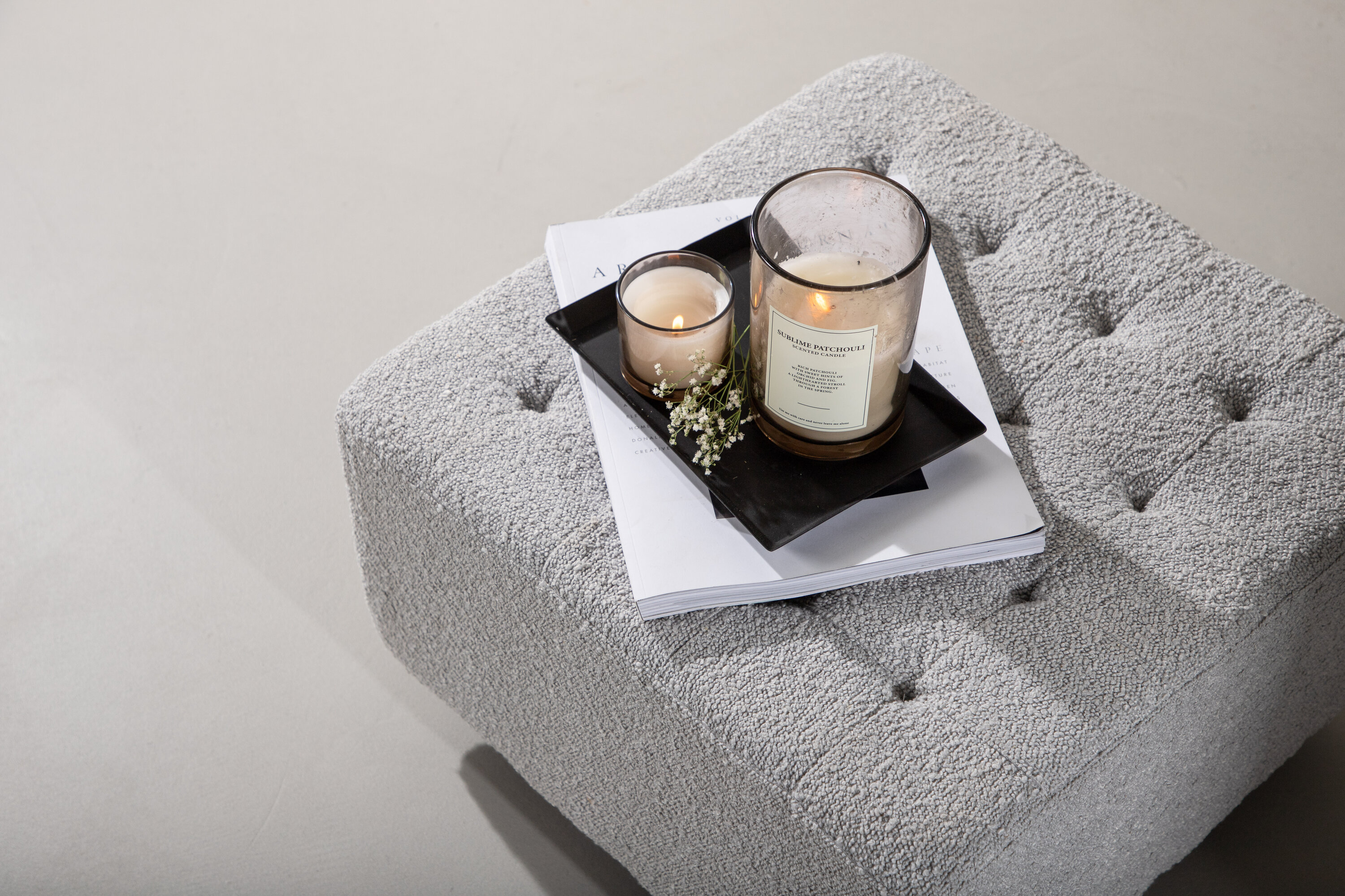 Bowie - Ein Sitzpuff, der garantiert zu einem Erfolg in Ihrem Zuhause wird! Dieser köstliche Sitzaufzug hat ein rechteckiges Design mit weichen Formen aus hellgrauem Boulene-Stoff mit tief verschmutzten Knöpfen, die sich in ein schönes Detail verwandeln. Der Zug wird von vier Beinen aus schwarzem Stahl angehoben, was den Möbeln einen hübschen Auftrieb verleiht. Verwenden Sie es als Fußschemel, um Ihre Füße darauf zu stützen, als zusätzlichen Sitz, wenn Gäste viele werden, oder platzieren Sie es wie eine Stilikone neben anderen Möbeln - nur die Fantasie setzt die Grenzen!