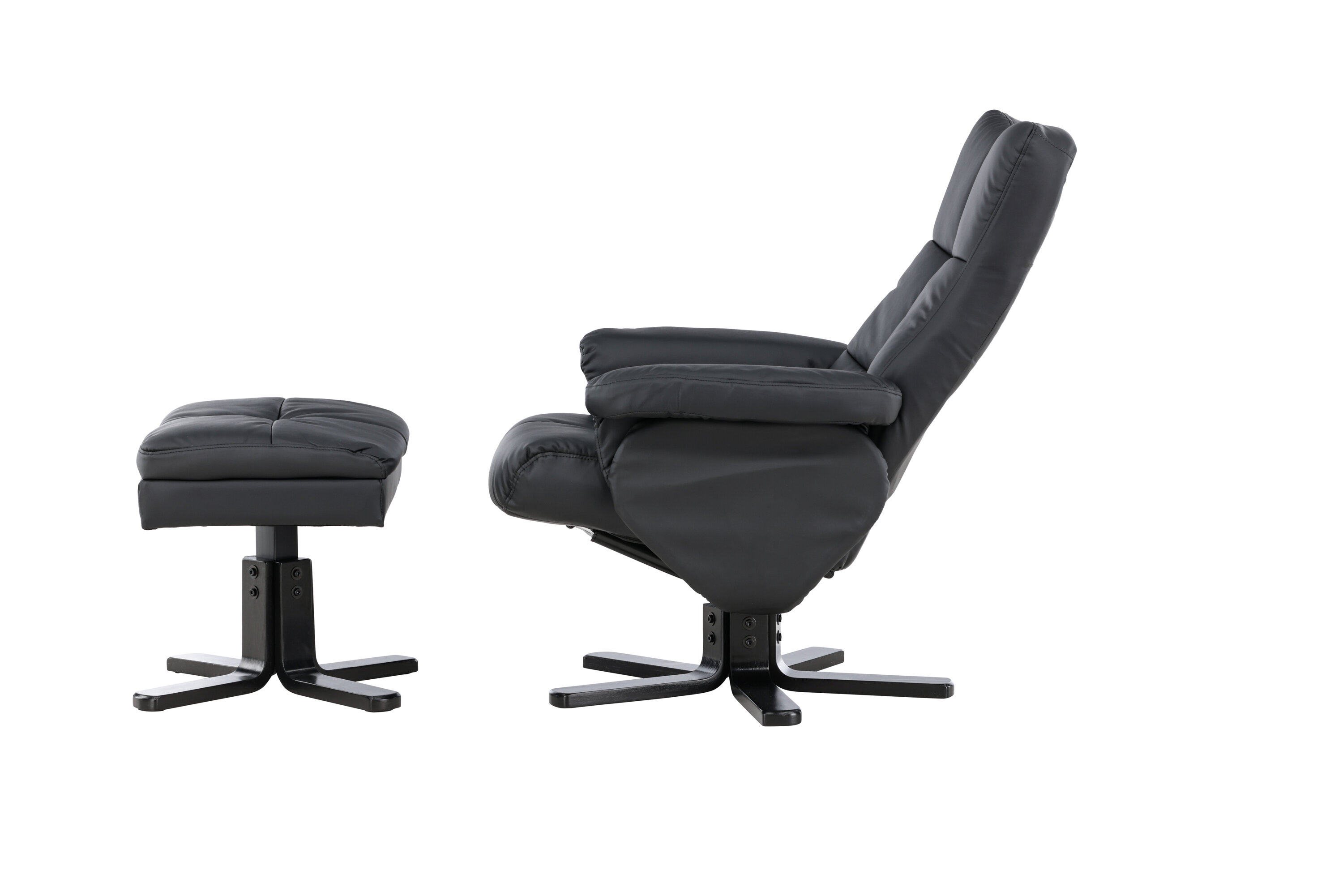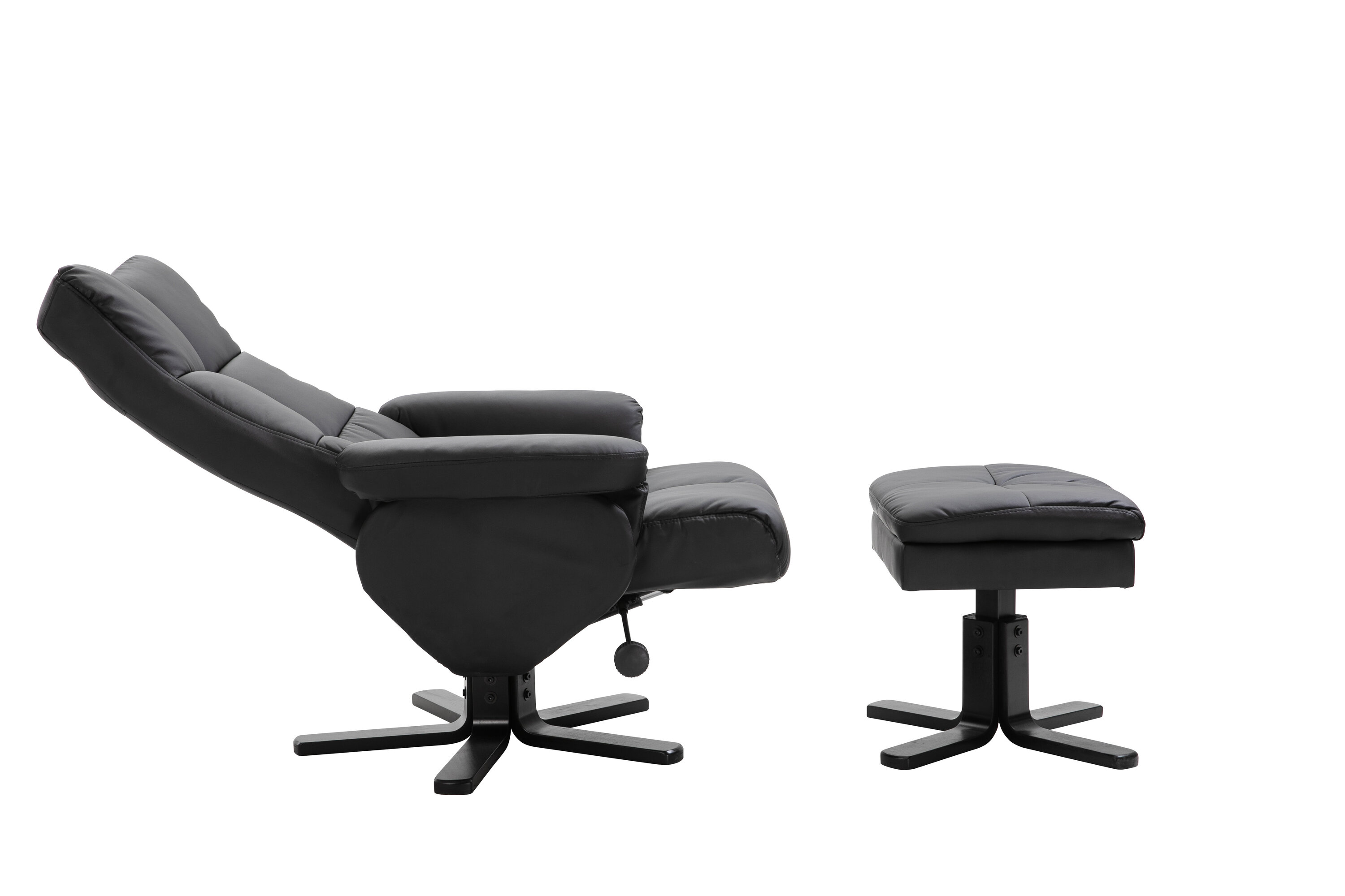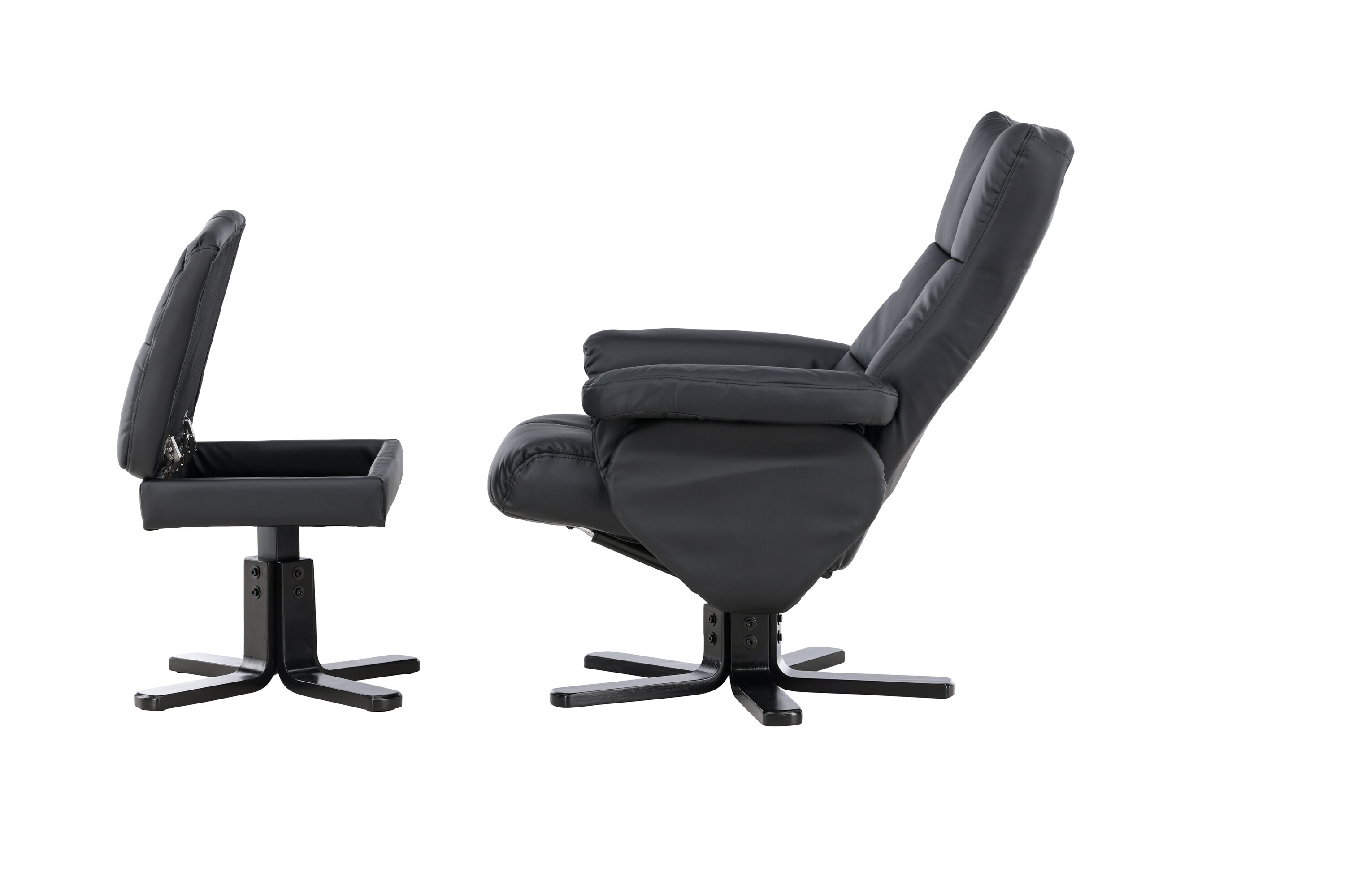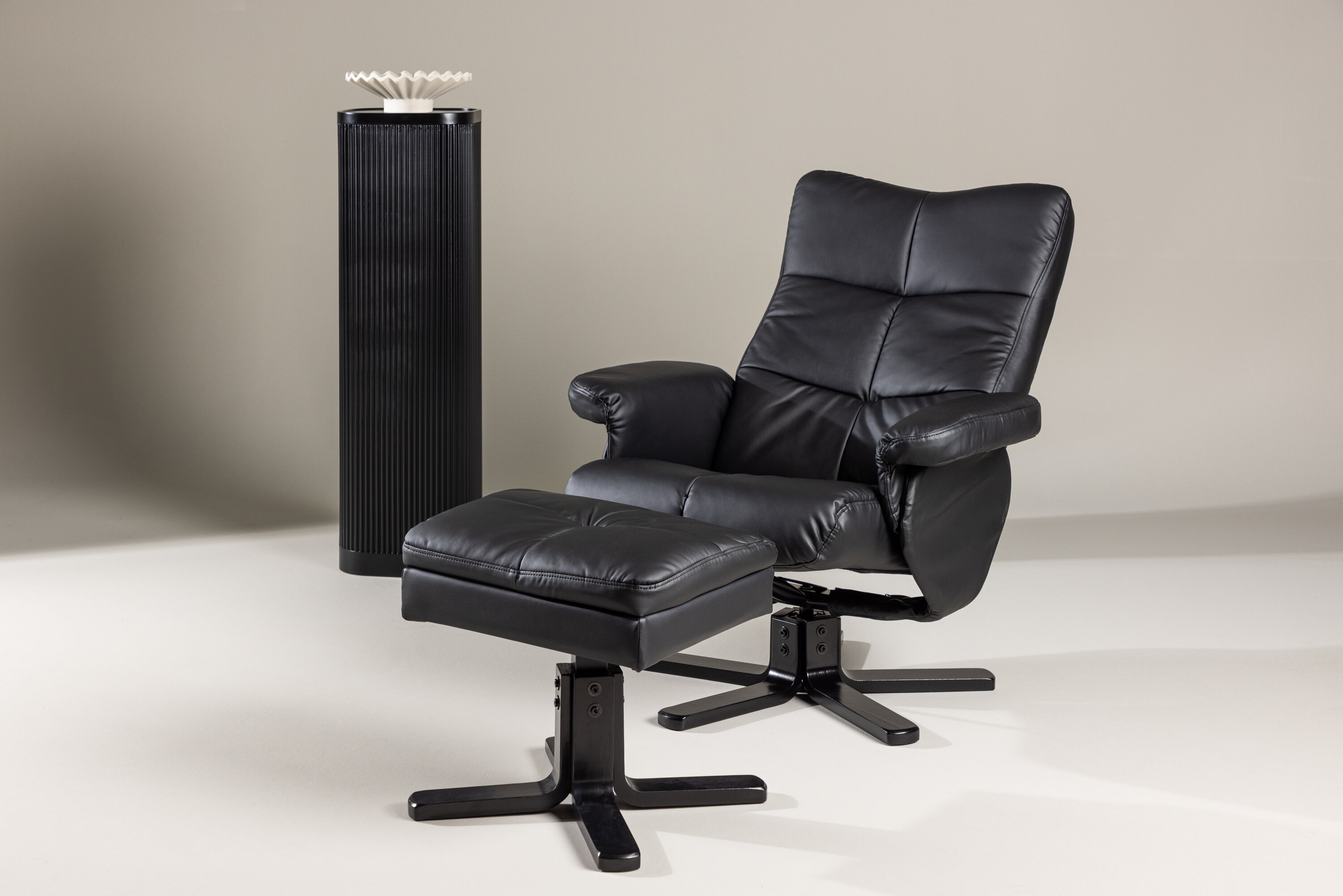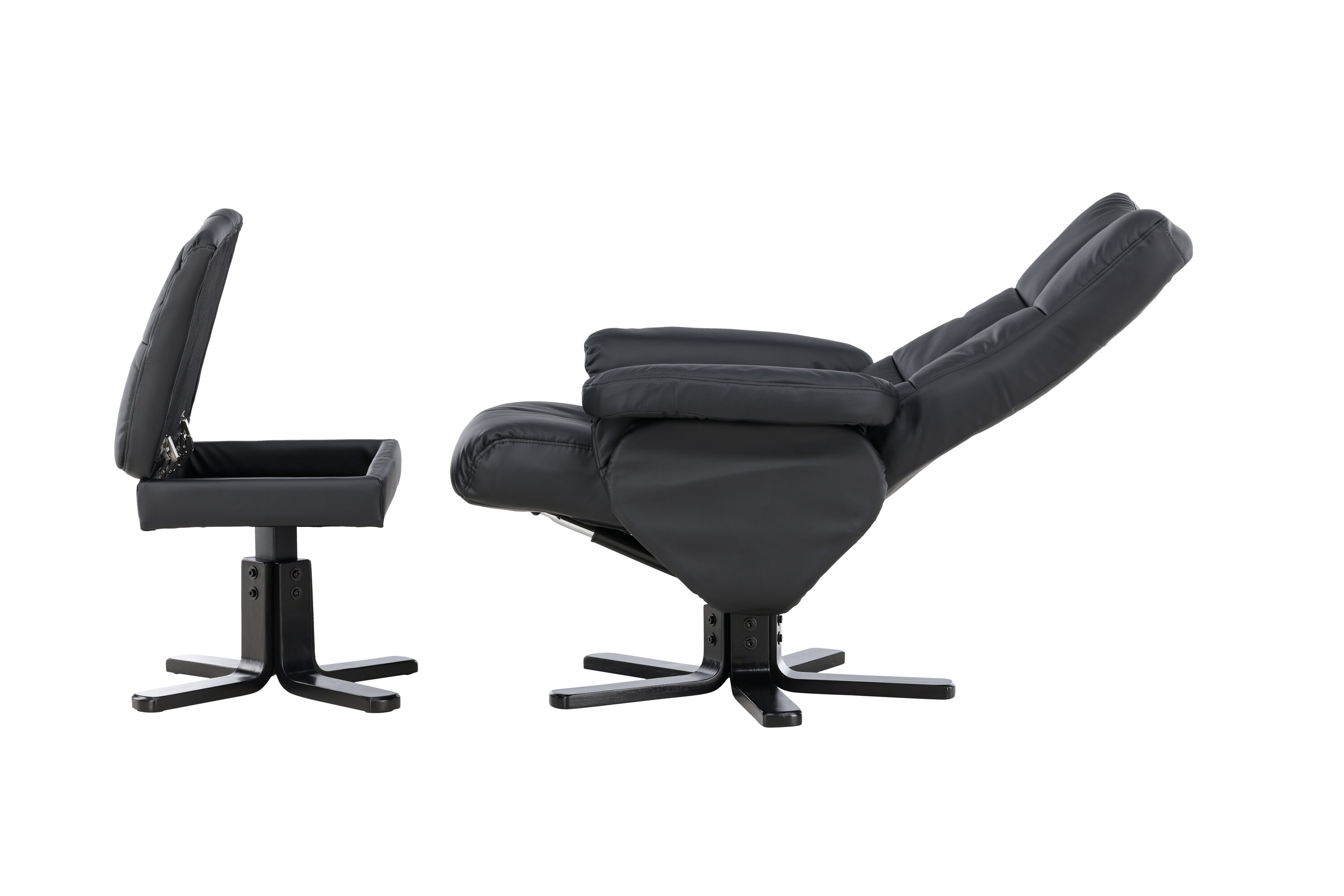 Ein praktischer Sessel mit stilvollem Design und smarten Features - kein Zuhause ist komplett ohne den perfekten Sessel! Dieser Sessel aus der Serie Sven mit Ottoman ist die perfekte Wahl für Sie, die Wert auf Komfort legen. Die Rückenlehne lässt sich in verschiedenen Schritten zusammenklappen und im Ottomane gibt es einen glatten Stauraum. Die elegante schwarze Polsterung ist in PU-Kunstleder gehalten. Kriechen Sie unter einer gemütlichen Decke zusammen, strecken Sie Ihre Beine auf den Hocker und genießen Sie Ihre freien Momente in einem bequemen und praktischen Sessel!