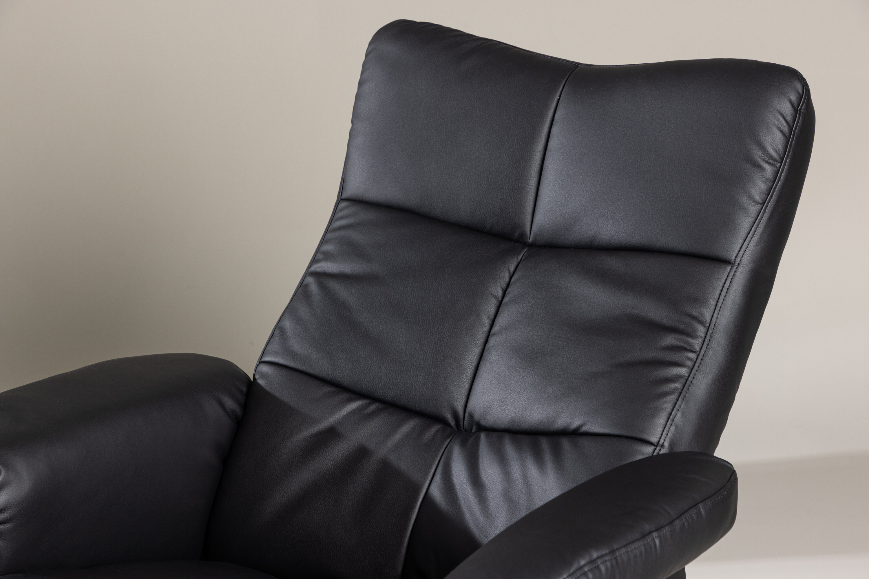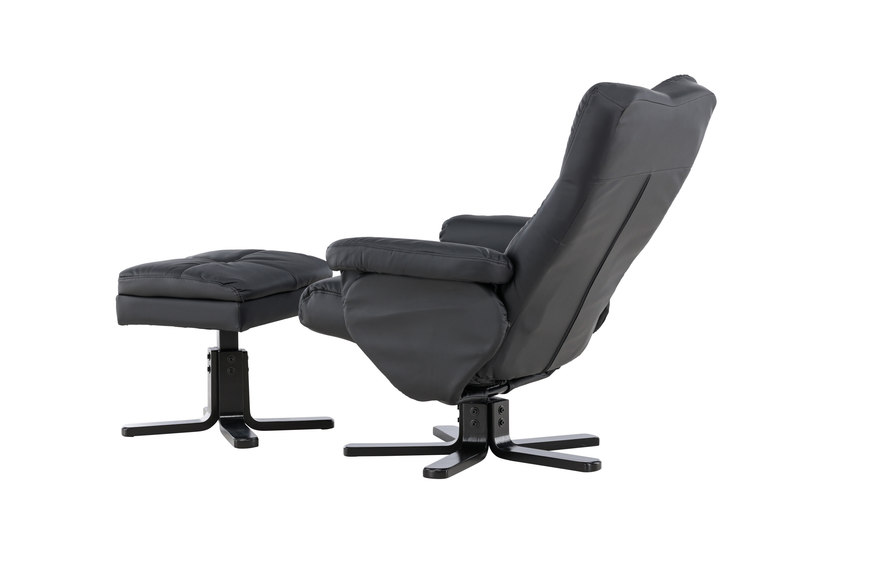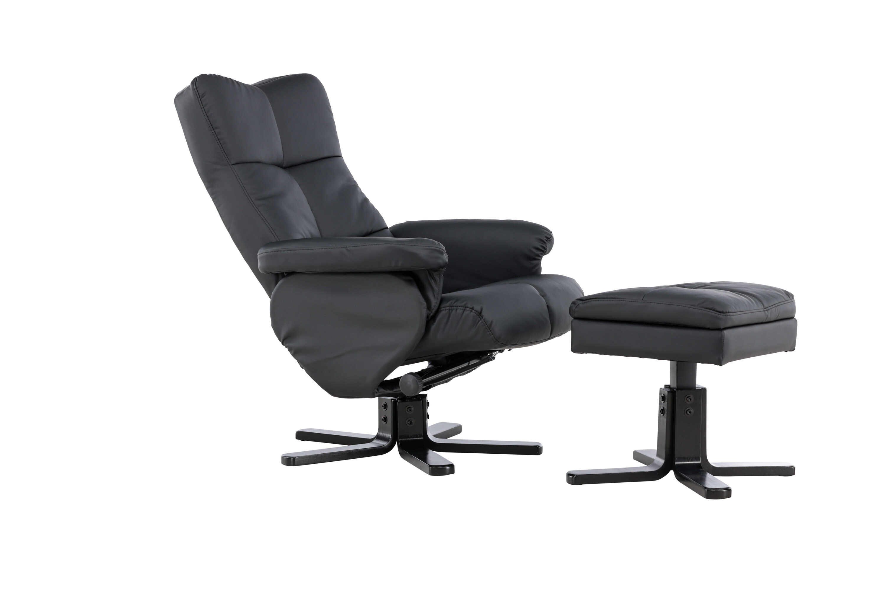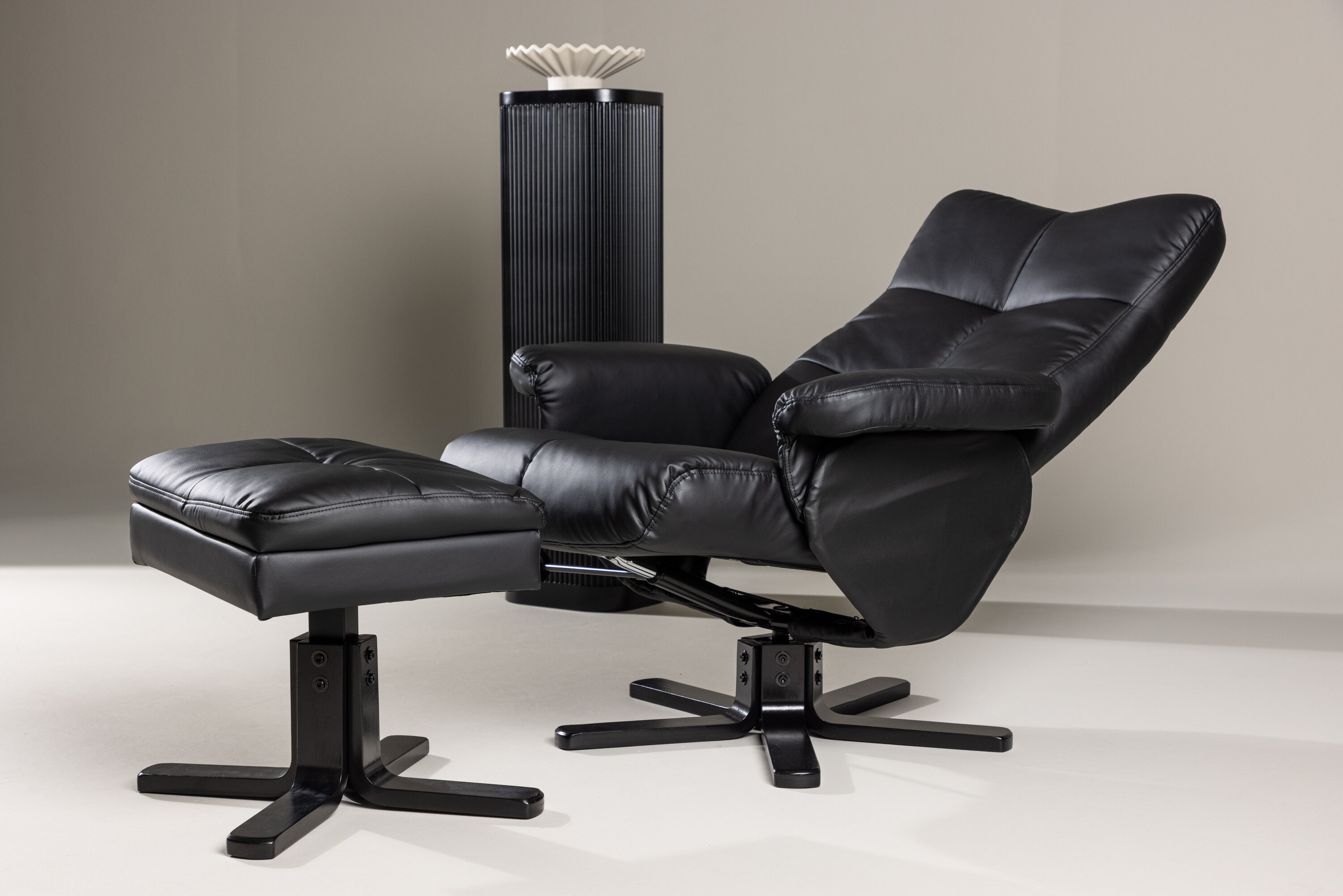 Ein praktischer Sessel mit stilvollem Design und smarten Features - kein Zuhause ist komplett ohne den perfekten Sessel! Dieser Sessel aus der Serie Sven mit Ottoman ist die perfekte Wahl für Sie, die Wert auf Komfort legen. Die Rückenlehne lässt sich in verschiedenen Schritten zusammenklappen und im Ottomane gibt es einen glatten Stauraum. Die elegante schwarze Polsterung ist in PU-Kunstleder gehalten. Kriechen Sie unter einer gemütlichen Decke zusammen, strecken Sie Ihre Beine auf den Hocker und genießen Sie Ihre freien Momente in einem bequemen und praktischen Sessel!