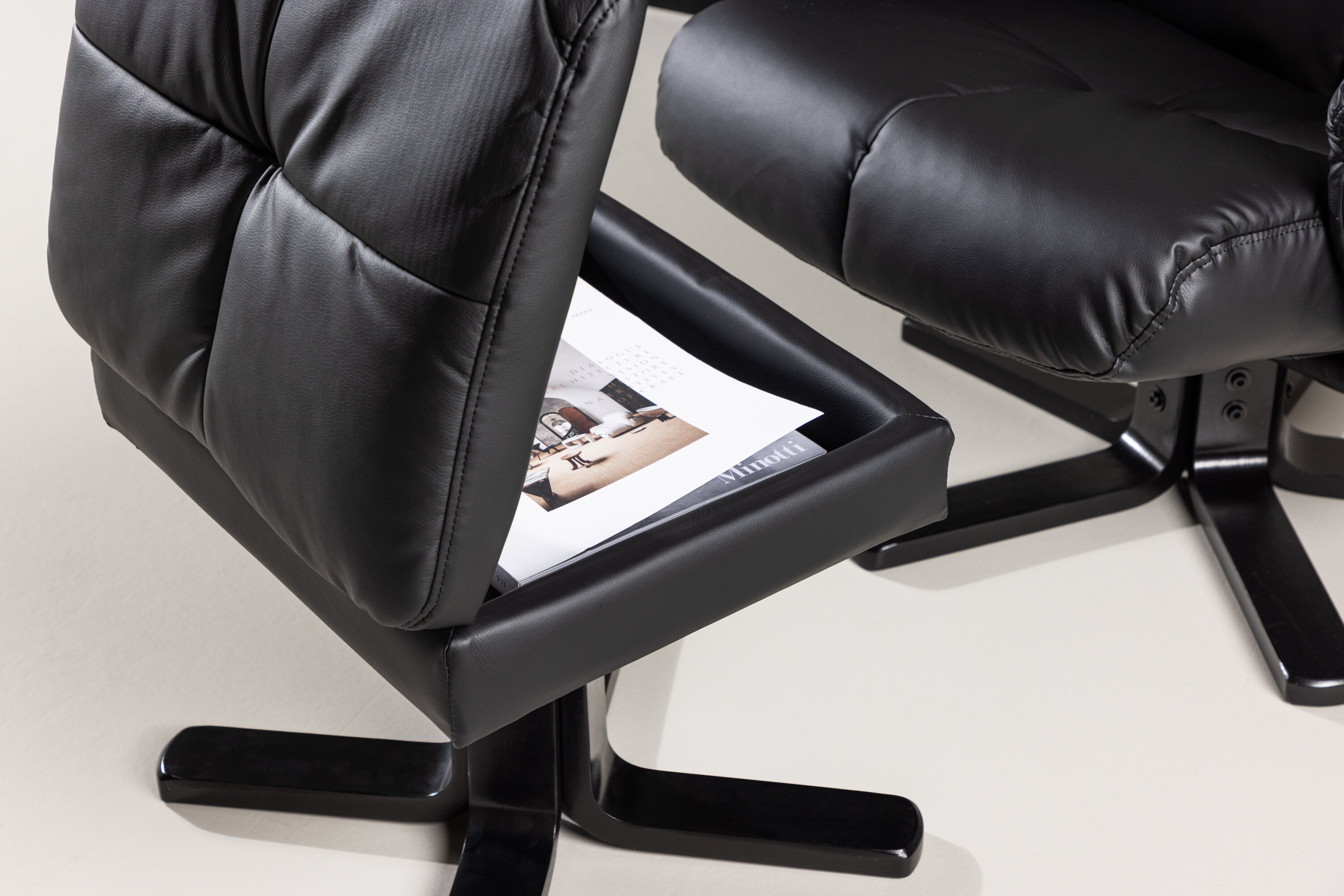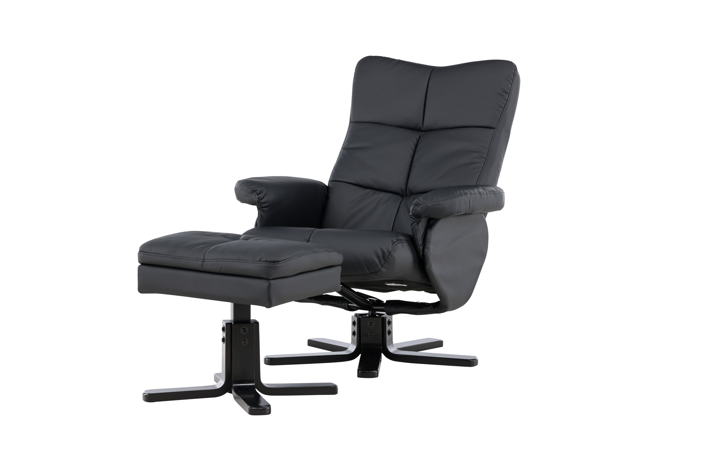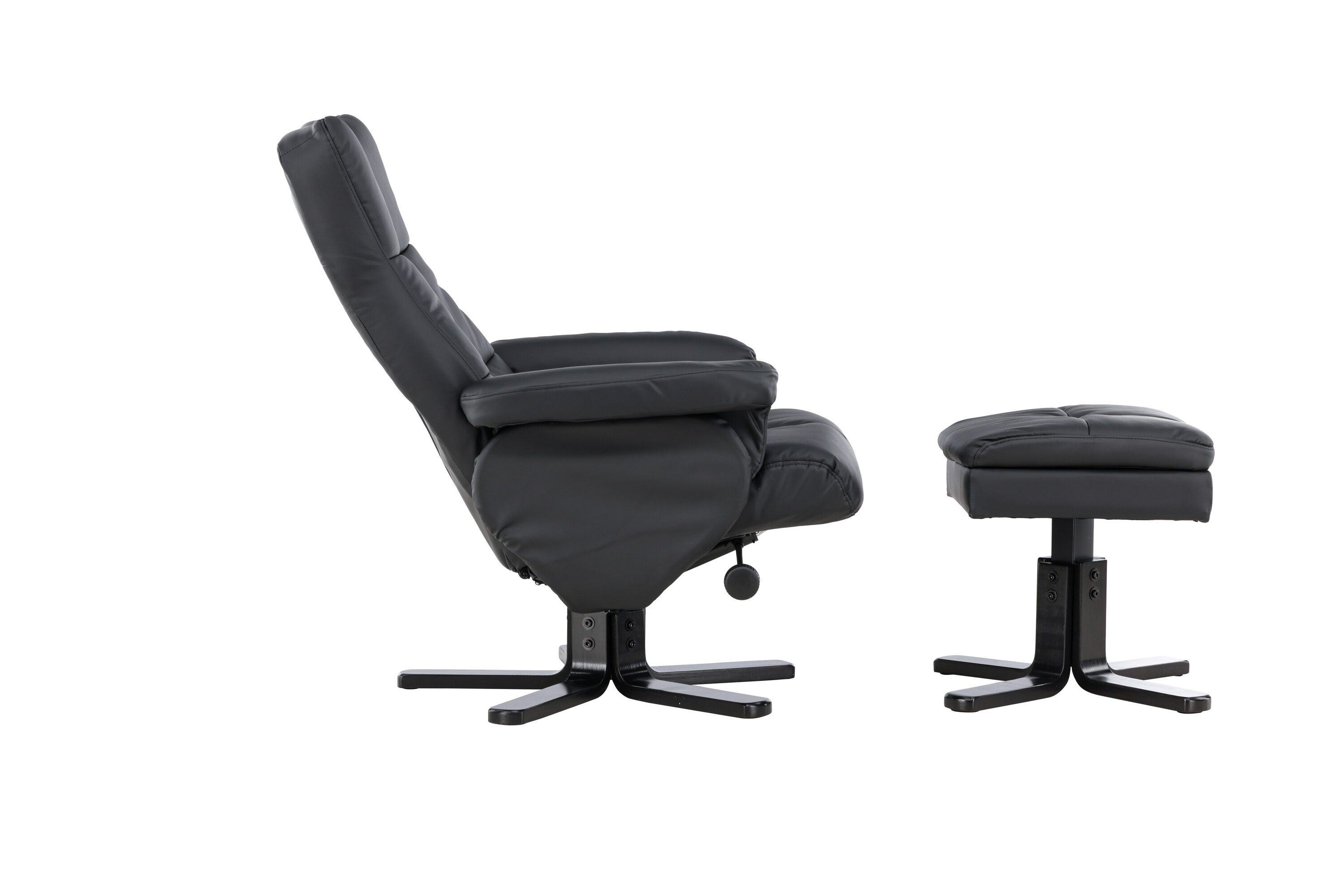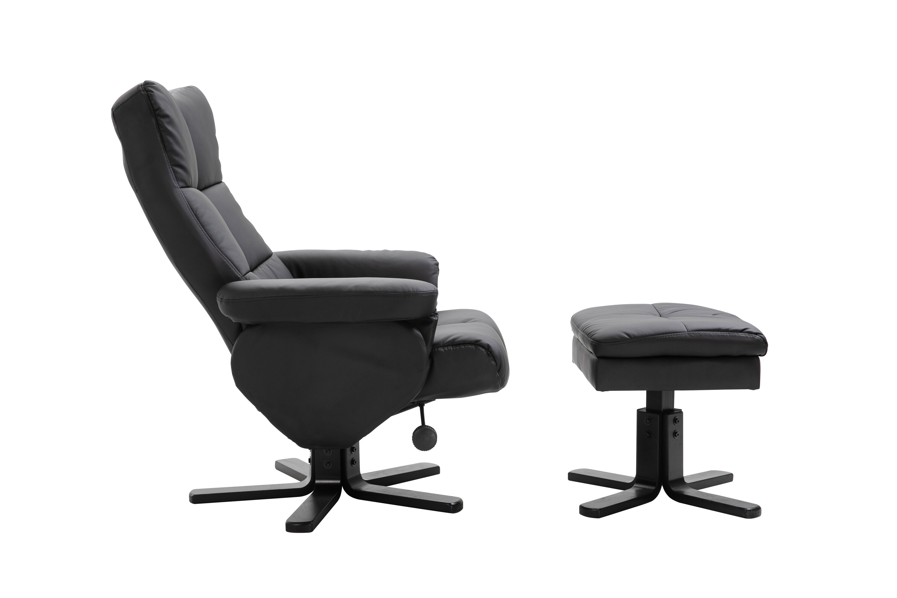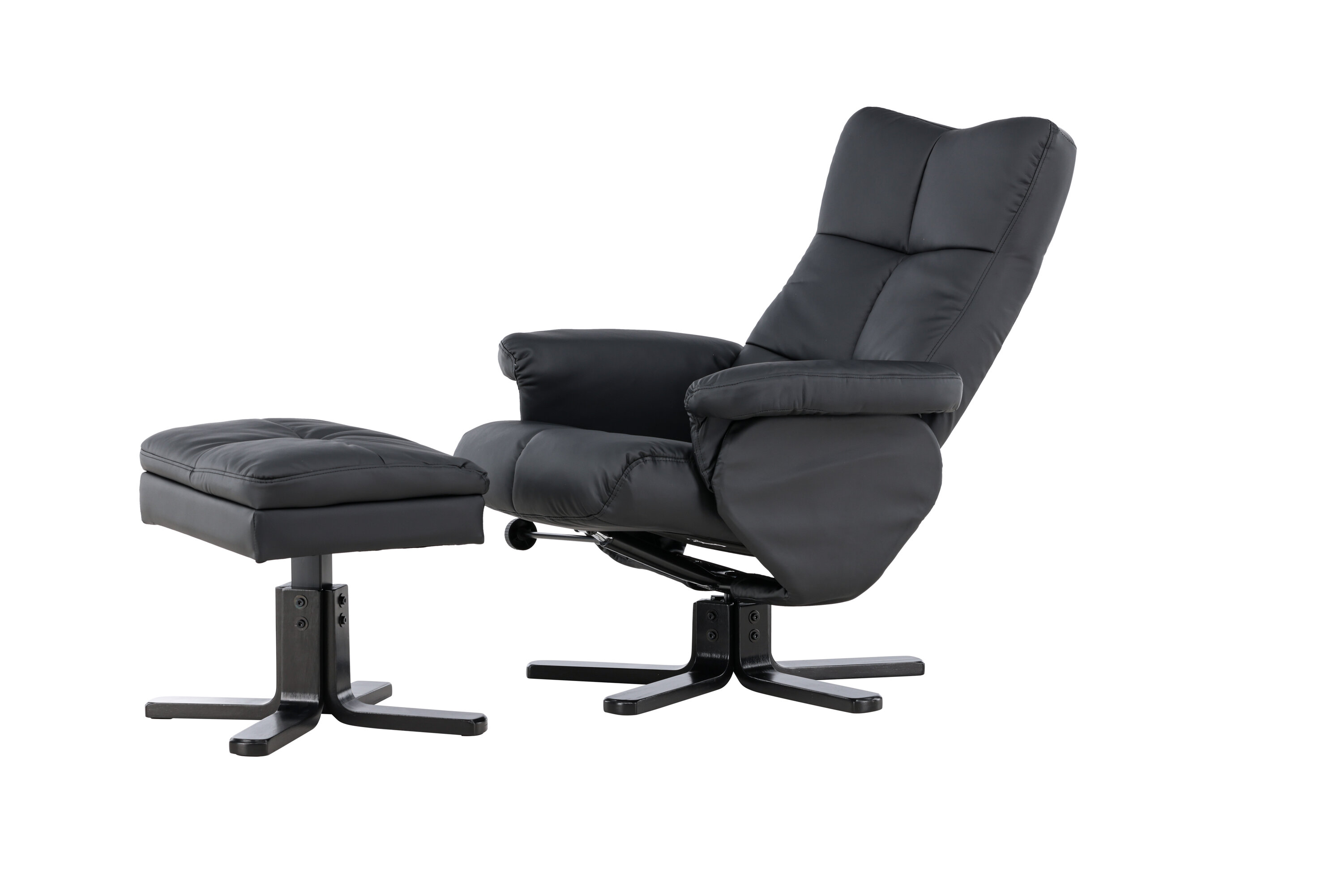 Ein praktischer Sessel mit stilvollem Design und smarten Features - kein Zuhause ist komplett ohne den perfekten Sessel! Dieser Sessel aus der Serie Sven mit Ottoman ist die perfekte Wahl für Sie, die Wert auf Komfort legen. Die Rückenlehne lässt sich in verschiedenen Schritten zusammenklappen und im Ottomane gibt es einen glatten Stauraum. Die elegante schwarze Polsterung ist in PU-Kunstleder gehalten. Kriechen Sie unter einer gemütlichen Decke zusammen, strecken Sie Ihre Beine auf den Hocker und genießen Sie Ihre freien Momente in einem bequemen und praktischen Sessel!