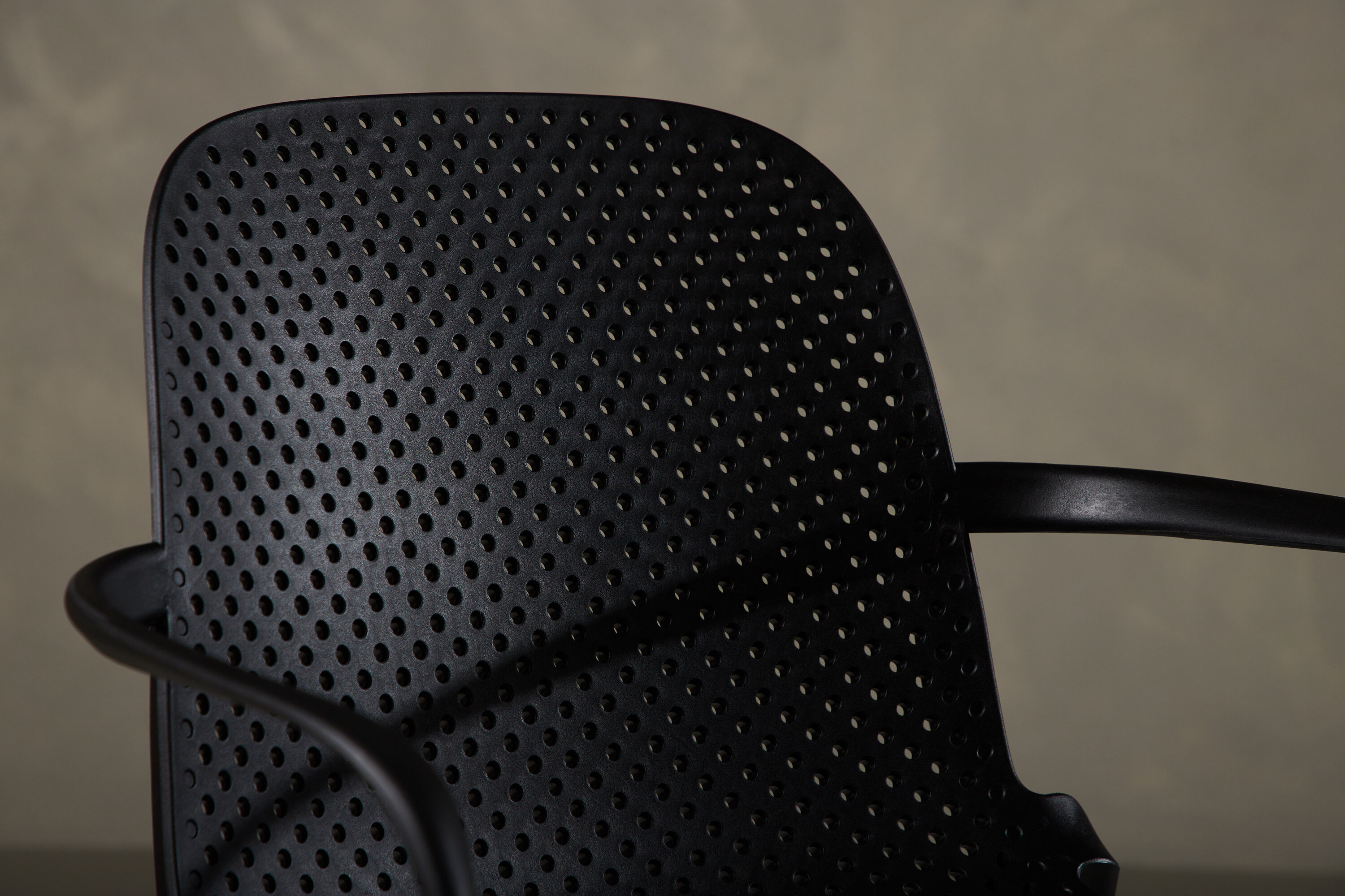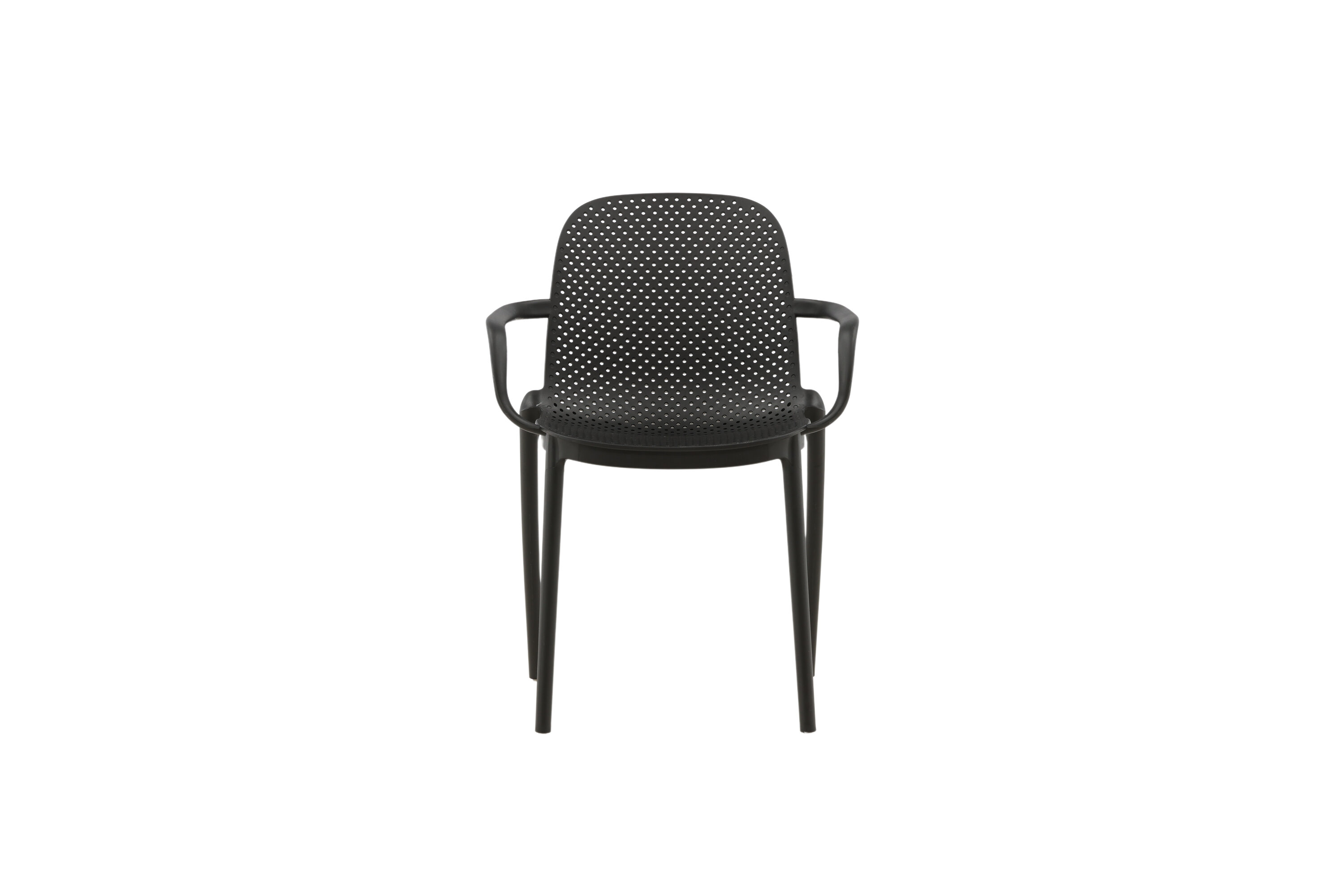 Ein eleganter Esszimmerstuhl mit strapazierfähigem Material und flexiblem Design! Dieser Esszimmerstuhl stammt aus der Baltimore-Serie und gehört zur Venture Home-Kollektion. Konsequent aus schwarzem Kunststoff, der pflegeleicht ist und Ihnen einen Esszimmerstuhl bietet, der die Zeit überdauert. Das Design ist auffällig mit geraden nordischen Formen und integrierten Armlehnen für zusätzlichen Komfort. Kombinieren Sie es mit einem stilvollen Esstisch, um ein komplettes Ess-Set für zukünftige Mahlzeiten zu erstellen!