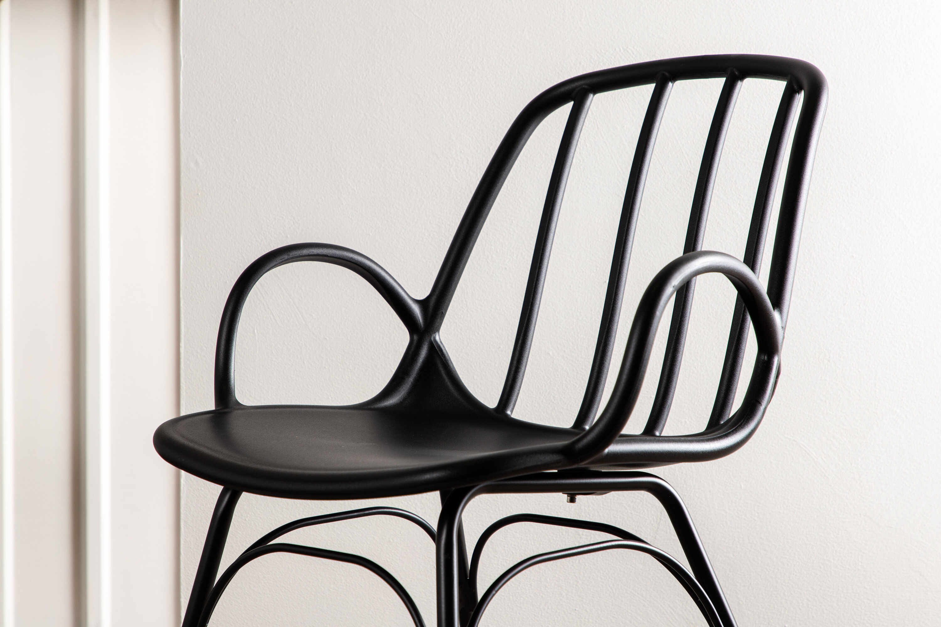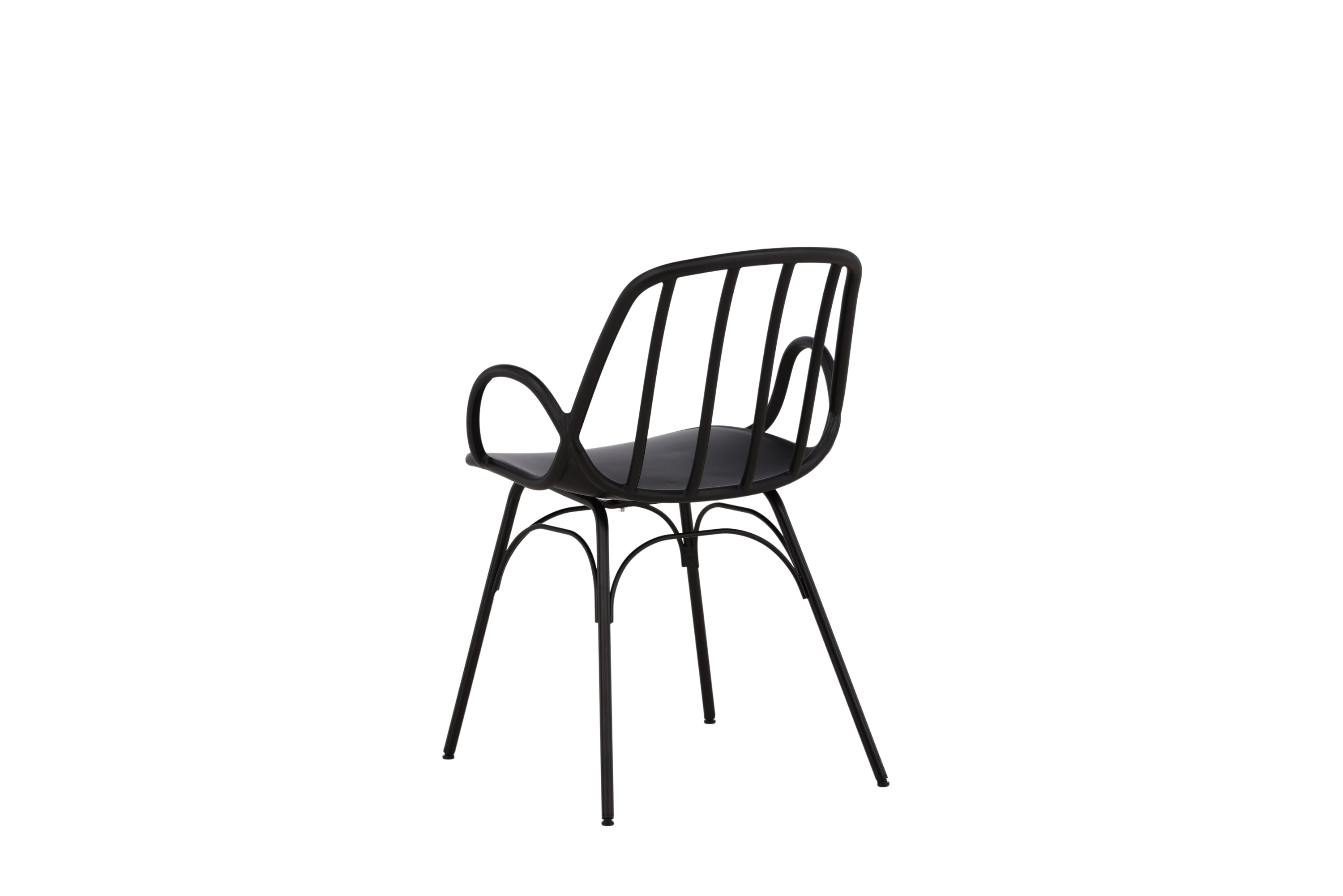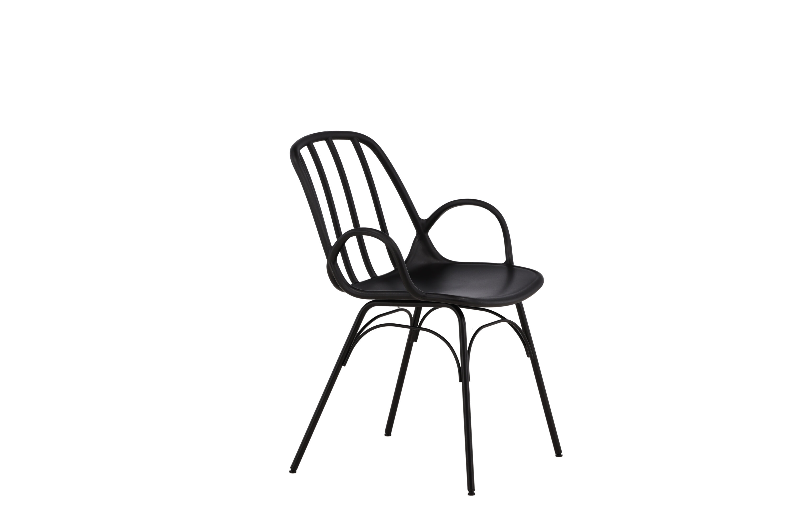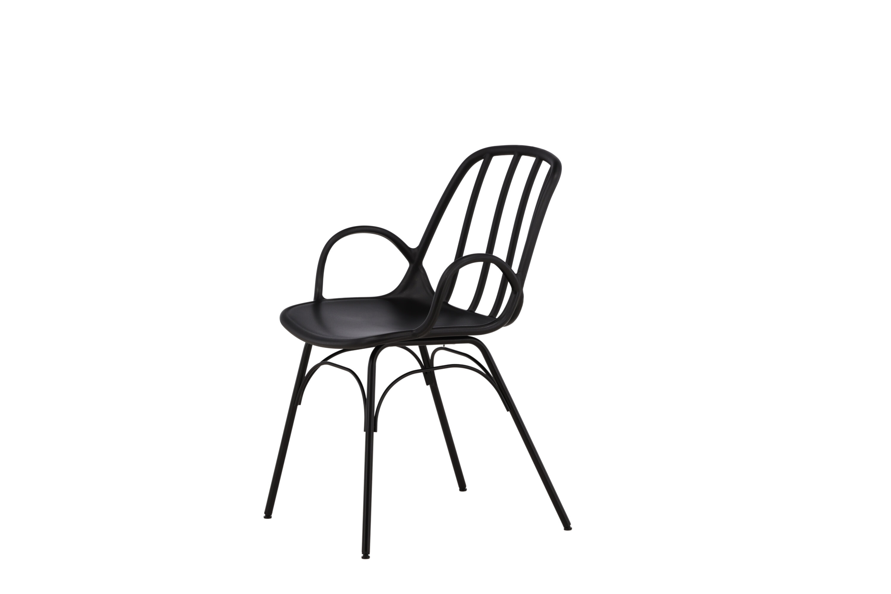 Dyrön - Ein schwarzer Esszimmerstuhl, der eine persönliche und modebewusste Atmosphäre in Ihrem Zuhause schafft! Dieser schöne Esszimmerstuhl ist so elegant wie praktisch, aus schwarzem Kunststoff und Stahl. Der Sitz verfügt über integrierte Armlehnen und ein geripptes Design im sanft abgerundeten Rücken. Die Stuhlbeine sind elegant schlank und im skandinavischen Design sanft ausgestellt. Umgeben Sie einen passenden Esstisch, um ein komplettes Ess-Set zu kreieren, mit dem Sie Ihre Mahlzeiten genießen können!
