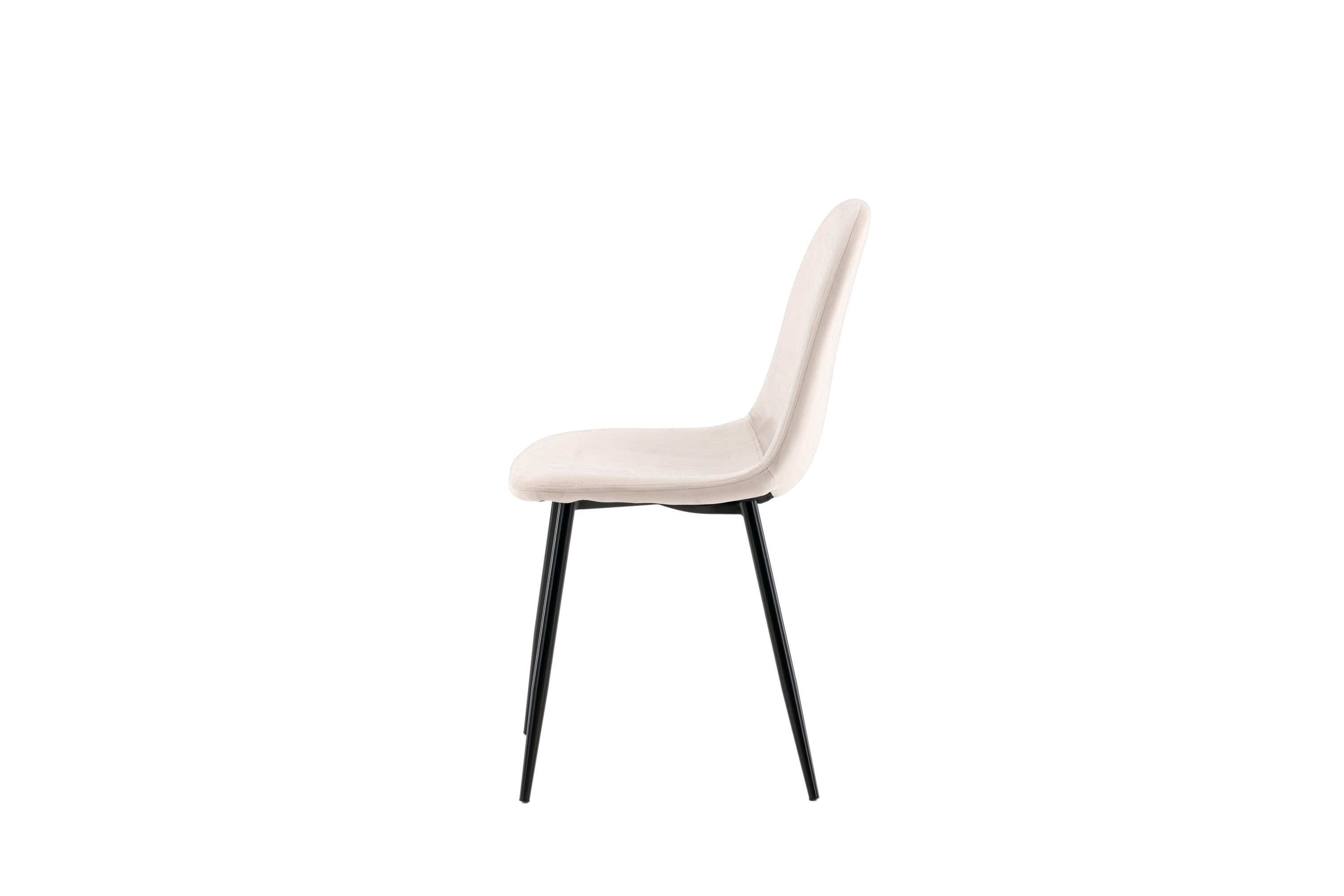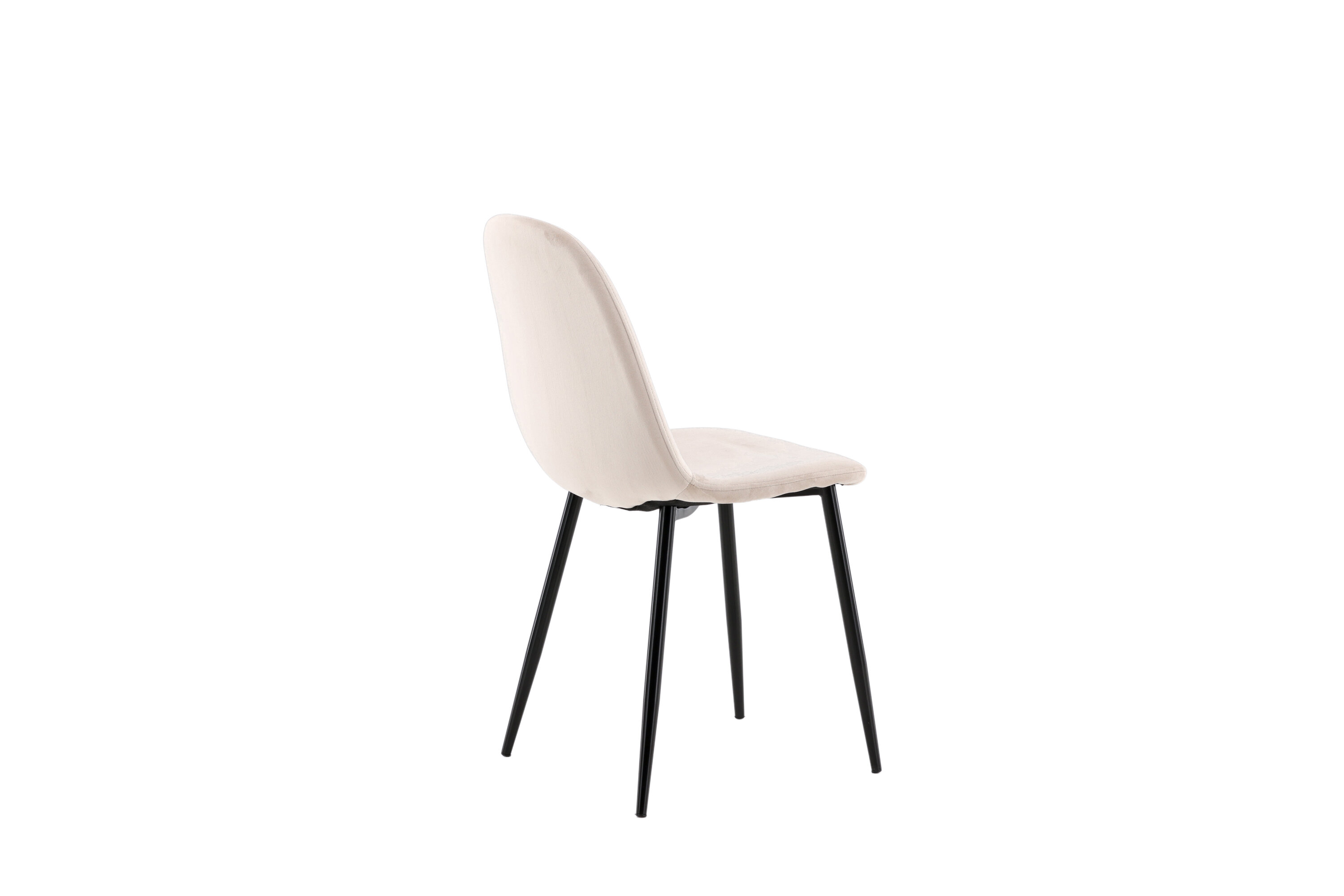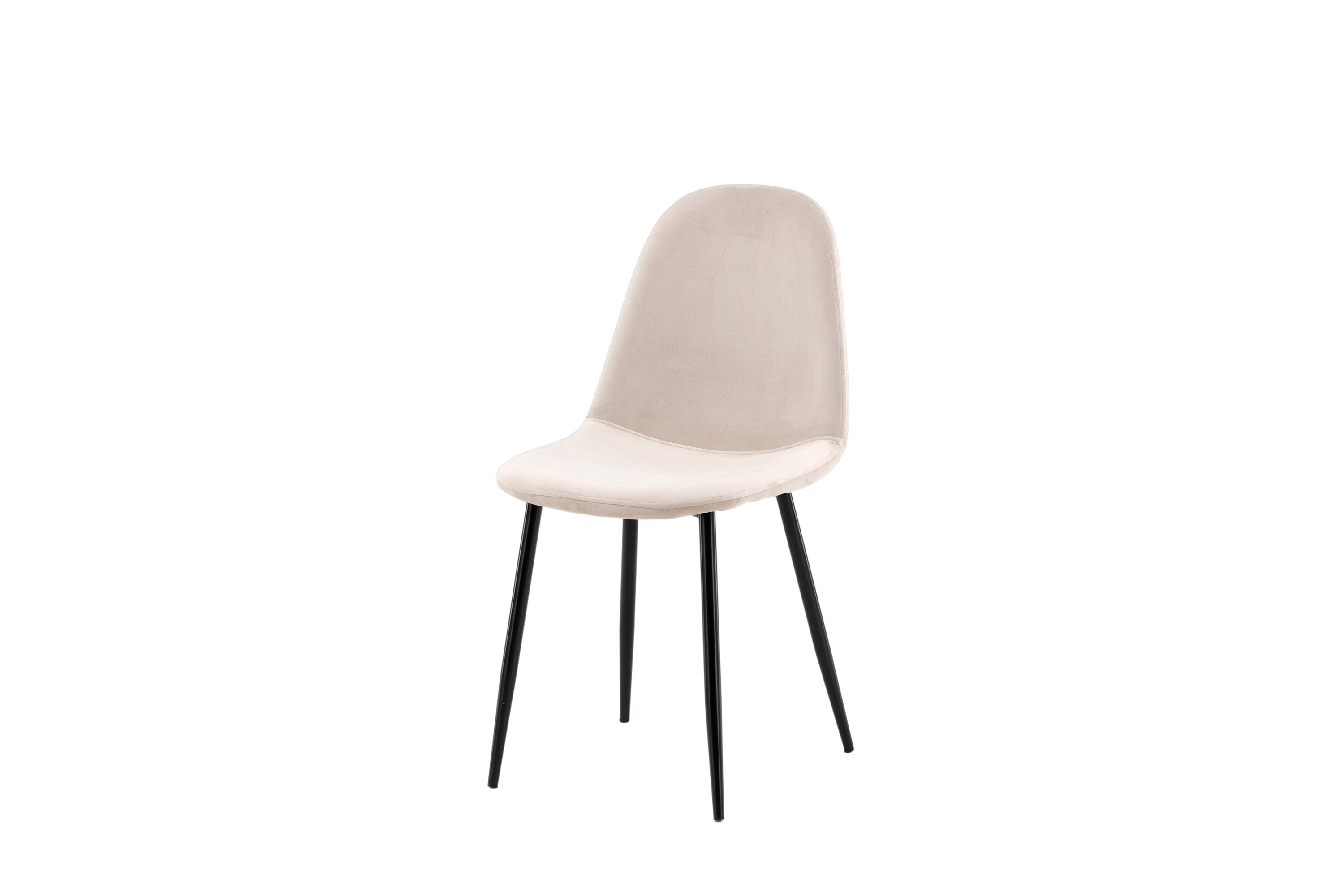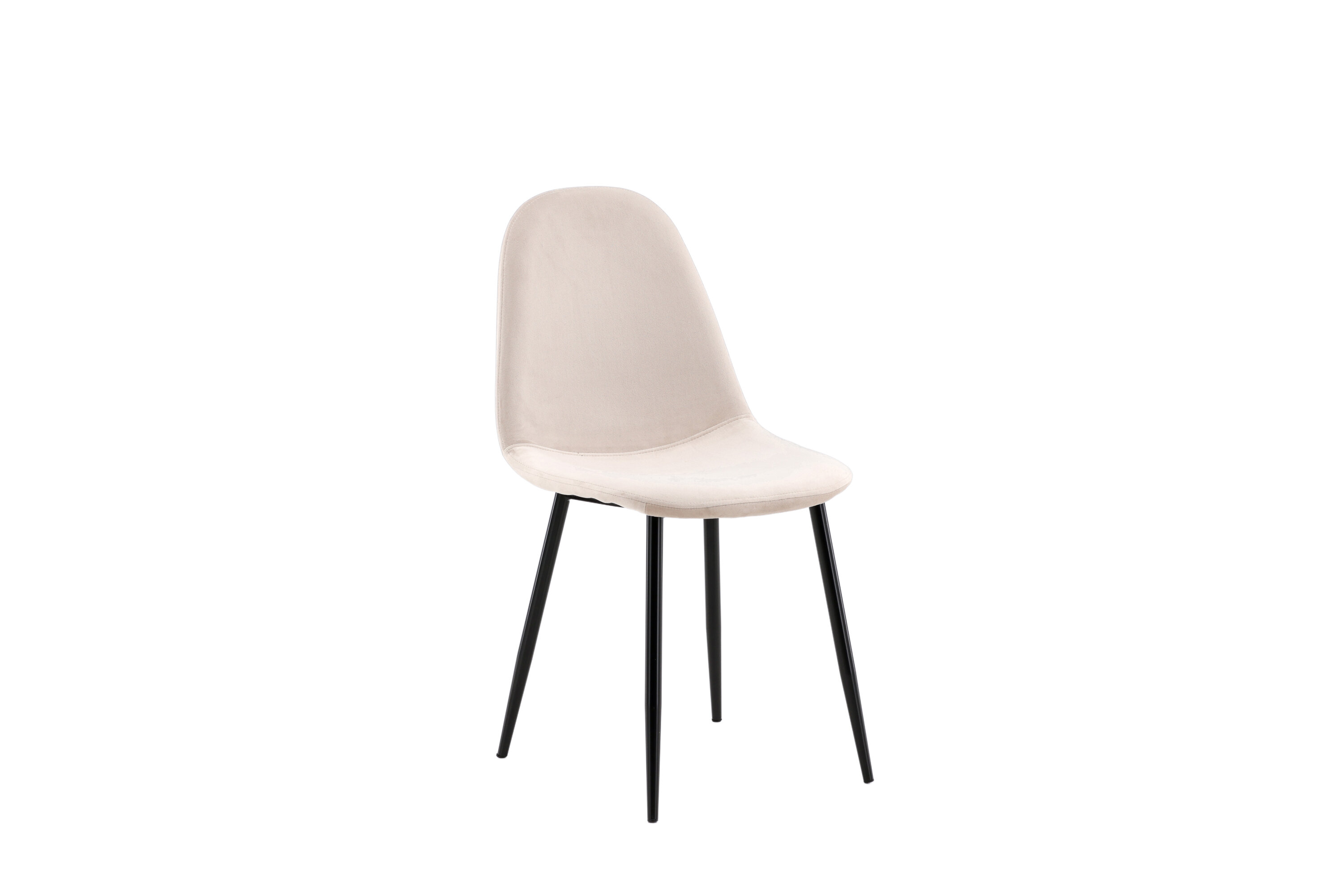 Ein moderner Stuhl aus der Serie Polar in stilvollem Beige! Dieser Esszimmerstuhl in einem komplett gekleideten Design mit einer leicht abgerundeten Rückenlehne und Sitzfläche aus Samt und Beinen aus schwarz pulverbeschichtetem Metall ist so bequem wie ein Blickfang. Möblieren Sie das Herz des Hauses einladend und angenehm und genießen Sie schöne Mahlzeiten zusammen! Leichtere Montage ist erforderlich.