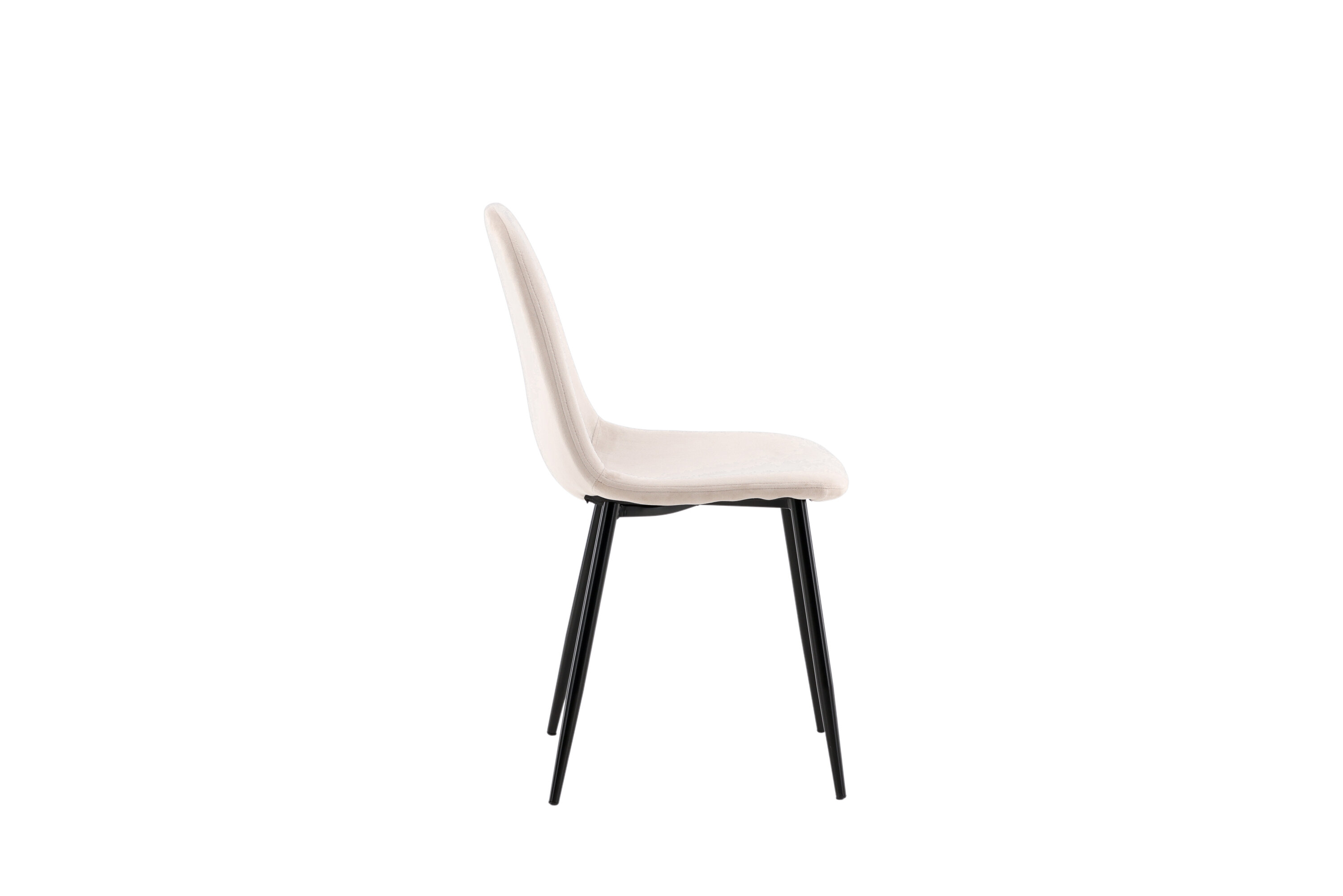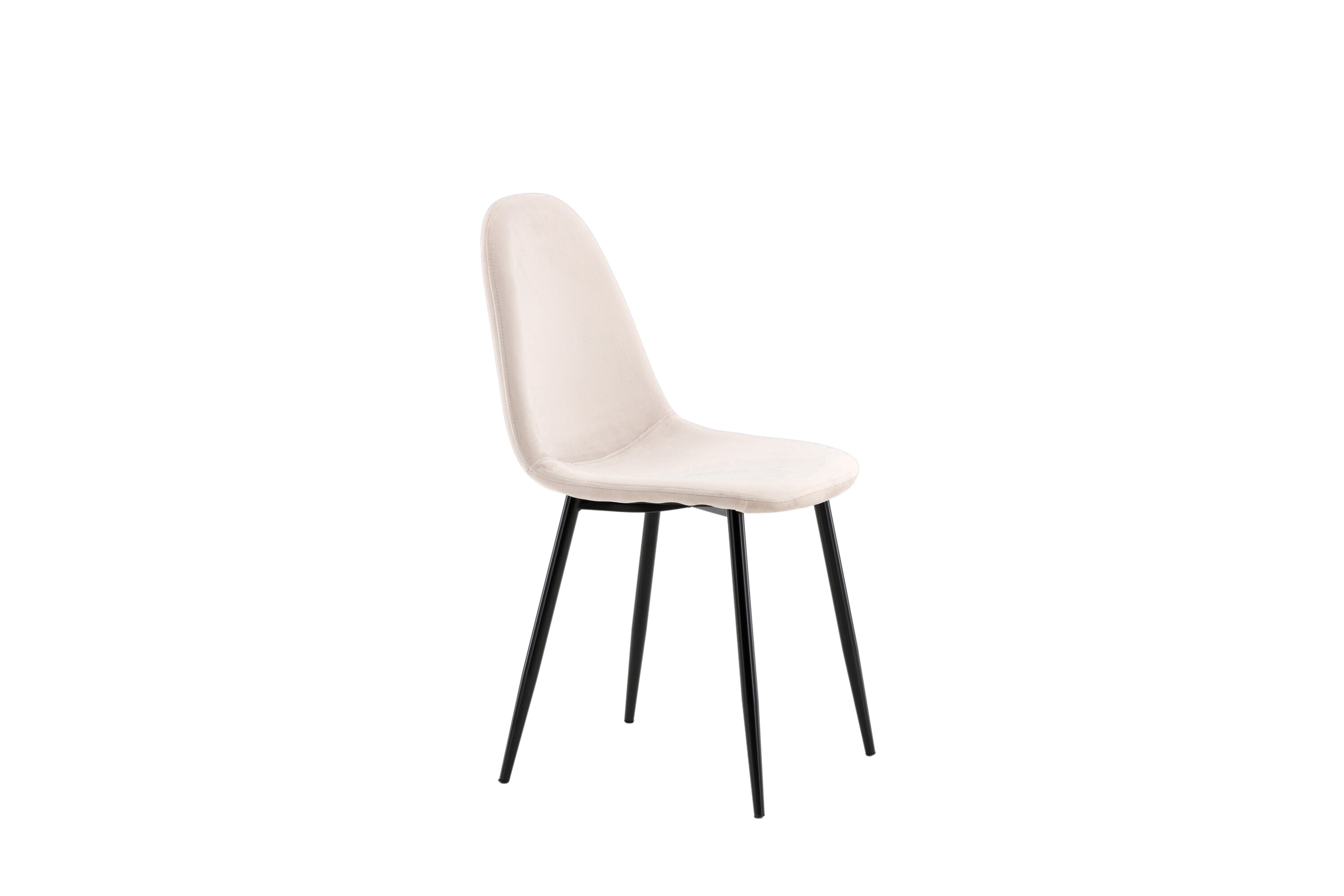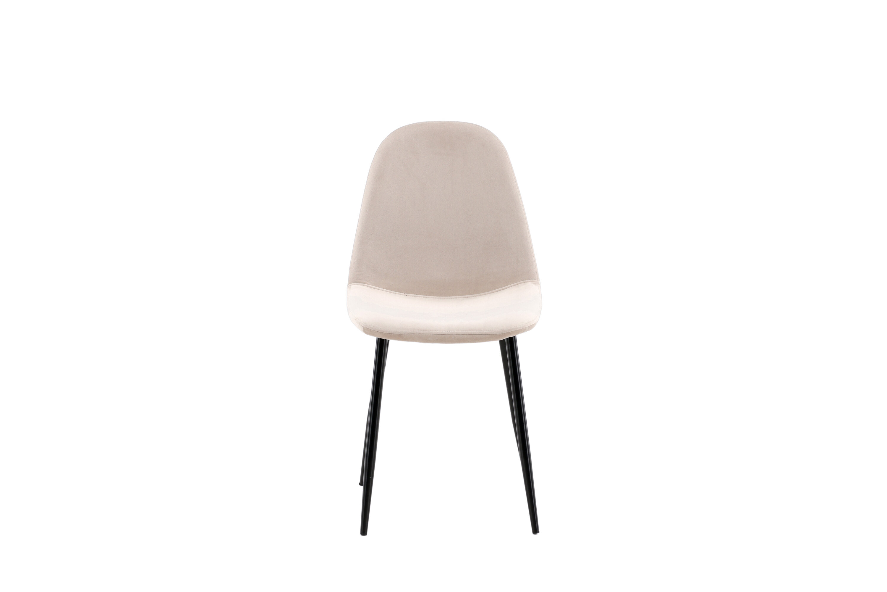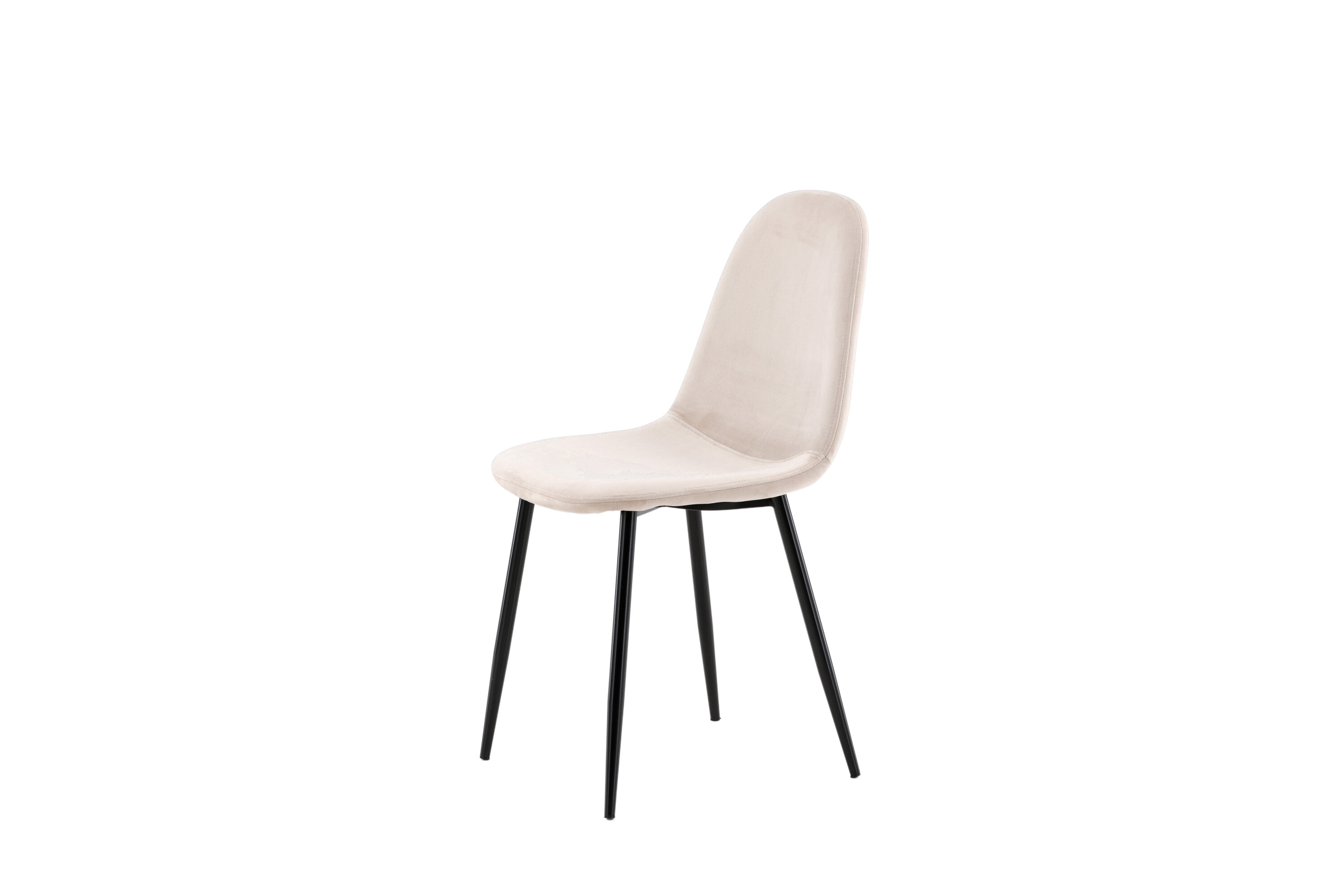 Ein moderner Stuhl aus der Serie Polar in stilvollem Beige! Dieser Esszimmerstuhl in einem komplett gekleideten Design mit einer leicht abgerundeten Rückenlehne und Sitzfläche aus Samt und Beinen aus schwarz pulverbeschichtetem Metall ist so bequem wie ein Blickfang. Möblieren Sie das Herz des Hauses einladend und angenehm und genießen Sie schöne Mahlzeiten zusammen! Leichtere Montage ist erforderlich.