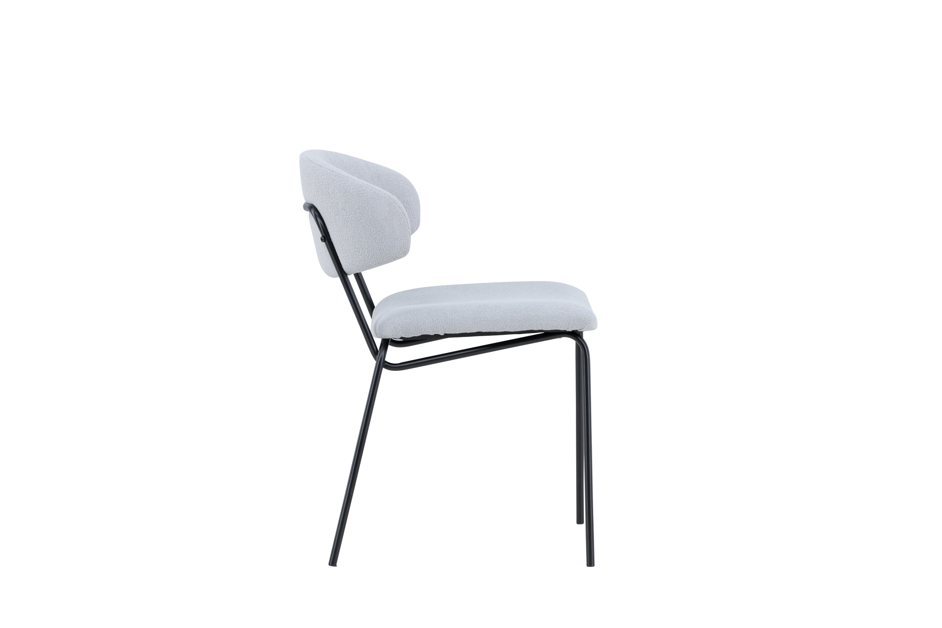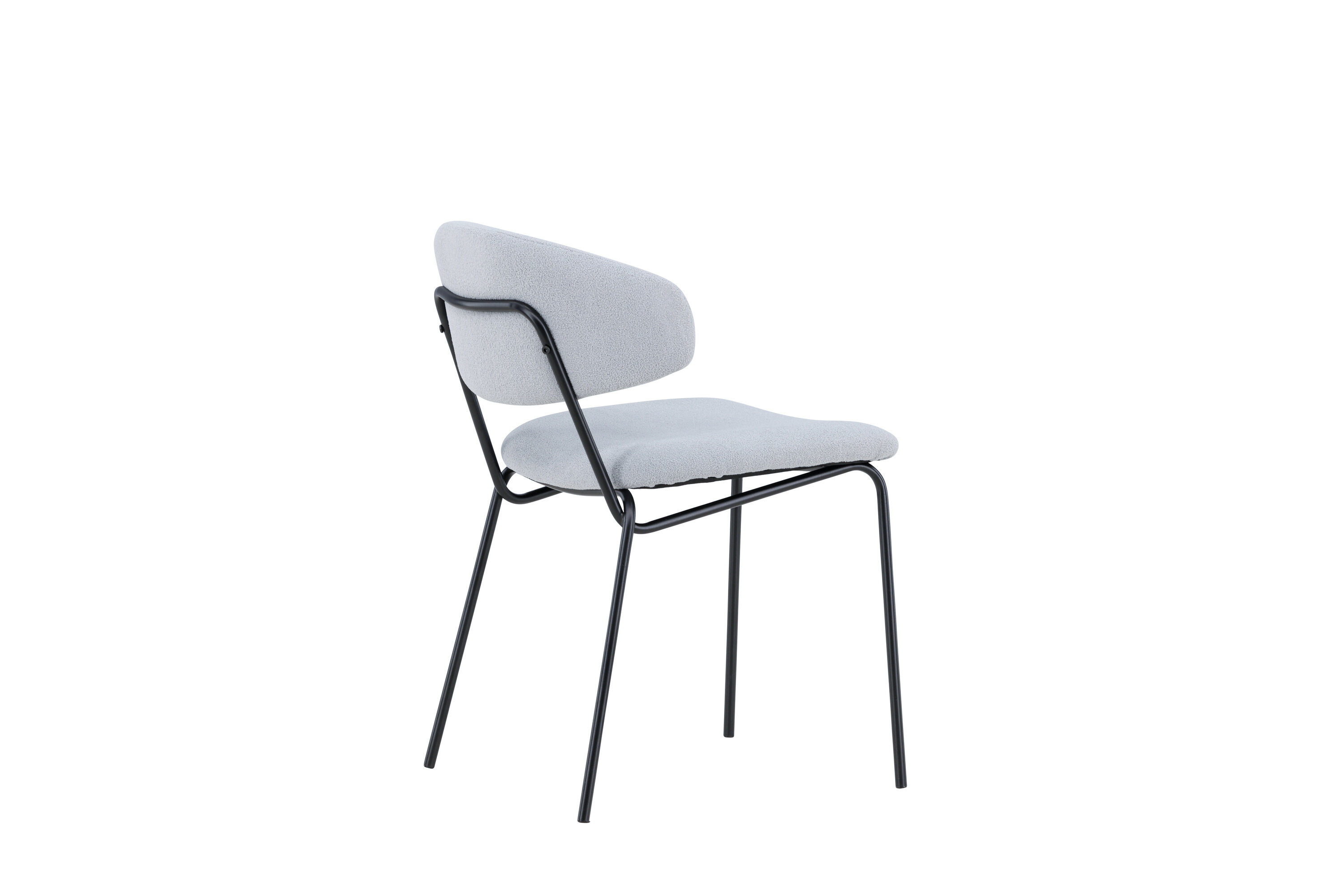 Entdecken Sie Chico - den eleganten Stuhl, der die Atmosphäre Ihres Esszimmers aufwerten wird. Der Sitz des Stuhls ist mit blauem Bouclé gepolstert und die Beine sind aus schwarzem Stahl gefertigt, was einen beeindruckenden Kontrast schafft. Chico wird in einer praktischen Packung mit zwei Stühlen geliefert.