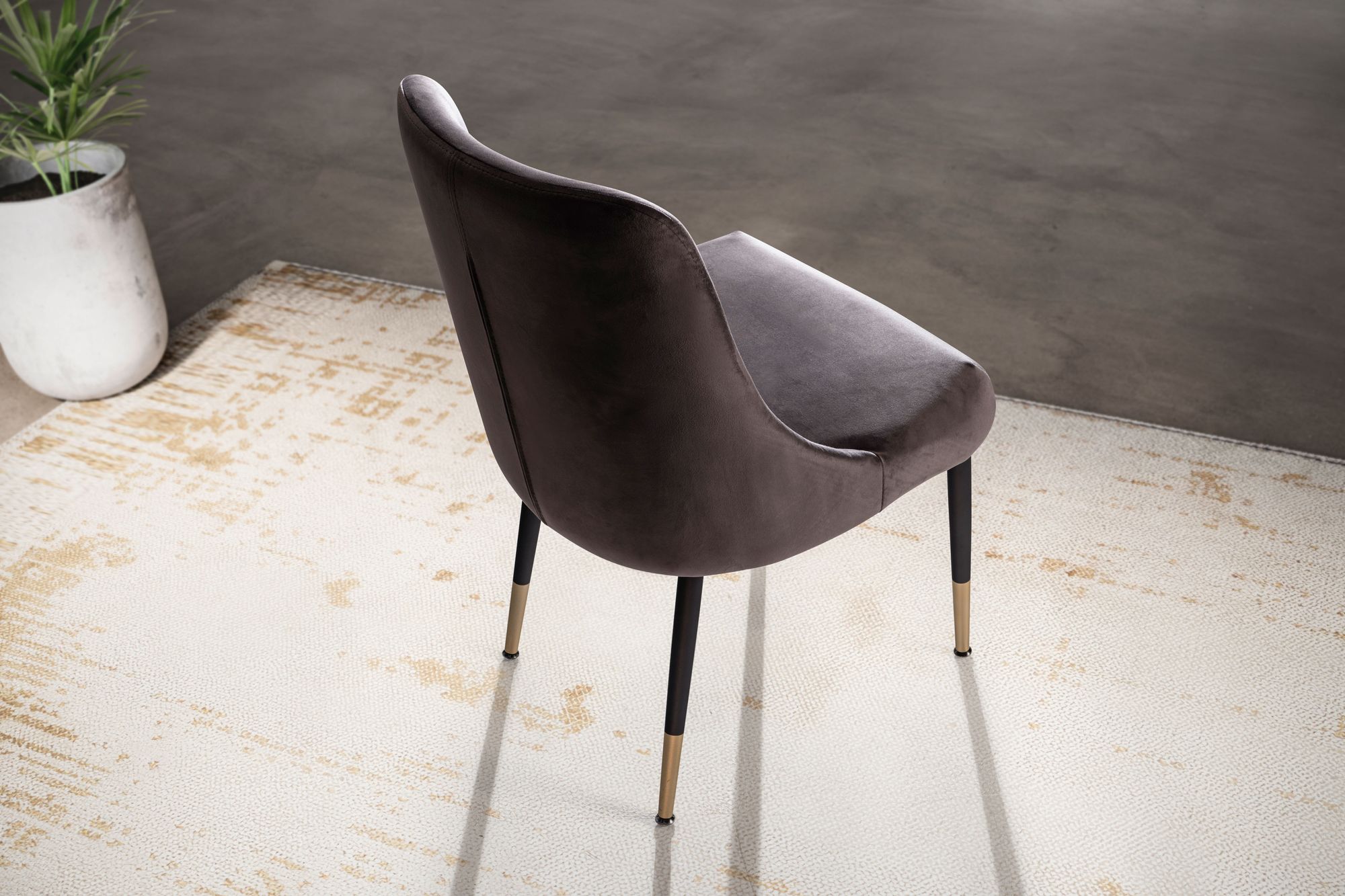 Produktinformationen "Esszimmerstuhl Samt Grau mit schwarzen Beinen | 49x56x85 cm | Moderner, gepolsterter Stuhl"