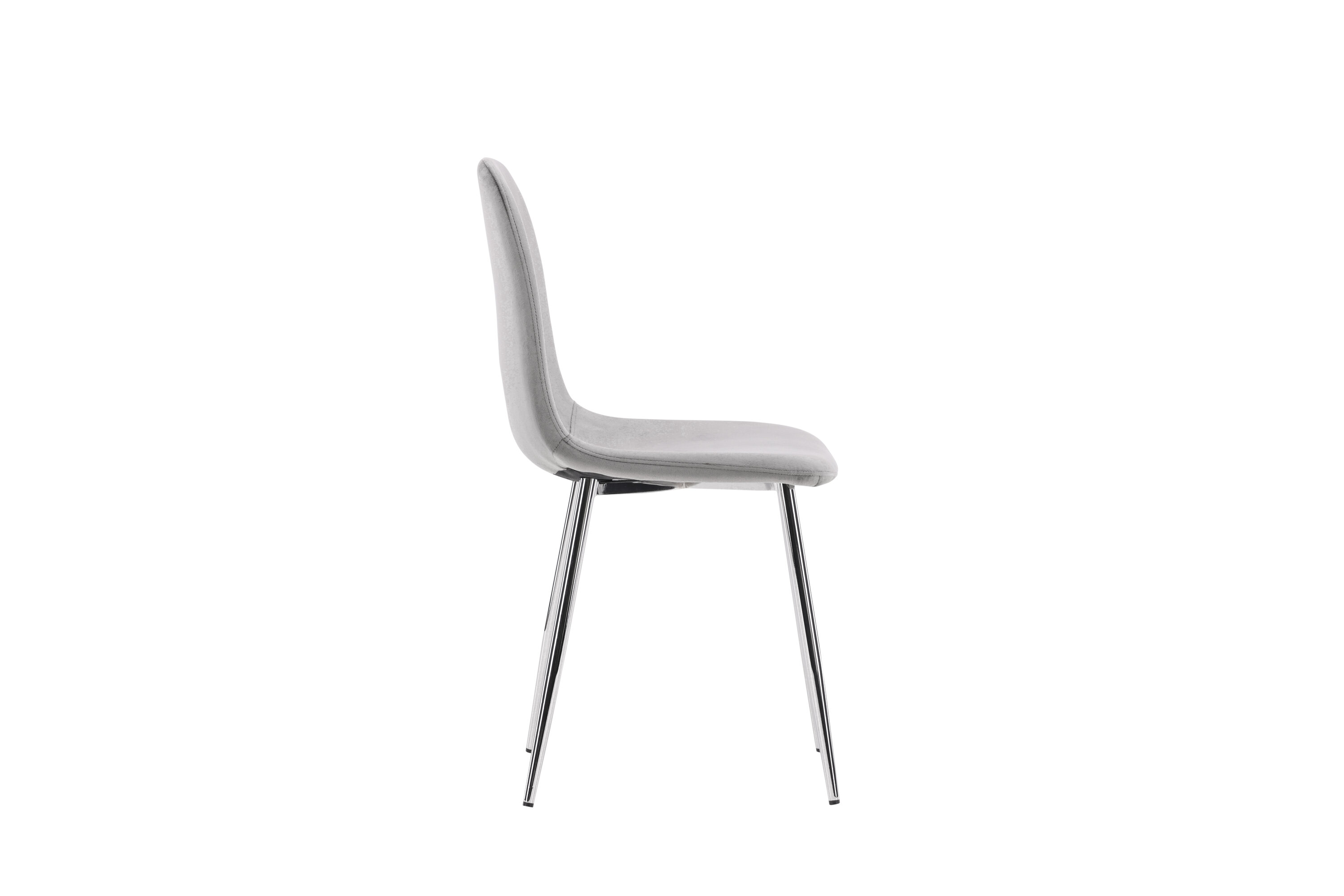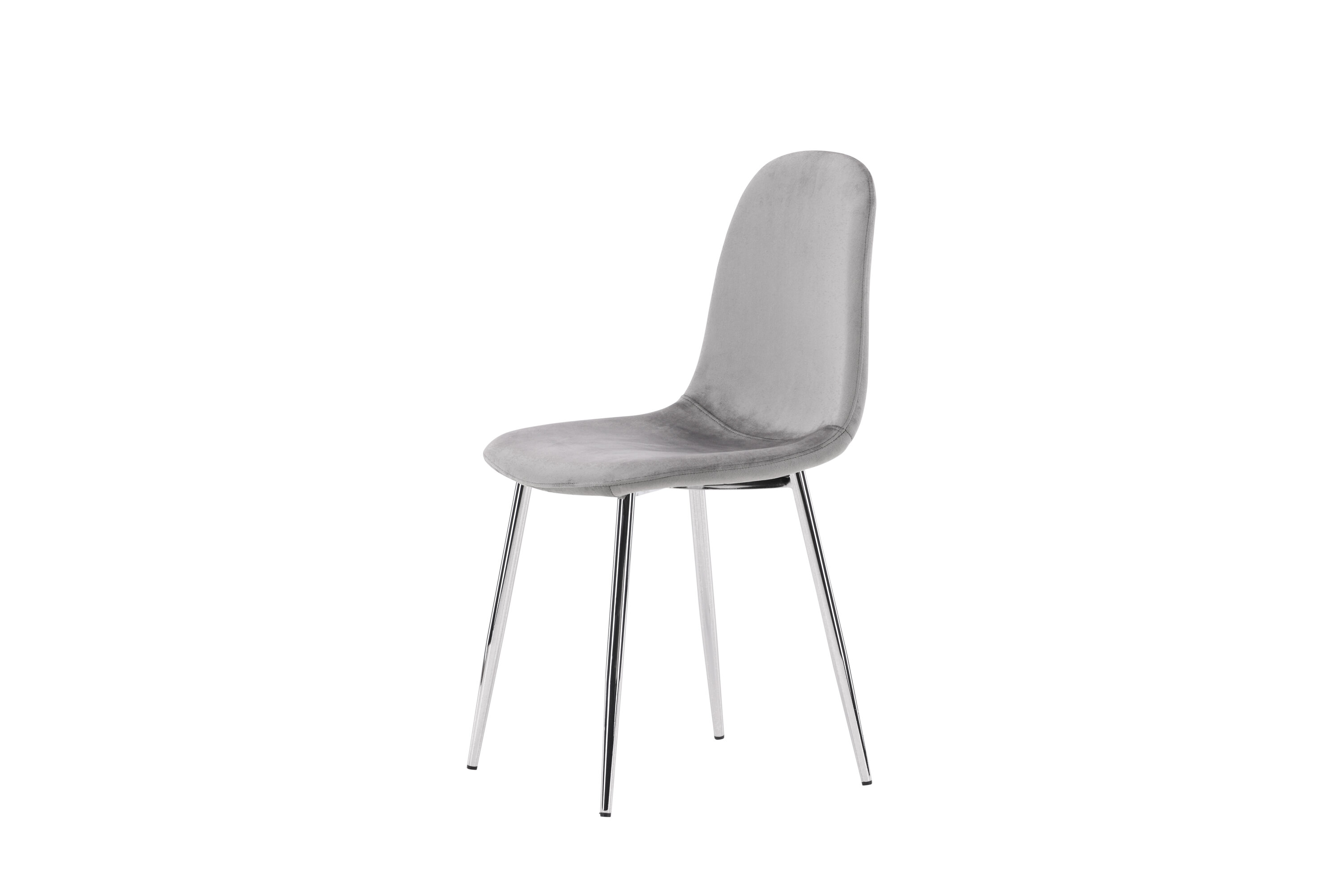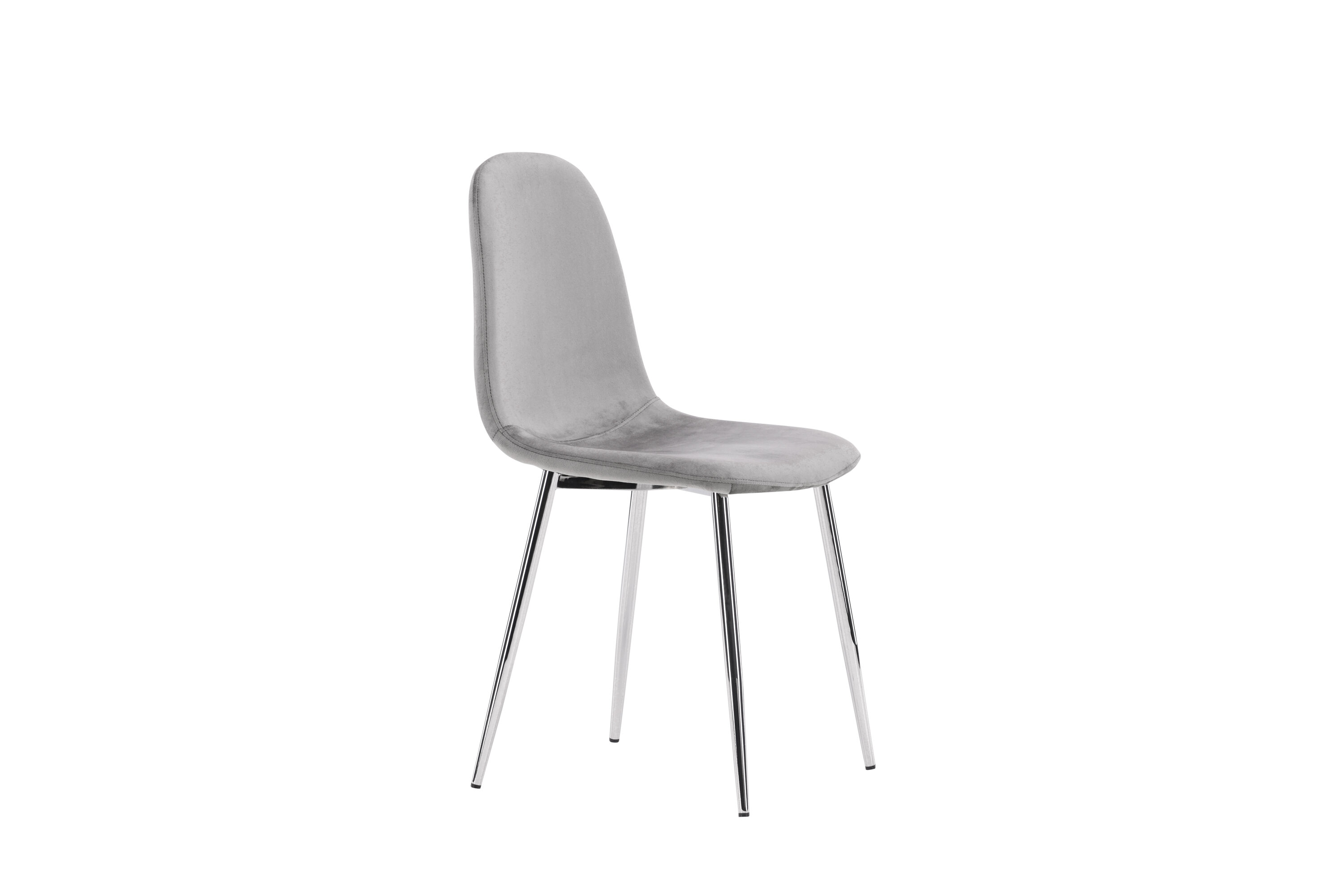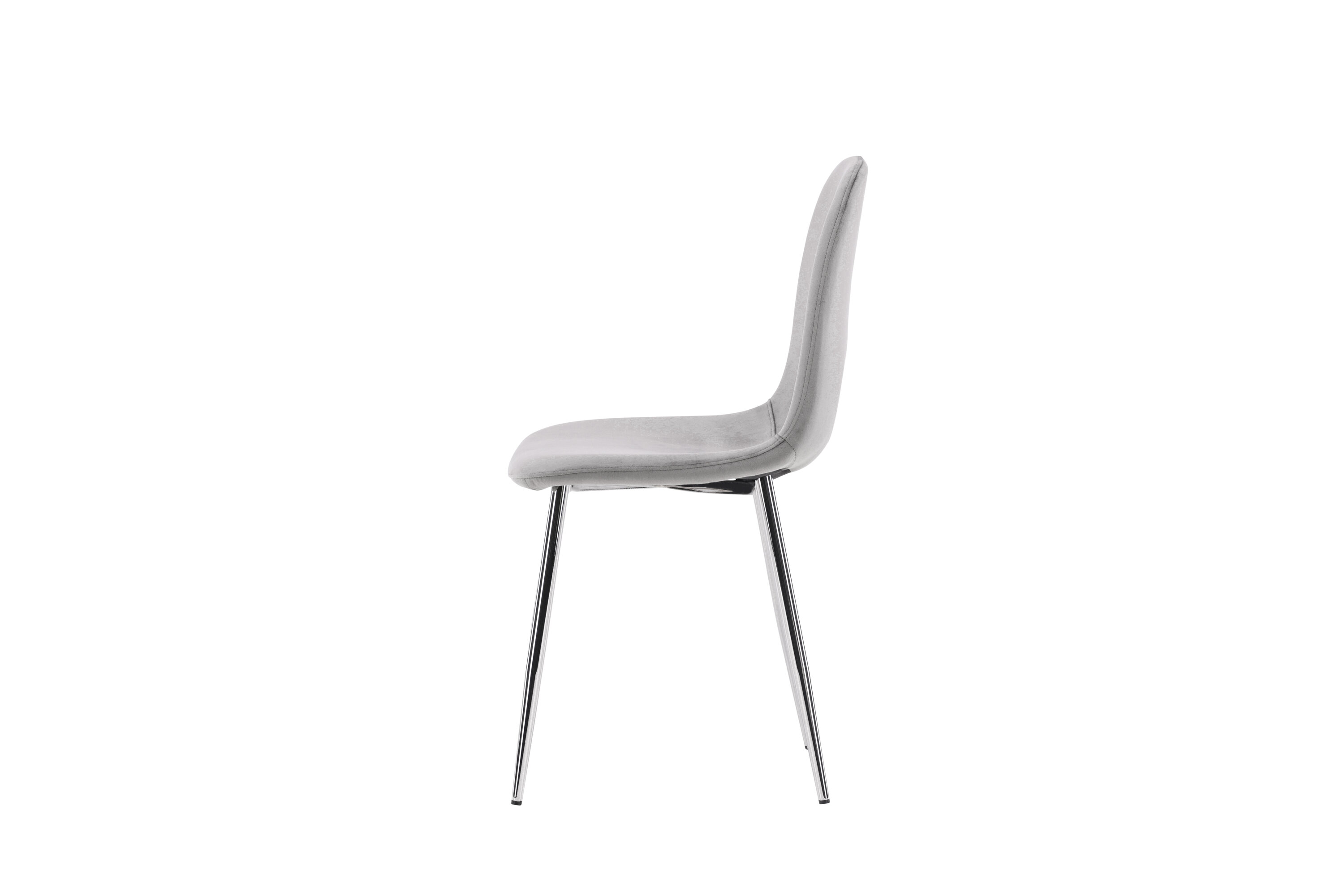 Ein moderner Traumstuhl aus der Serie Eva in zeitlosem Hellgrau! Dieser Esszimmerstuhl in einem komplett gekleideten Design mit einer leicht abgerundeten Rückenlehne und Sitzfläche aus Samt und Beinen aus hellgrauem Metall ist so bequem wie ein Blickfang. Möblieren Sie das Herz des Hauses einladend und angenehm und genießen Sie schöne Mahlzeiten zusammen!