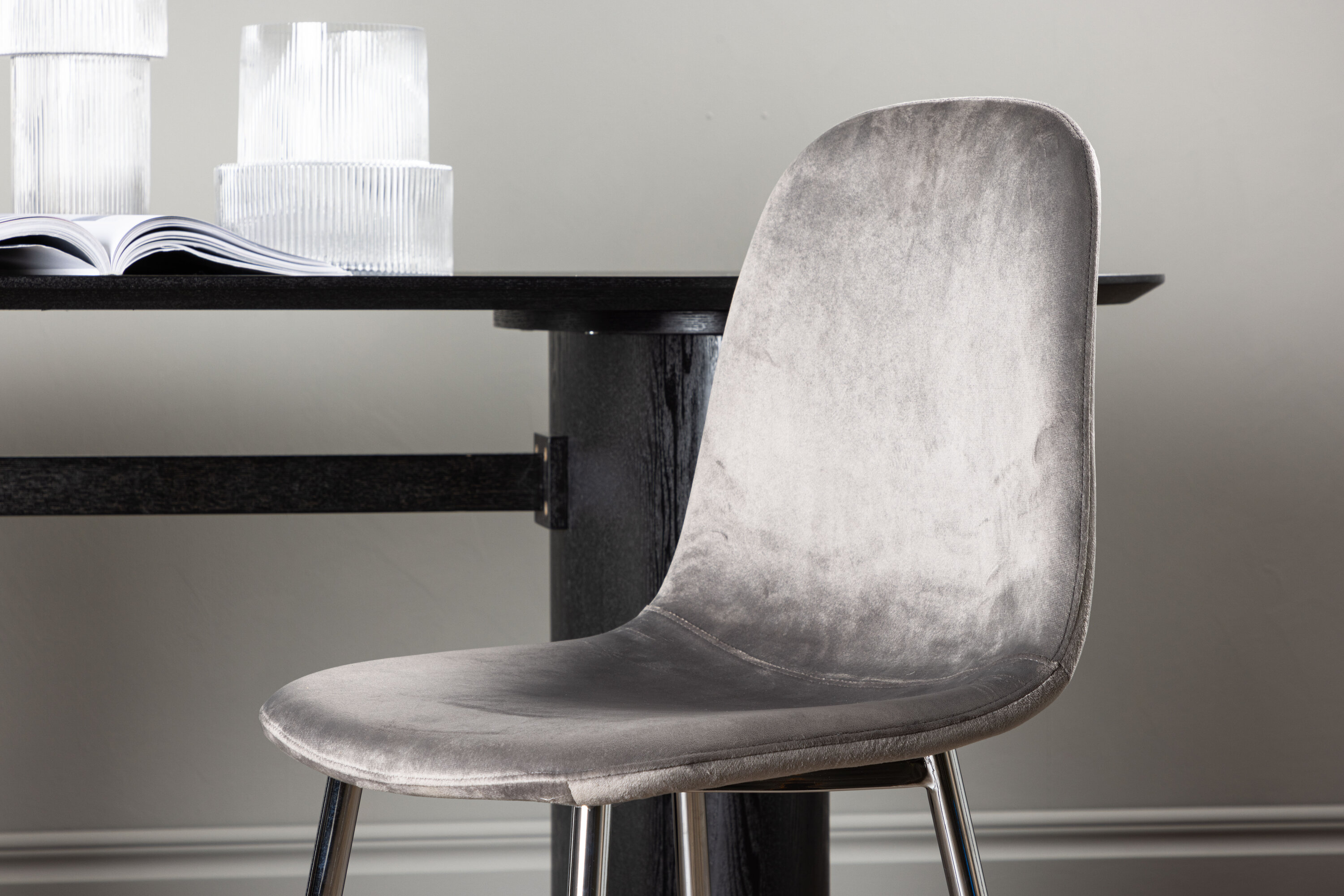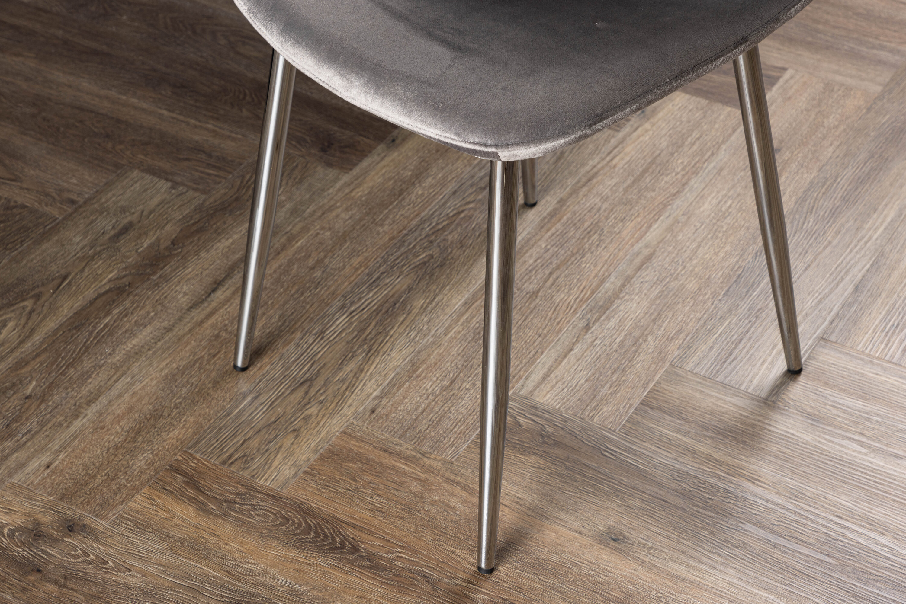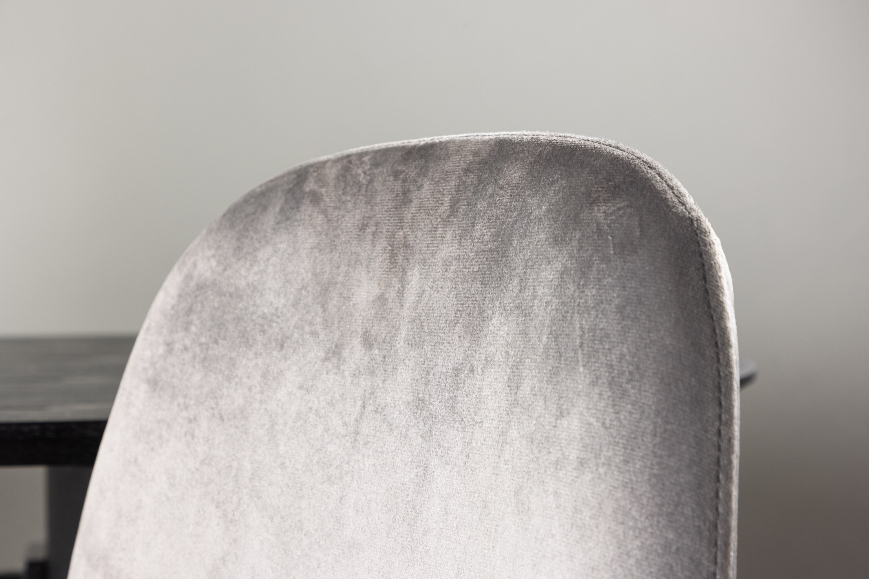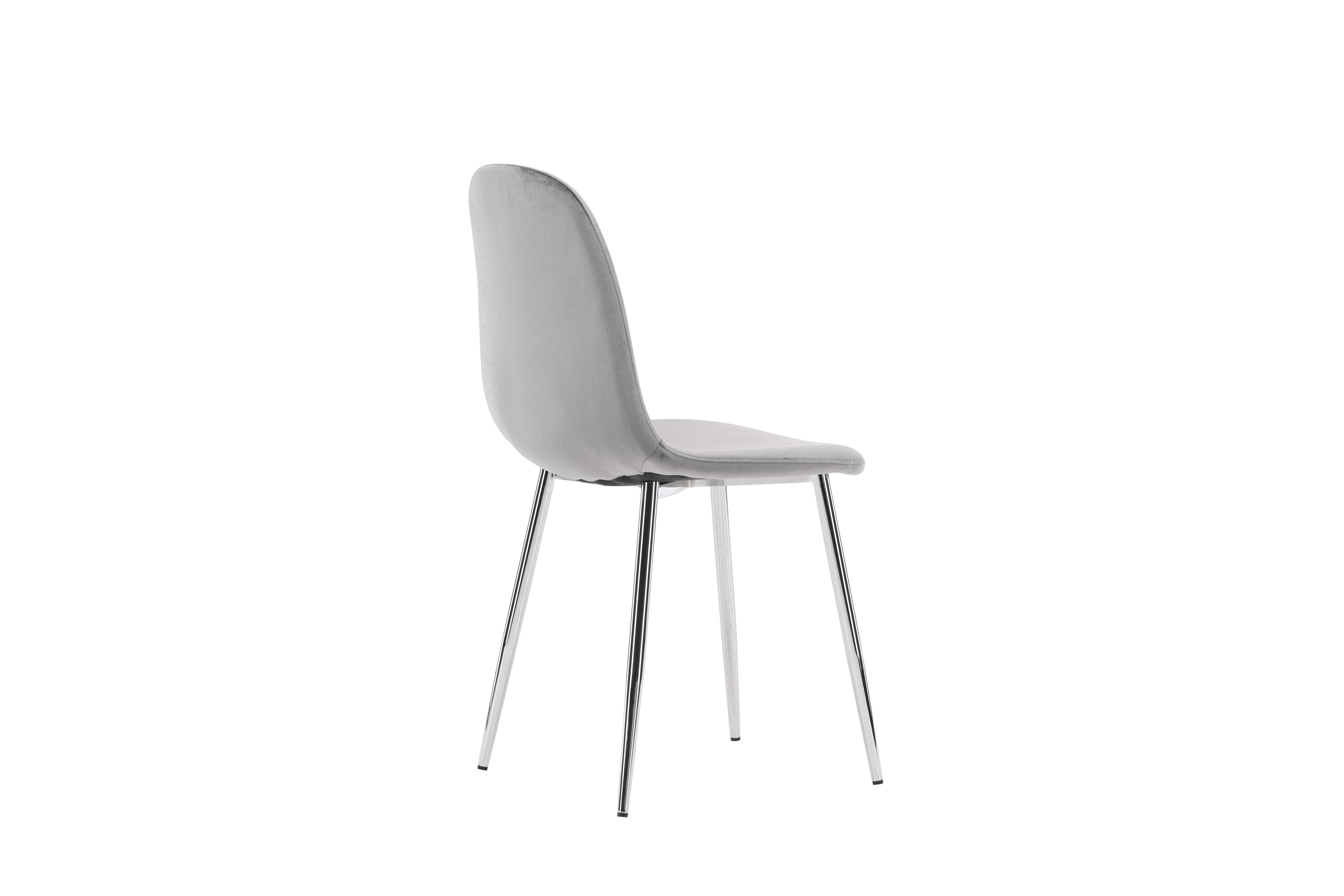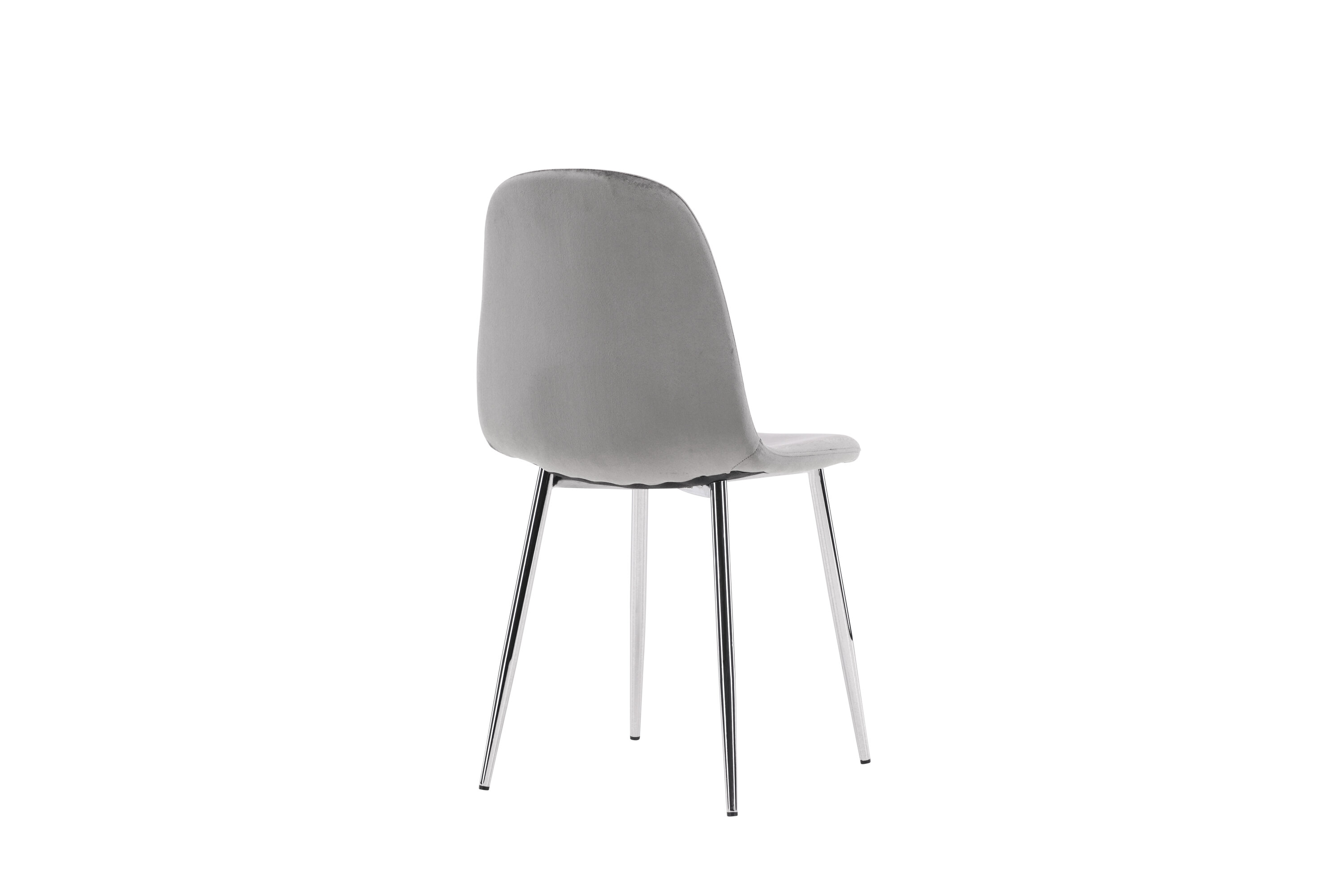 Ein moderner Traumstuhl aus der Serie Eva in zeitlosem Hellgrau! Dieser Esszimmerstuhl in einem komplett gekleideten Design mit einer leicht abgerundeten Rückenlehne und Sitzfläche aus Samt und Beinen aus hellgrauem Metall ist so bequem wie ein Blickfang. Möblieren Sie das Herz des Hauses einladend und angenehm und genießen Sie schöne Mahlzeiten zusammen!