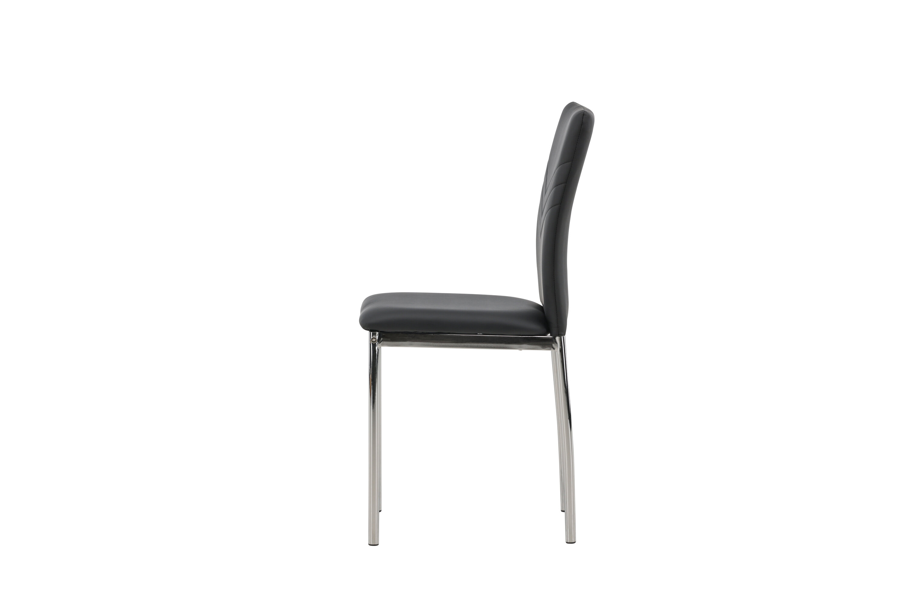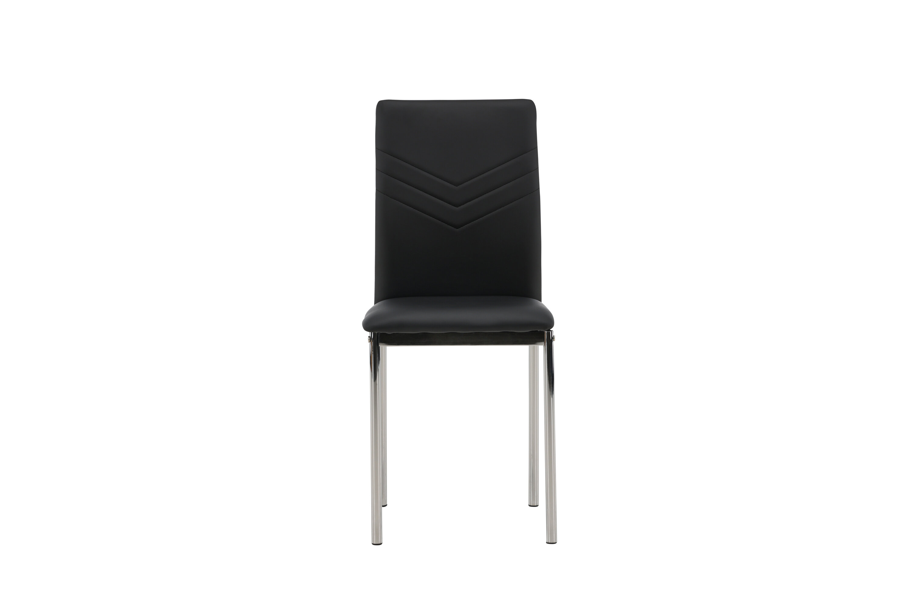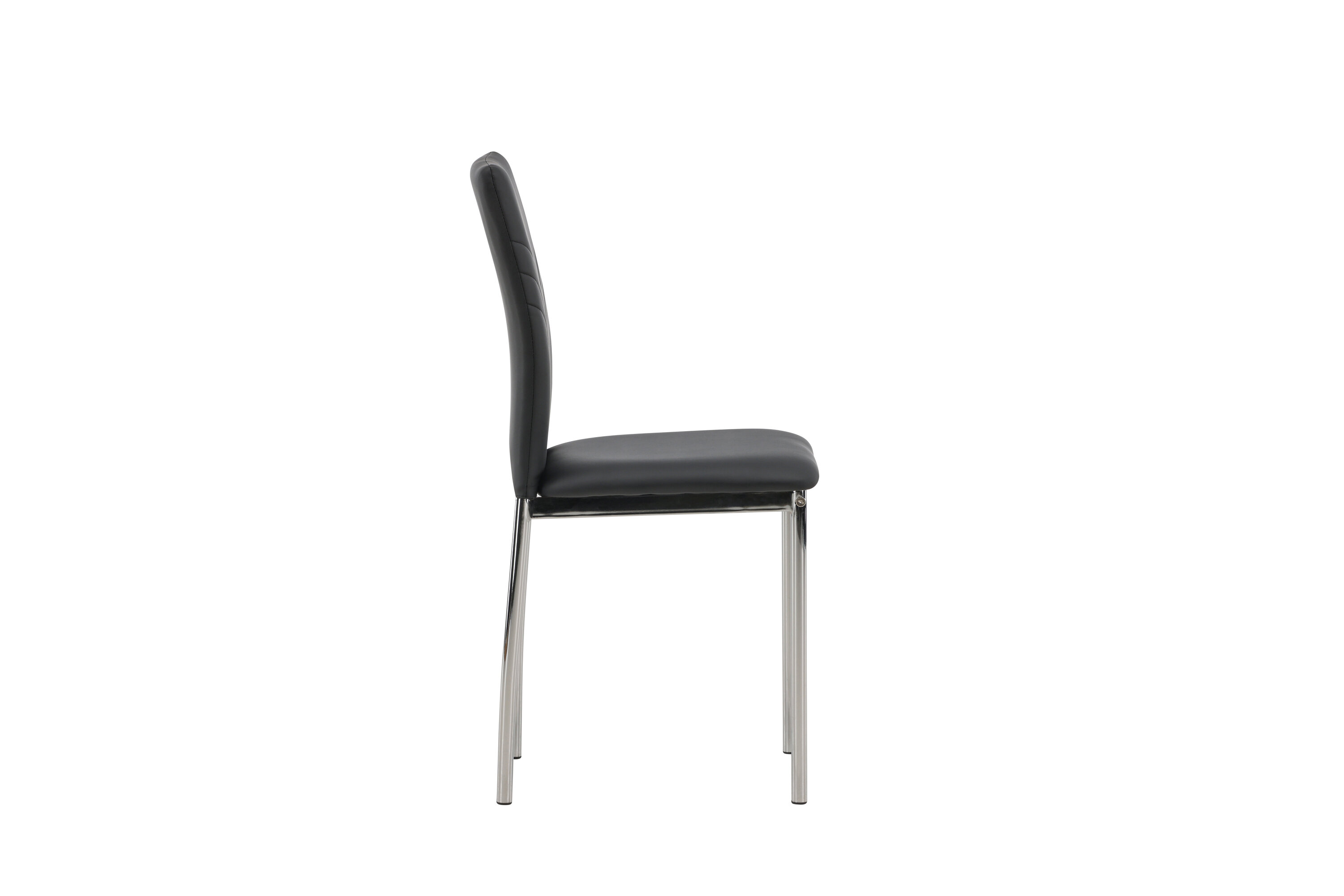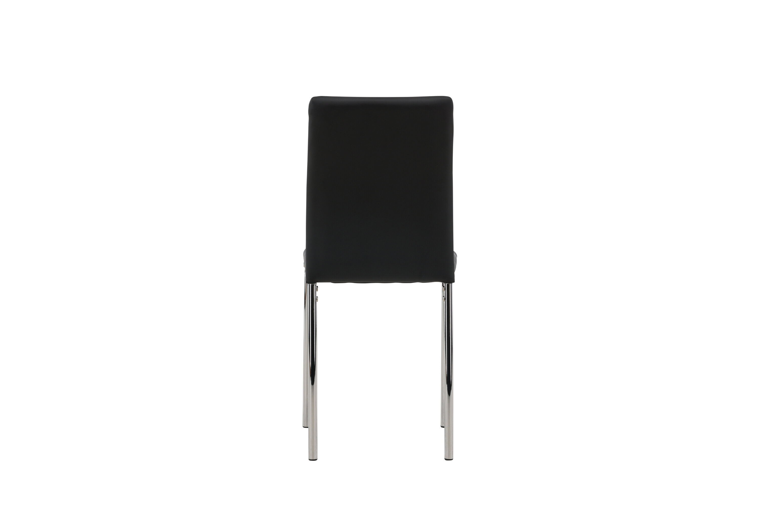 Statten Sie das Herz des Hauses mit Esszimmerstühlen aus der Lily-Serie aus! Dieser Esszimmerstuhl hat ein skandinavisches Design und gerade nordische Formen, die im Laufe der Zeit stehen. Der Sitz ist komplett in schwarzem Kunstleder gekleidet und die Rückseite hat Ziernähte, die sich in ein schönes Detail verwandeln. Die Stuhlbeine sind aus verchromtem Stahl und verleihen dem Auge einen schönen industriellen Look. Sitzen Sie bequem und genießen Sie angenehme Mahlzeiten!