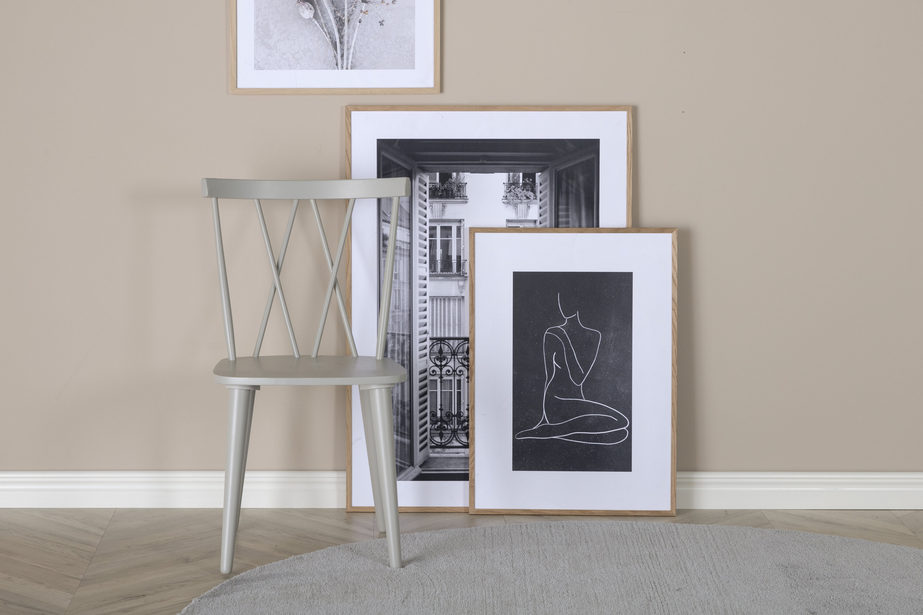 Ein charmanter Stockstuhl/Esszimmerstuhl, der klassisches Design mit modernem Stil verbindet. Dieser Esszimmerstuhl aus der Mariette-Serie hat eine dekorative Rückenlehne in angenehmer grauer Farbe aus strapazierfähigem Gummiholz. Ergänzen Sie sich mit einem leckeren Esstisch und lassen Sie die Zeit hier zum Highlight des Tages werden! Leichtere Montage ist erforderlich.