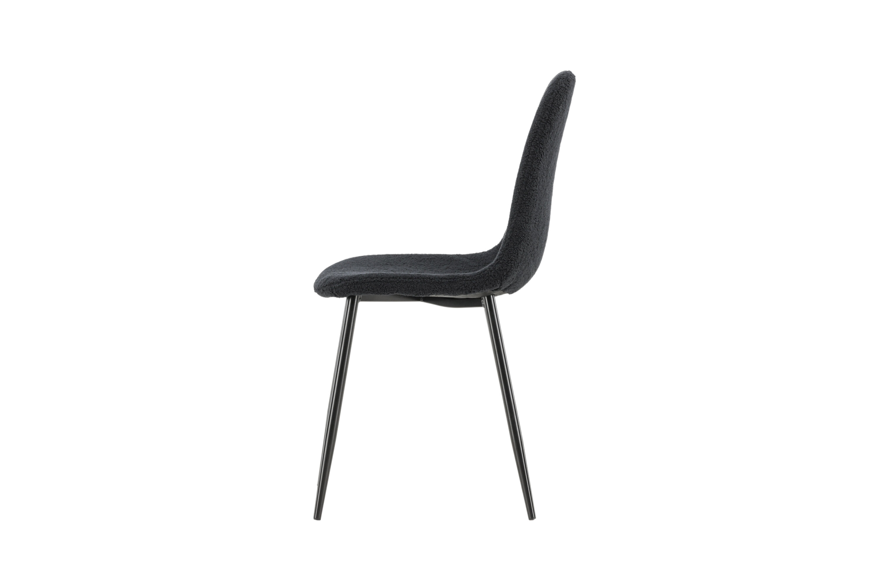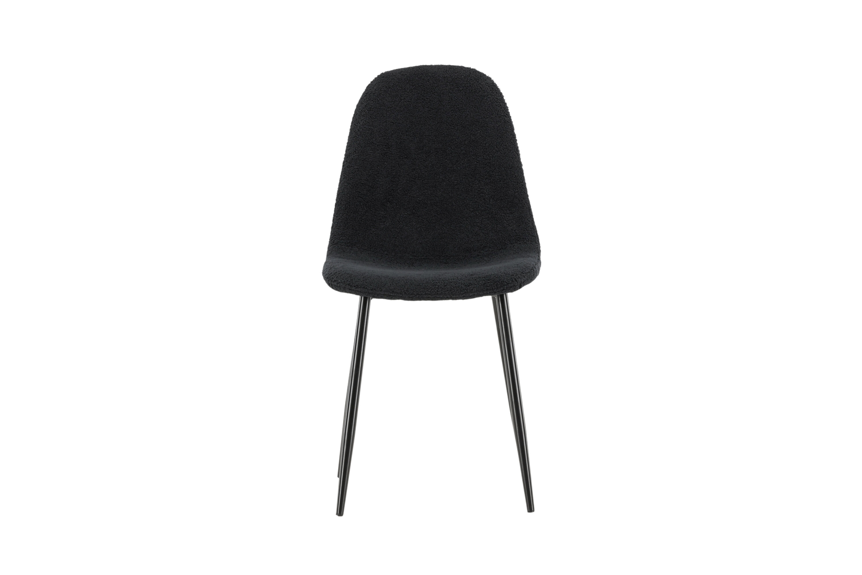 Die tiefschwarze Farbe des Stuhls und das Teddy-Polyester-Material sorgen für ein exklusives Gefühl und bieten ein komfortables Sitzerlebnis für alle Ihre Abendessen und Versammlungen. Sein modernes Design und seine klaren Linien sorgen für eine zeitlose Ästhetik, die alle Einrichtungsstile ergänzt.