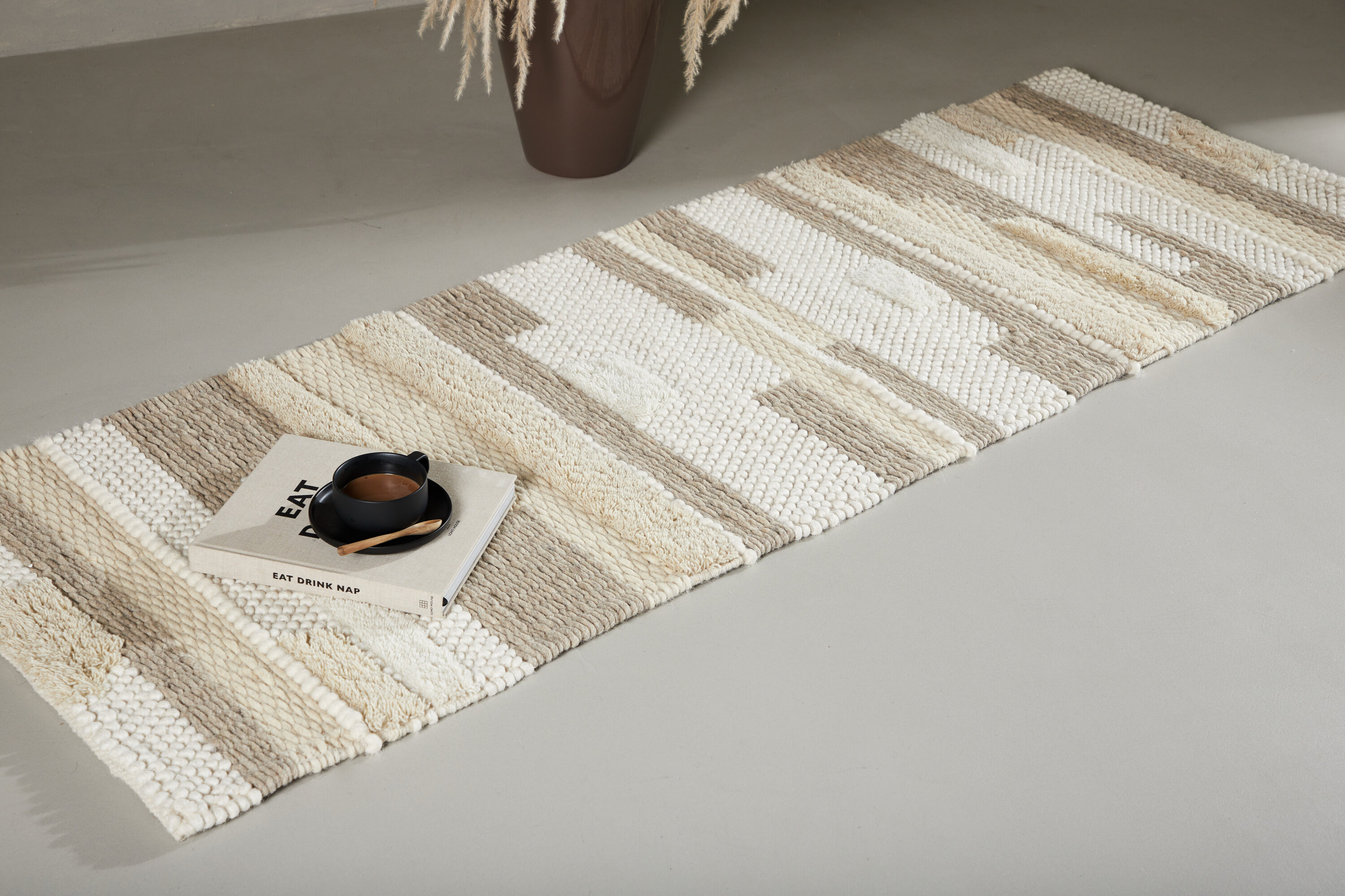Sixten ist ein Traumteppich für alle Einrichtungs-Gurus! Dieser ausschließlich dicke Wollteppich in einem schönen farbwechselnden, abstrakten Muster mit cremeweißem und beigem Farbton ist sowohl modern als auch großartig. Der Teppich ist mit verschiedenen Techniken gewebt, die eine schöne Knotenstruktur verleihen und ist so stilvoll wie bequem. Der abwechslungsreiche Pony verleiht dem Teppich und dem Raum auch eine schöne Dimension. Das Material fühlt sich luxuriös an und bringt mehrere attraktive Eigenschaften mit sich - robust, langlebig und praktisch! Dieser lange schmale Teppich kann leicht in der Halle oder im Schlafzimmer platziert werden und sorgt für eine gemütliche und gemütliche Atmosphäre! Teppichabmessungen: 200x70 cm.