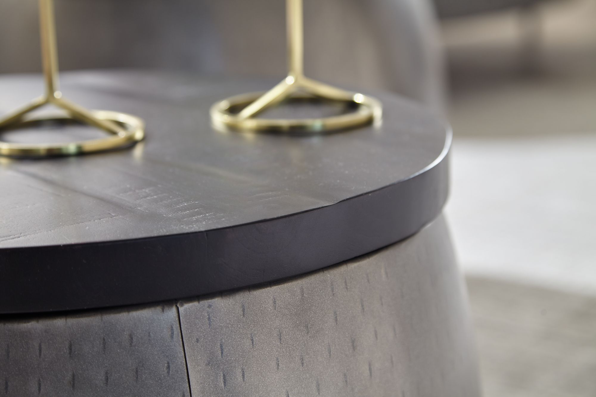Jeder Tisch verfügt über eine abnehmbare Tischplatte als Deckel, die praktischen und stilvollen Stauraum im Inneren bietet. Ideal, um Zubehör ordentlich zu verstauen und Platz zu sparen.
