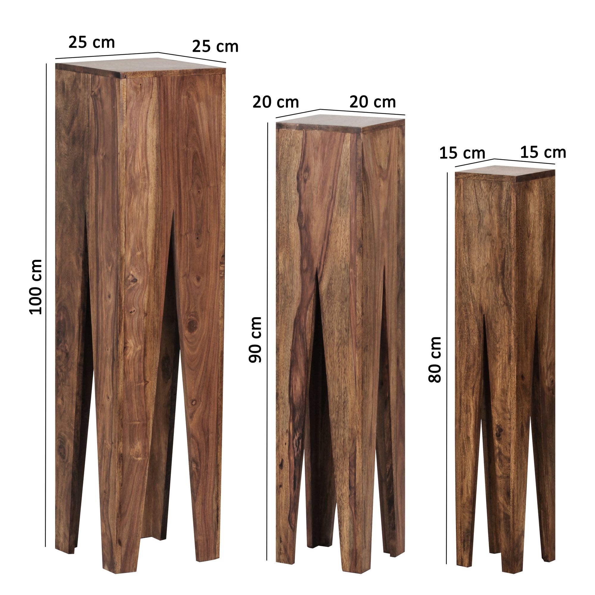 Produktinformationen "3er Set Beistelltische Sheesham Massivholz Braun | 15-25x80-100x15-25 cm | Modernes quadratisches Design"