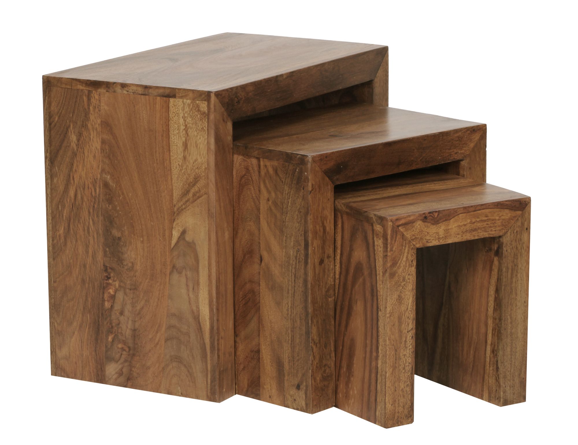 3er Set Satztisch Massiv-Holz Sheesham | Dunkelbraun | Verschiedene Abmessungen