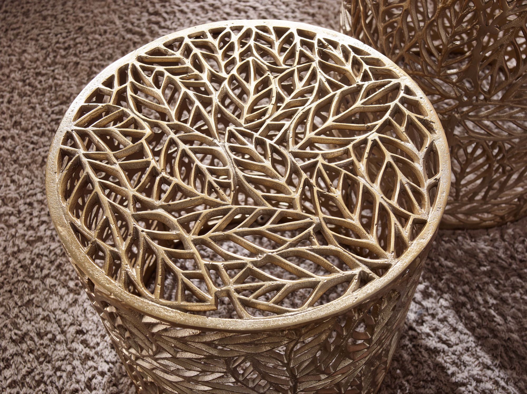 Beistelltisch 2er Set Aluminium Gold | Blumenmuster | 41x41x42 cm & 36x36x38 cm