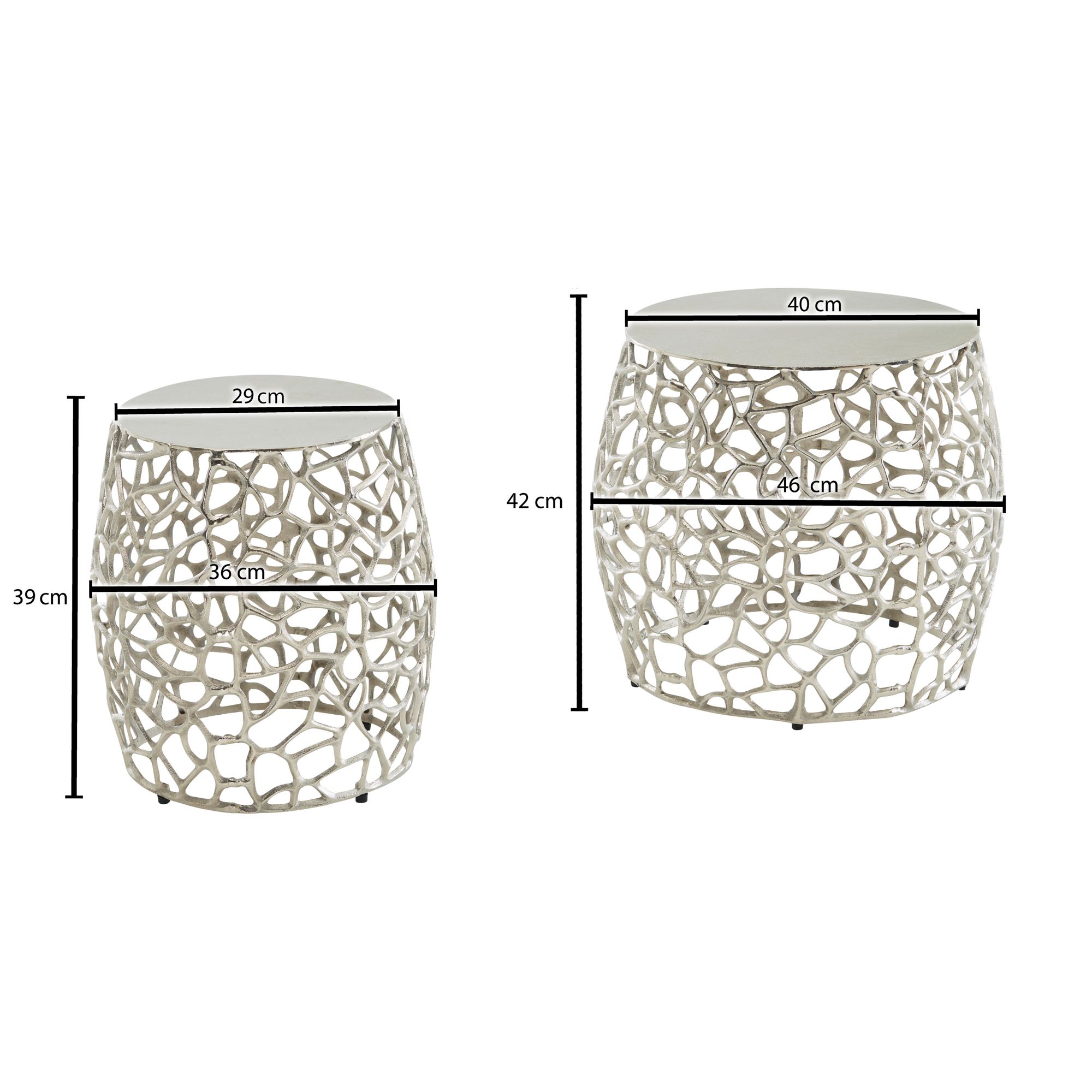 Produktinformationen "Beistelltisch 2er Set Aluminium Silber | Modernes Design mit Aststruktur | Maße 46x46x42 cm & 36x36x39 cm"