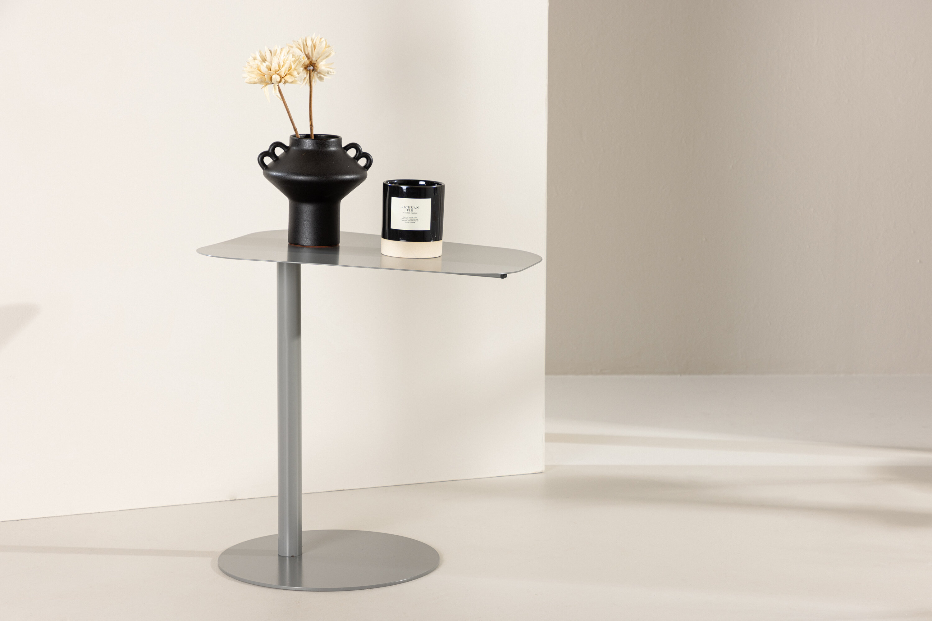 Bringen Sie Ihre Innenarchitektur auf die nächste Stufe mit dem stilvollen grauen Beistelltisch San Jose! San Jose ist vom skandinavischen Design inspiriert und kombiniert das Beste aus minimalistischer Ästhetik mit einer eleganten grauen Stahlbasis. Die runde Basis bietet ein solides Fundament, während die unregelmäßig ovale Tischplatte einen modernen Touch verleiht, der beeindruckt.