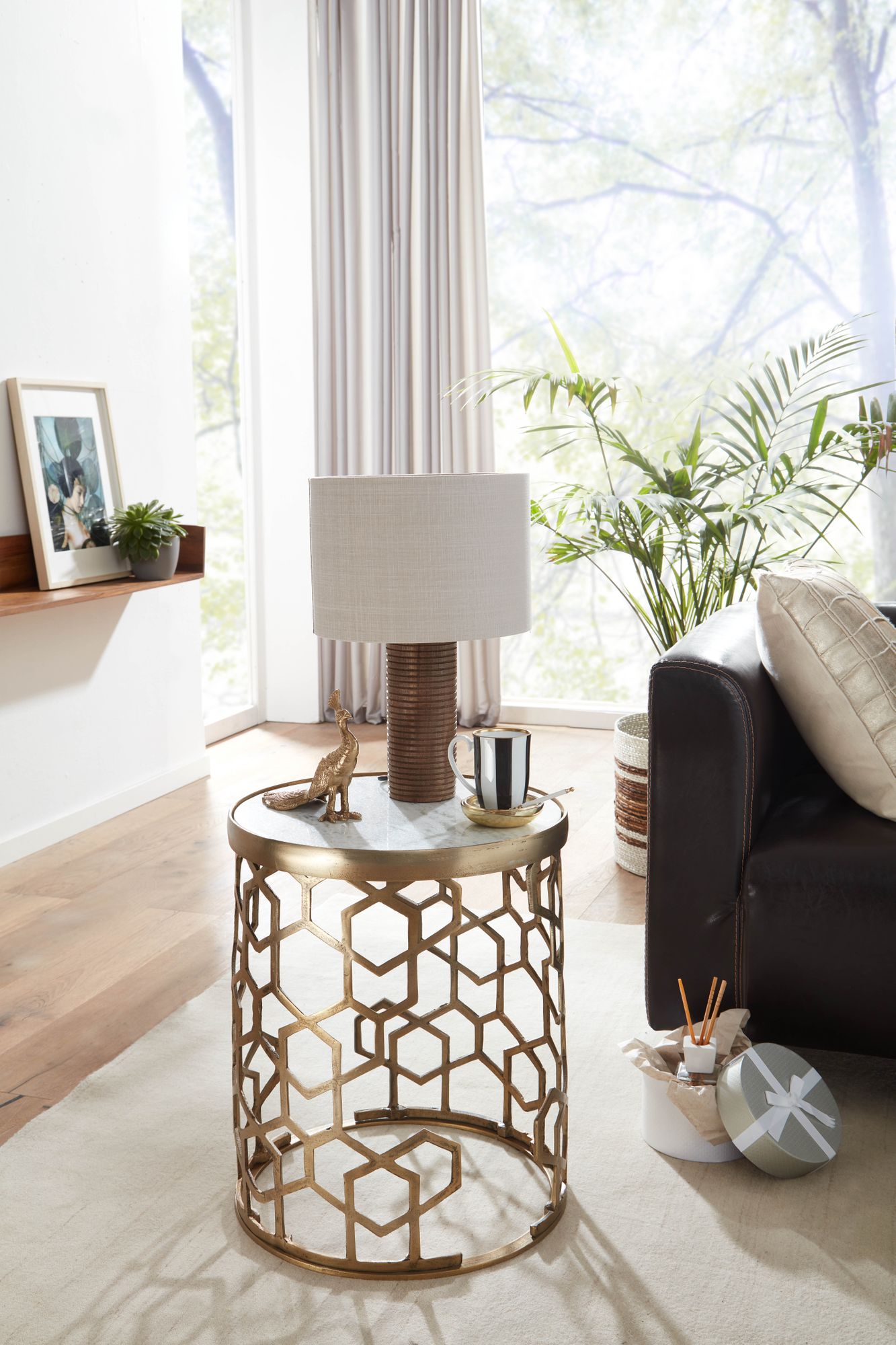 Beistelltisch Weißer Marmor & Goldenes Metall | 46x46x55 cm | Moderner runder extravaganter Couchtisch