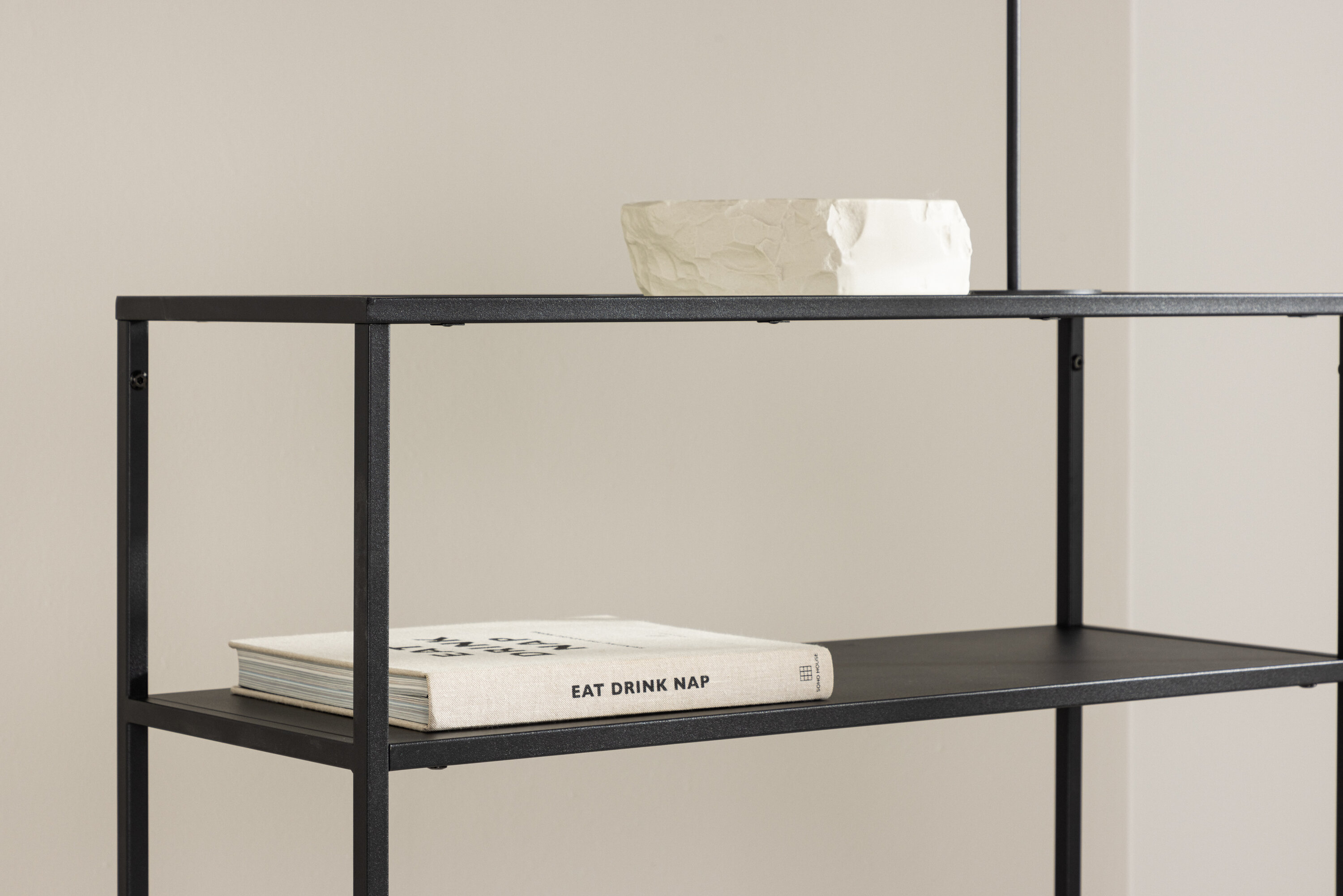 Unser Bogóta kombiniert klare Linien mit schwarzem Stahl und Glas und verleiht deiner Unterkunft einen subtilen Hauch von skandinavischem Stil. Es dient auch mehreren Zwecken, wenn die Vorstellungskraft es zulässt. Ob im Wohn- oder Schlafzimmer, Bogóta bietet zusätzliche Fläche für Ihre Lieblingsgegenstände und Ornamente. Mit einem praktischen Regal aus dem gleichen Stahlmaterial wie der Rahmen erhalten Sie zusätzlich Stauraum und Ausstellungsfläche.