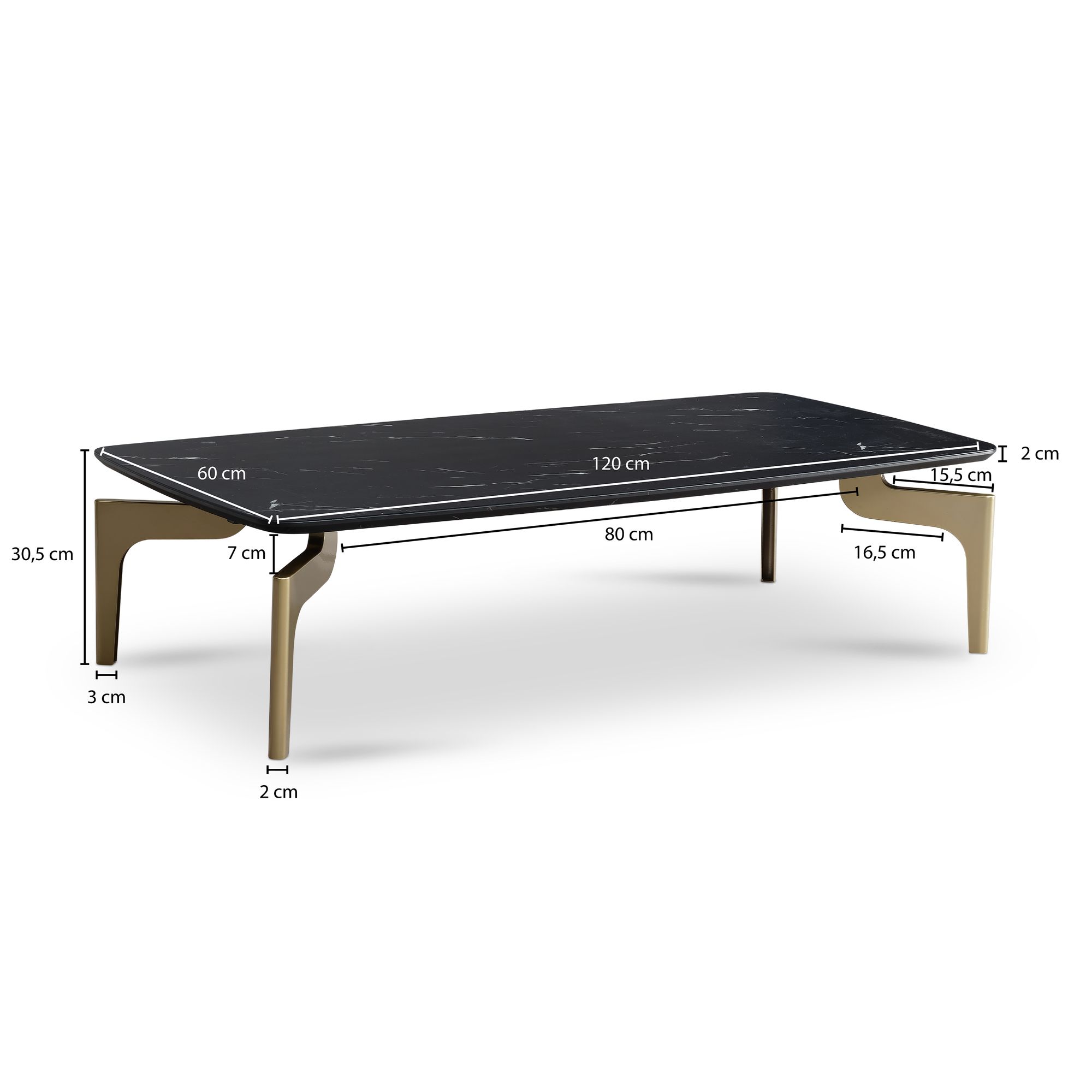 Produktinformationen "Couchtisch 120x60x30,5 cm | Hochglanz Marmor Optik Schwarz MDF | Metall-Gestell Gold"