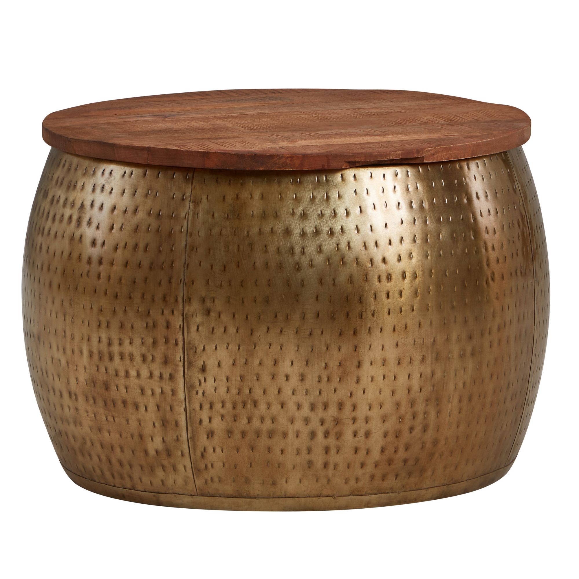 Couchtisch Mango Massivholz und Metall Gold | Braun & Gold | 60x60x40 cm