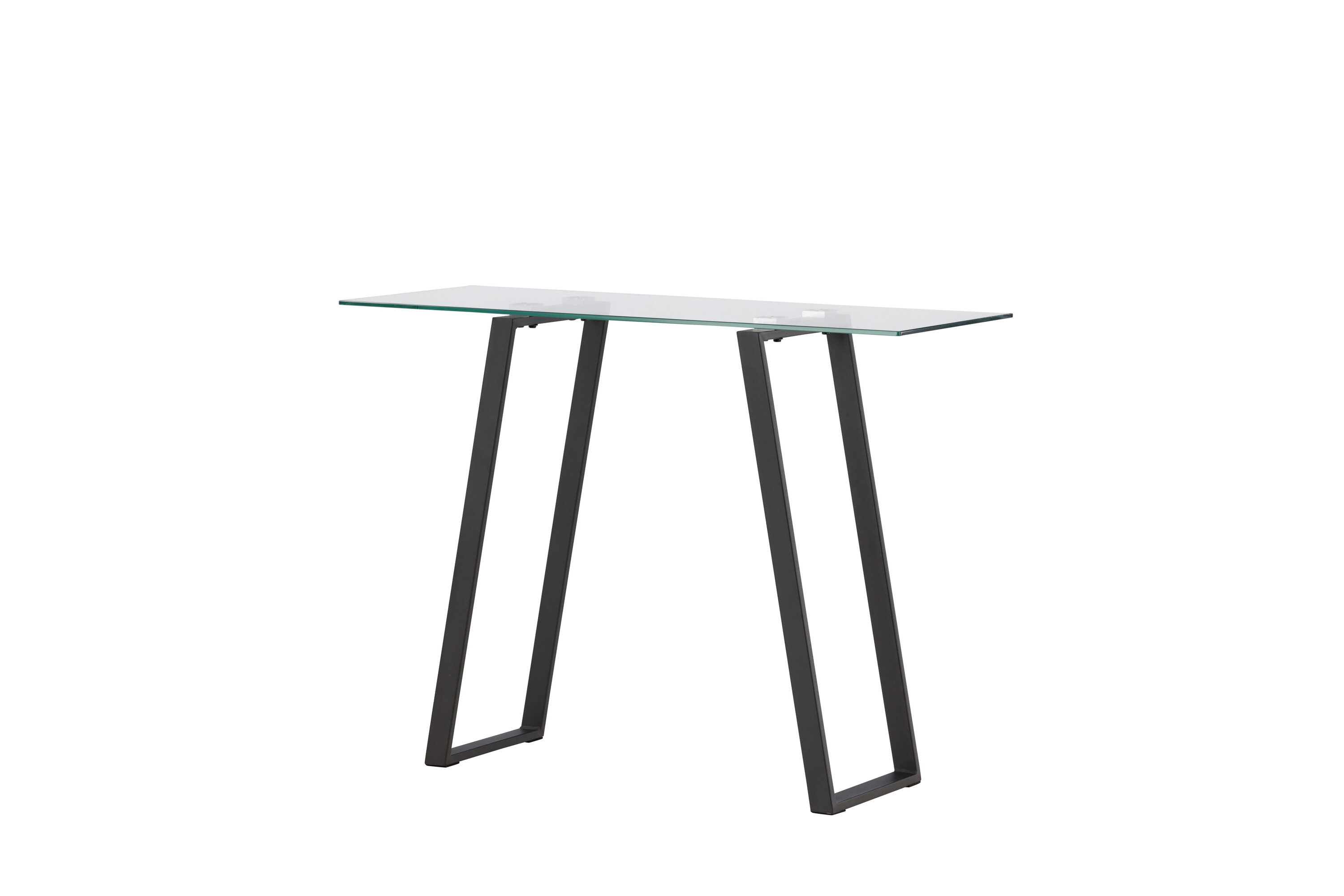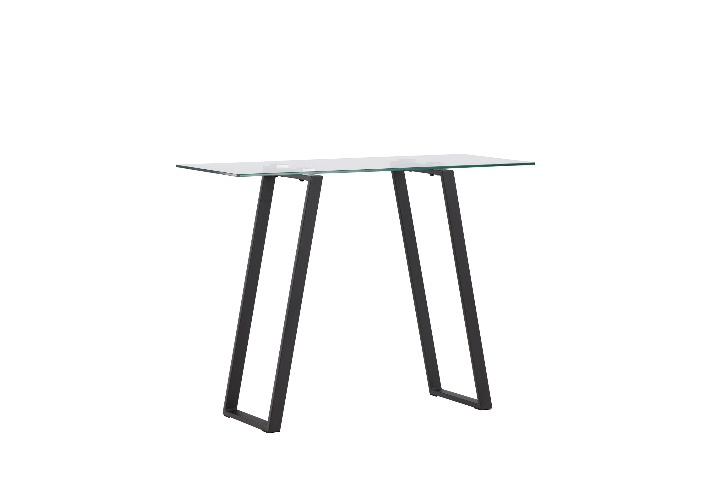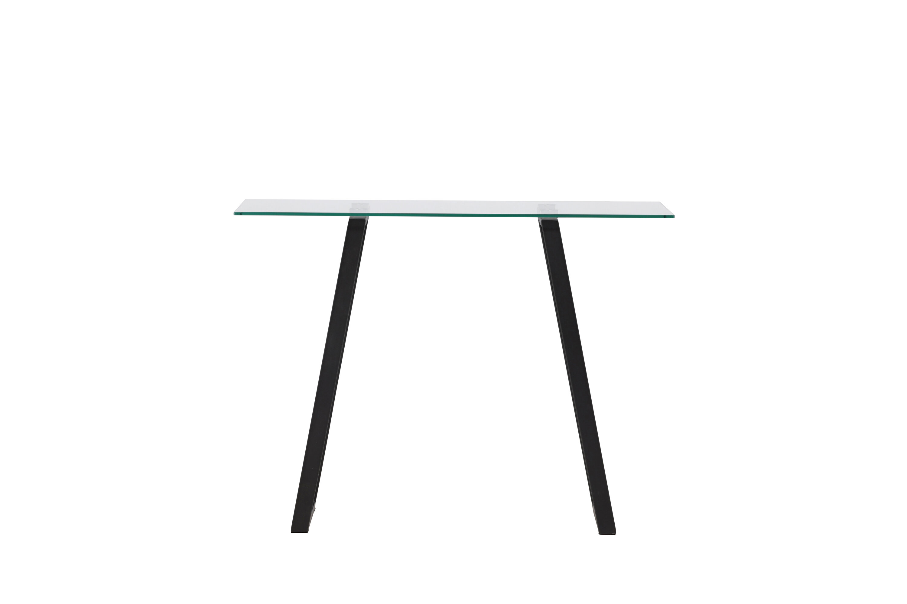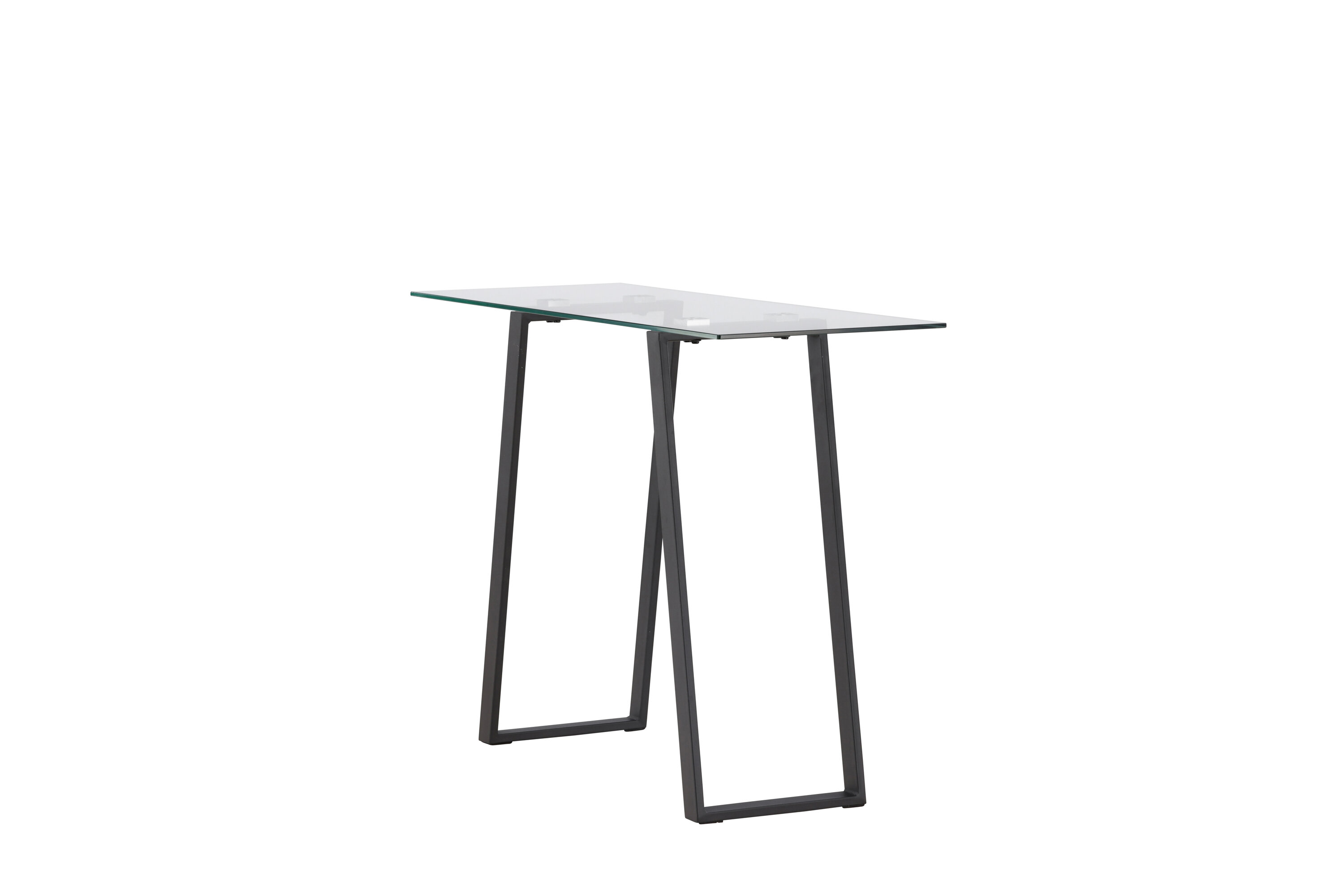 Die elegante klare Glasplatte schafft eine luftige und helle Atmosphäre und unterstreicht gleichzeitig den dekorativen schwarzen Stahlrahmen. Die Kombination aus Glas und Stahl sorgt für ein raffiniertes und modernes Design, das jeden beeindrucken wird, der es sieht.