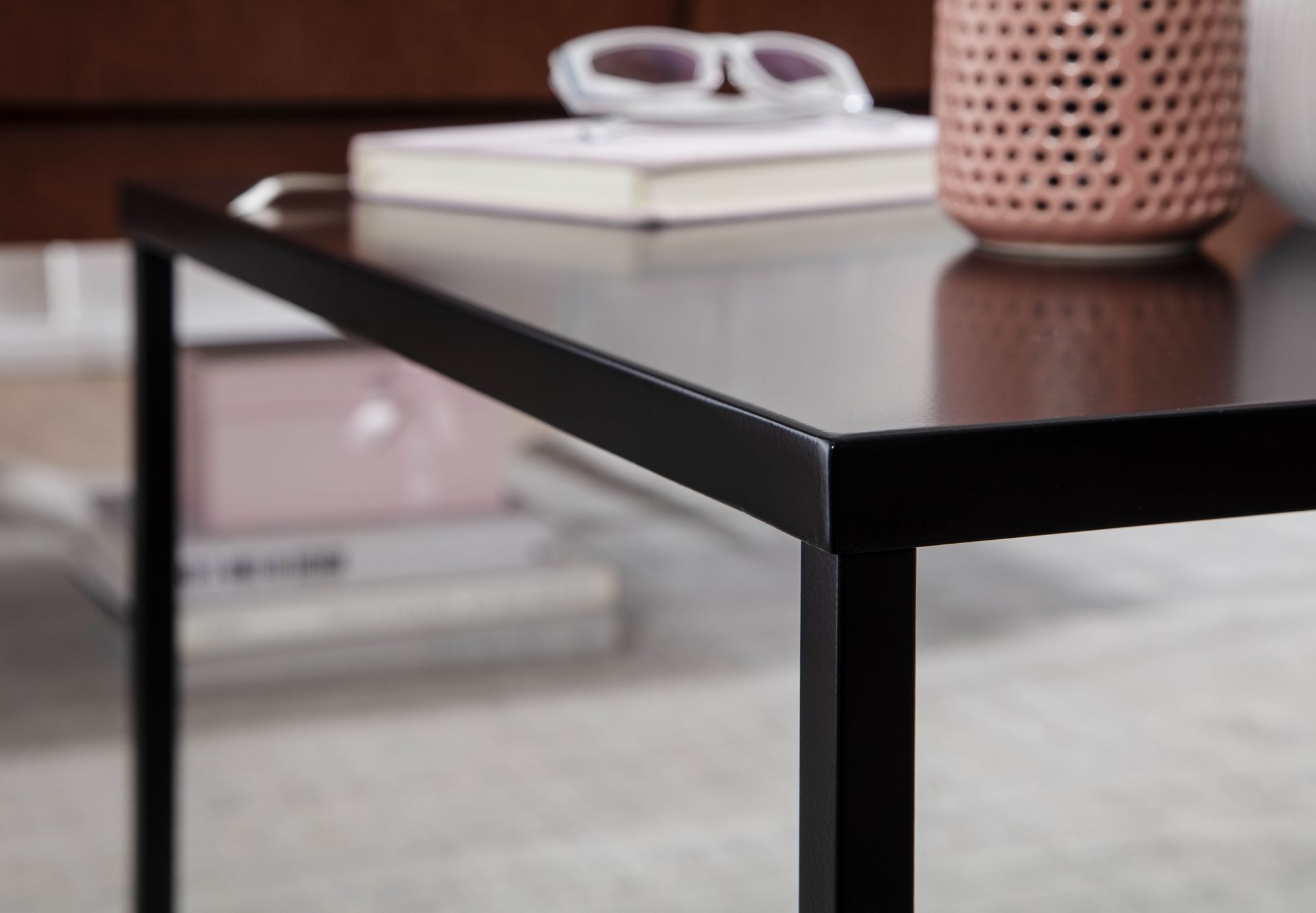 Setzen Sie auf einen schicken Industrielook mit diesem quadratischen Couchtisch aus schwarz lackiertem Stahl. Seine Robustheit und das klare Design machen ihn ideal für den täglichen Gebrauch im Wohnzimmer.