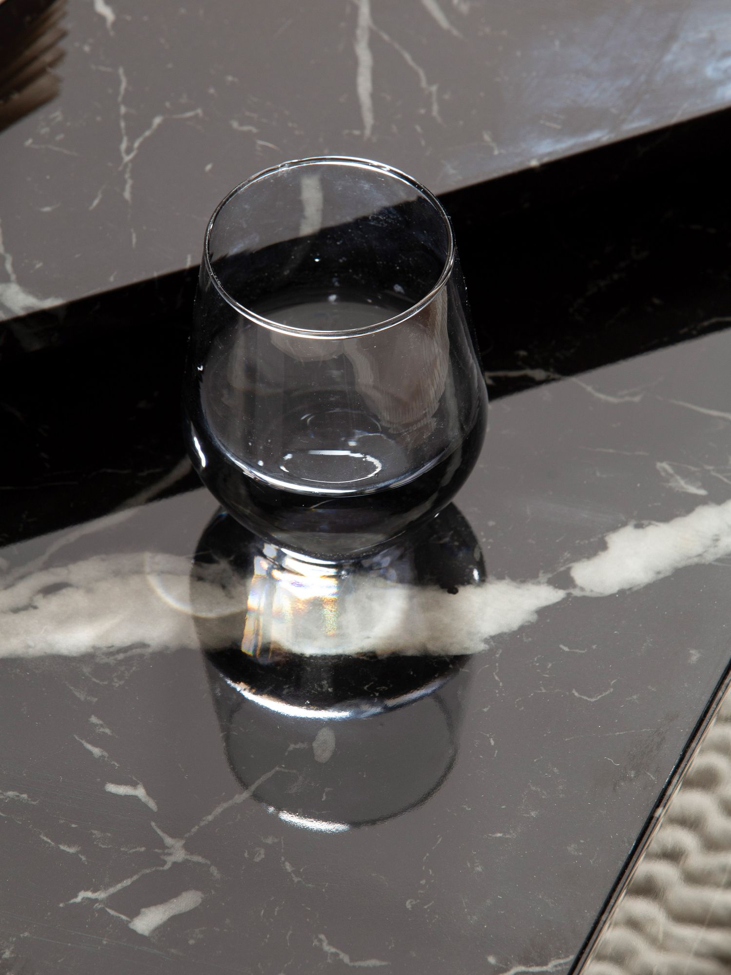 - Schlichtes Design mit schwarzer Hochglanzoberfläche und edler Marmoroptik